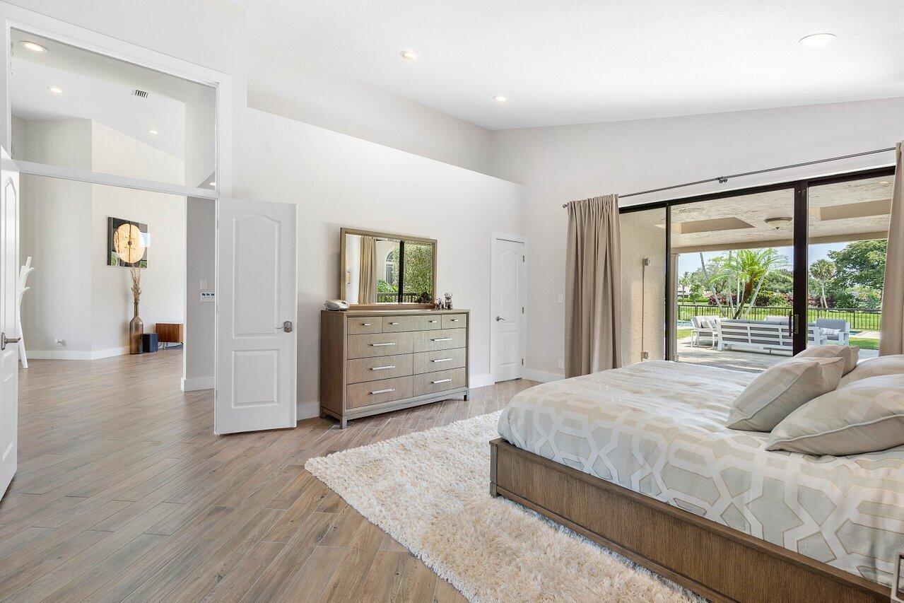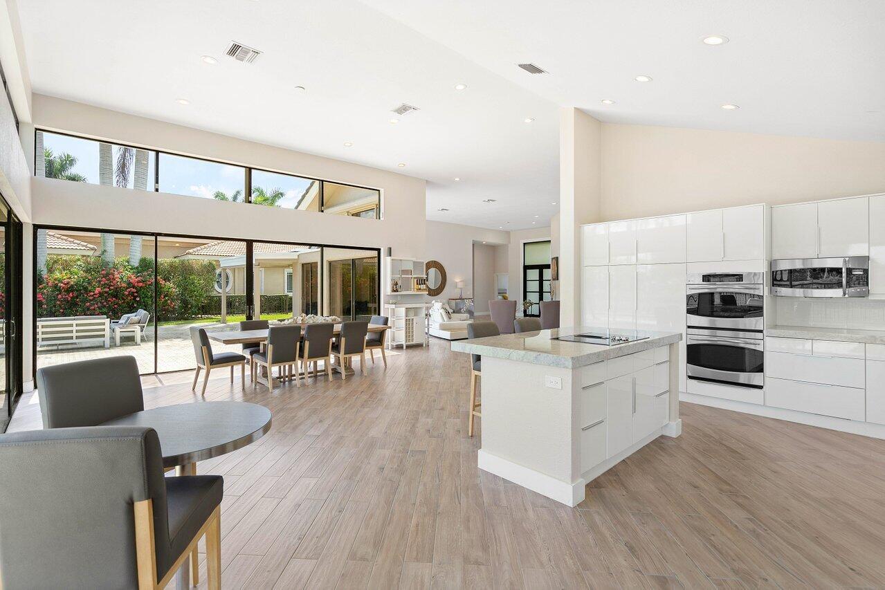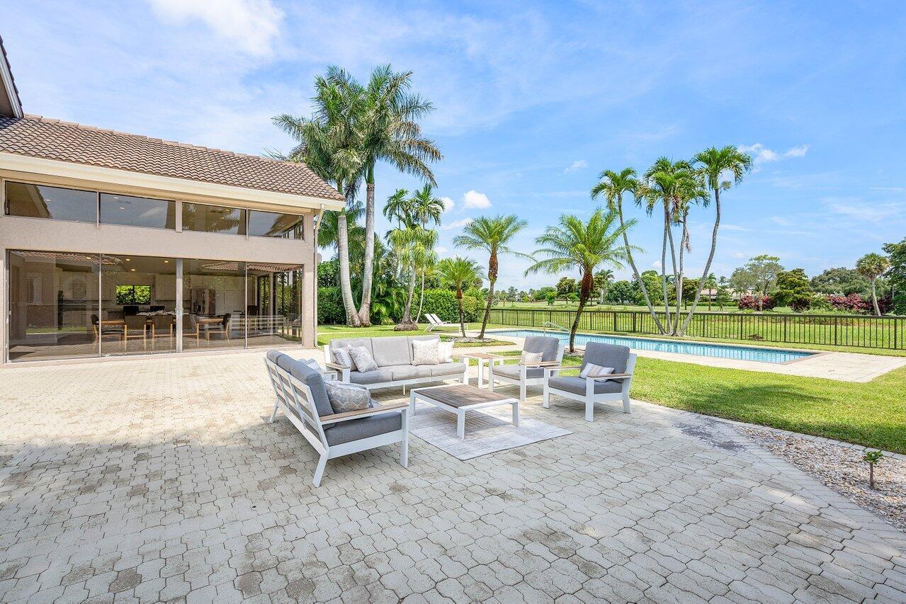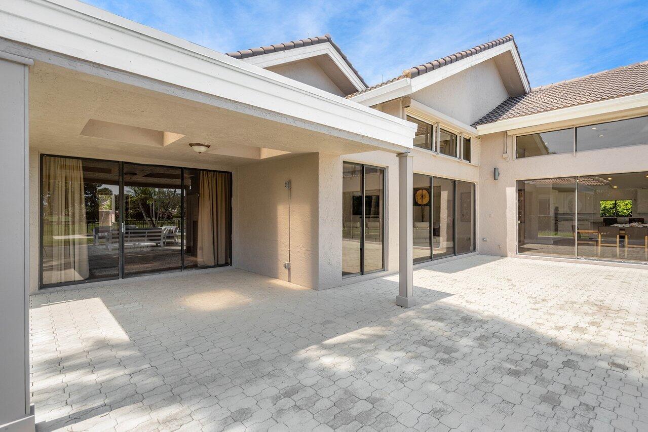 Immerse yourself in modern luxury! Beautifully renovated, open concept, high ceilings with stunning views in the exclusive Bocaire Country Club. All one level - no steps! Four bedrooms PLUS an office, this spacious home is perfect for entertaining or relaxing. Huge private back patio overlooking newly resurfaced pool, lush gardens, canal & golf course. Chefs kitchen with gorgeous Island. Don't miss it! Bocaire is a boutique mandatory membership Country Club with only 239 homes on one circle...no divided sections. It is an inclusive, friendly and active community. Parents, children and grandchildren included in the membership. Renowned championship golf course, competitive and social golf, tennis & pickle ball programs, resort-like aquatics center, 24 hour fitness center