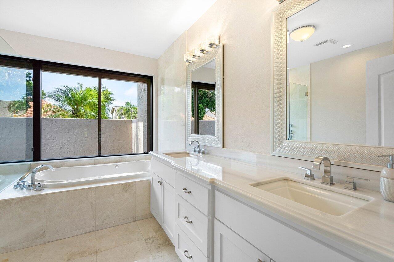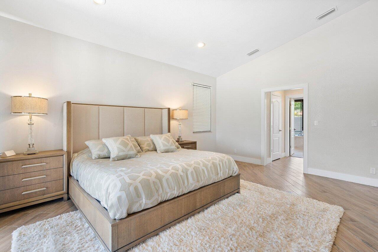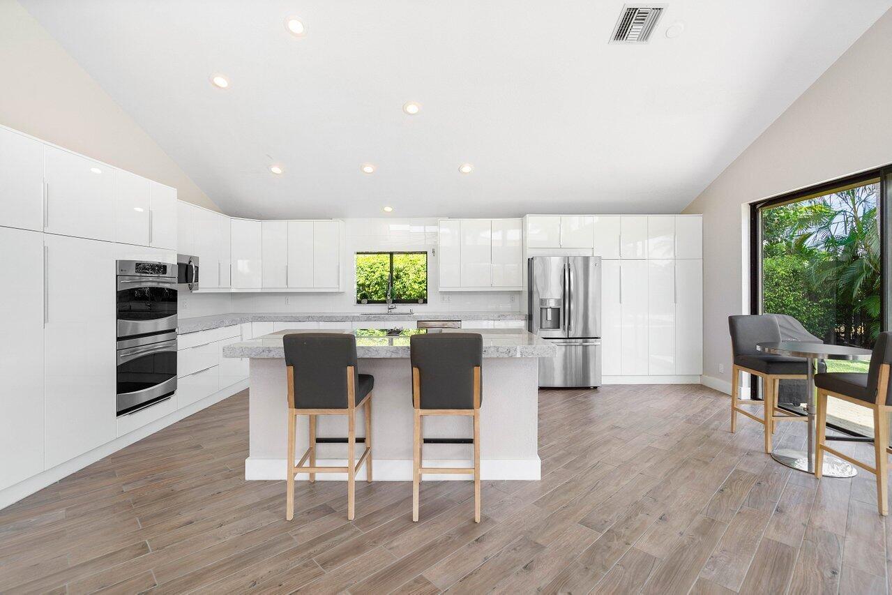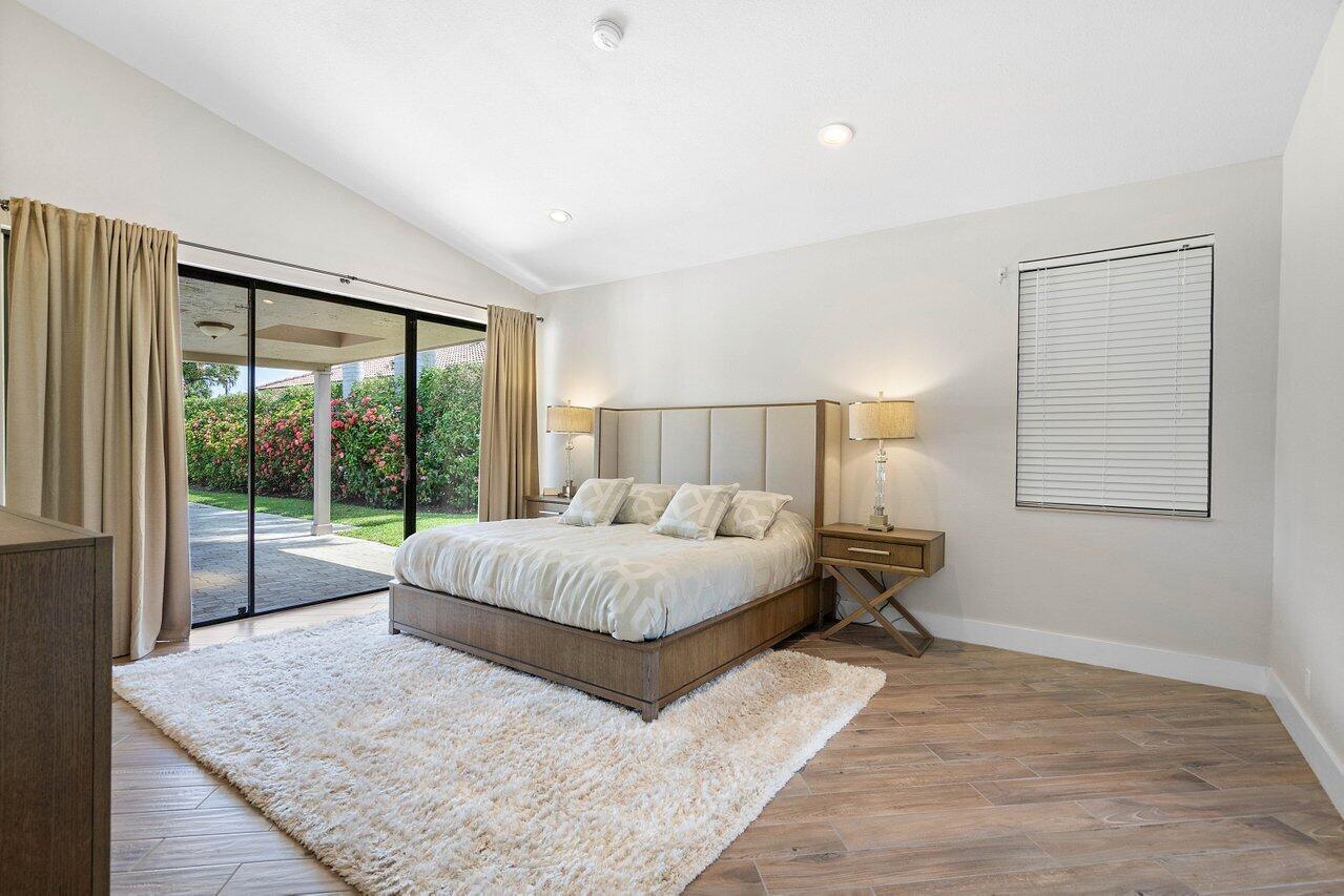 Immerse yourself in modern luxury! Beautifully renovated, open concept, high ceilings with stunning views in the exclusive Bocaire Country Club. All one level - no steps! Four bedrooms PLUS an office, this spacious home is perfect for entertaining or relaxing. Huge private back patio overlooking newly resurfaced pool, lush gardens, canal & golf course. Chefs kitchen with gorgeous Island. Don't miss it! Bocaire is a boutique mandatory membership Country Club with only 239 homes on one circle...no divided sections. It is an inclusive, friendly and active community. Parents, children and grandchildren included in the membership. Renowned championship golf course, competitive and social golf, tennis & pickle ball programs, resort-like aquatics center, 24 hour fitness center