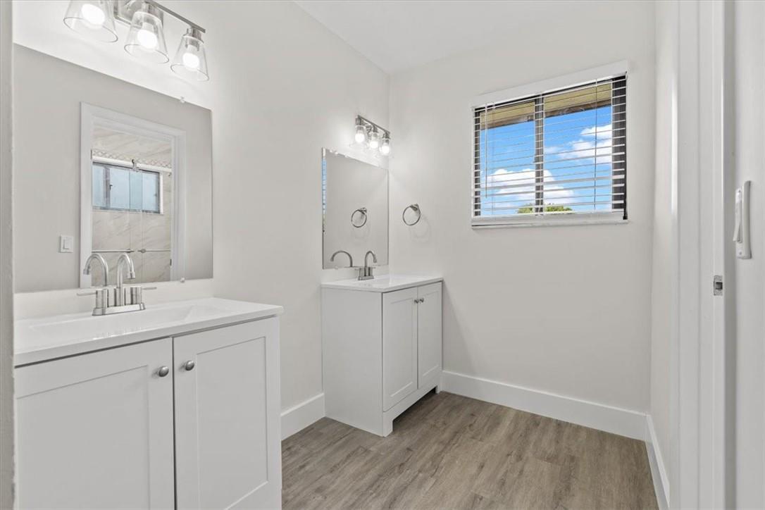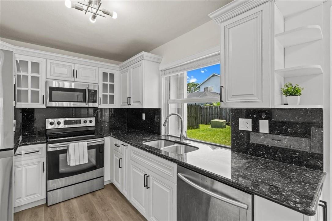Beautiful 3-bed, 3-bath home, 2 car garage home with over 1,500 sq. ft. living space, split-level, 2022 shingle roof, new vinyl flooring, separate living and dining rooms. Featuring a granite kitchen with stainless steel applainces, updated bathrooms, fixtures, hardware, a double vanity in the master bath and one full bathroom on the main floor for added convenience. Includes accordion shutters for those home owners insurance discounts, fresh interior and exterior paint, new window blinds, brand new light fixtures, outlets, and switches. Small quarterly HOA fee of only $36! Enjoy the Welleby Palms Park included in the HOA. A short drive away from Sawgrass Mills Mall, BB&T Center, Flamingo Garden and so much more. Easy to show, book your showing today, this gem of a home will not last long.
