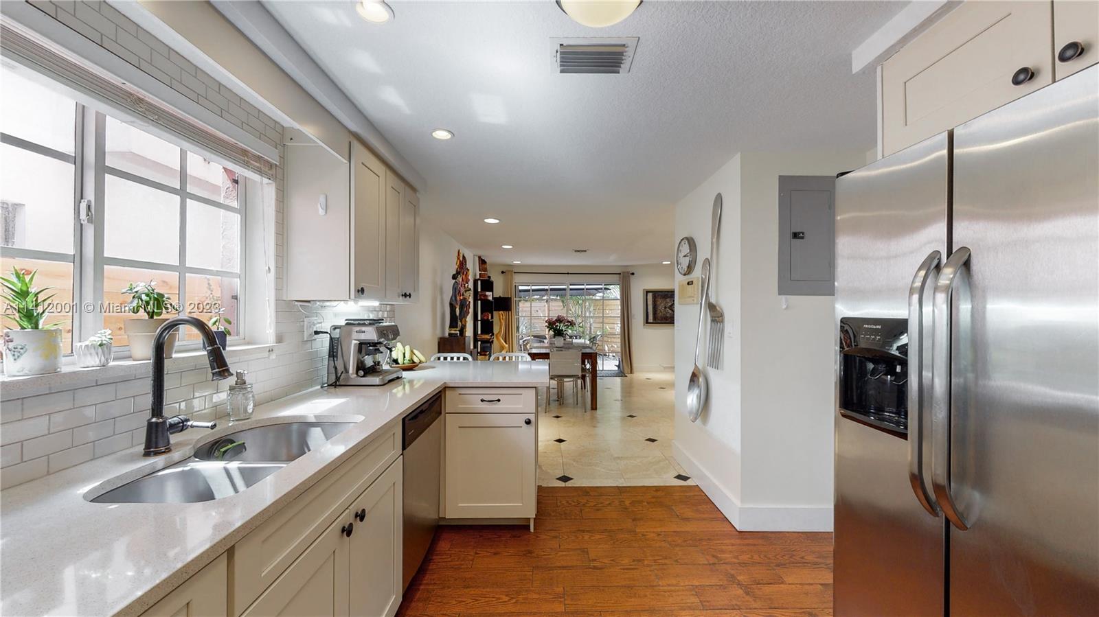 Updated and well maintained Center Grove town home, located in a gated complex. Spacious three bedrooms and two and a half baths. Marble and wood floors. Updated kitchen with wood cabinets and stainless steel appliances. Functional open floor plan. Lots of natural light. Large private patio. Updated primary bathroom with separate shower and tub. Second and third bedroom share and Jack and Jill bath. One car garage plus second gated parking space. Complex was recently painted and awnings were replaced. Full hurricane protection with impact windows and accordion shutters. Not in a flood zone. Coconut Grove Elementary School district. Walking distance to dozens of amazing restaurants, cafes, movies, Fresh Market, local parks and stores. Motivated owners.