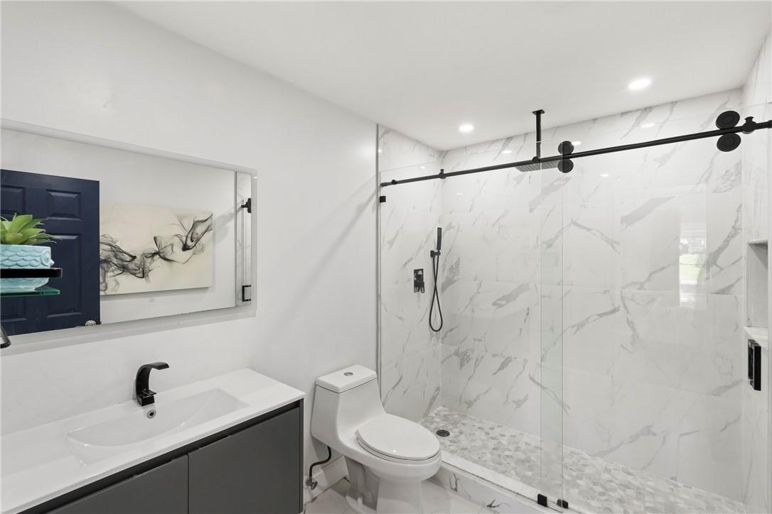 Beautifully remodeled 2/2 Villa with attached single garage attached and fenced in back yard. Recently renovated from head to toe in the last 12 months. New kitchen with quartz counters, stainless steel appliances, New oversized marble look tiles, Modern bathrooms and brand new hurricane impact windows. You will fall in love with the finishes and spacious floor plan this villa offers. Community offers great amenities including pool, tennis courts, basketball court and playground.