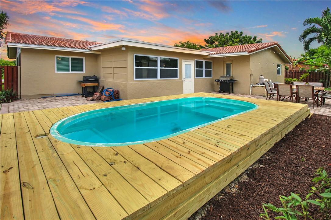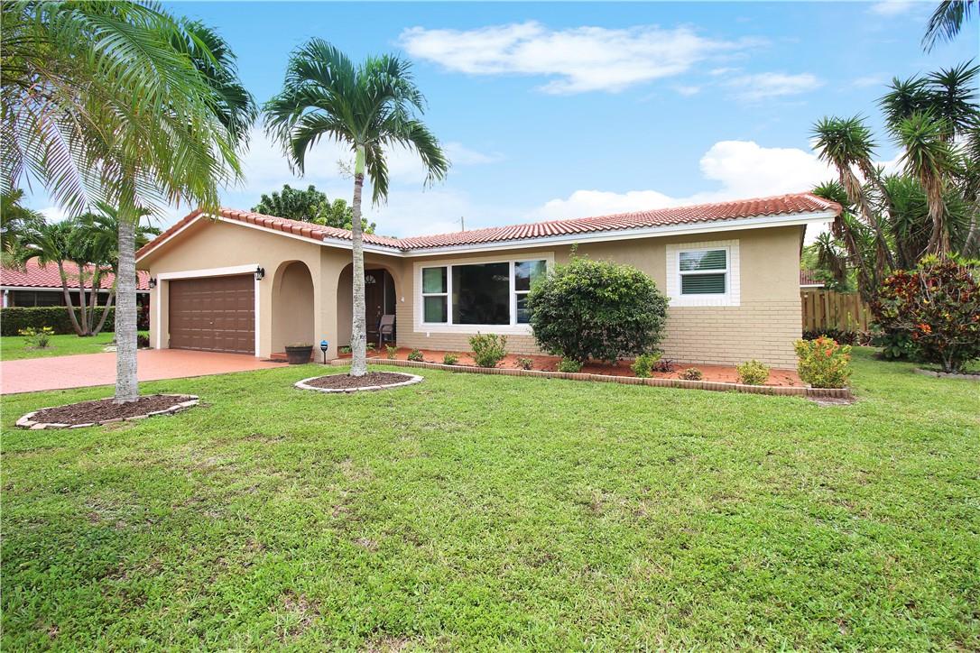 Great opportunity to own this Wonderful 3/2 corner lot pool home in Coral Springs. NO HOA...just under 1900 sq ft. Nicely landscaped with many palm trees. Split bedroom floor plan with living room, dining room, and breakfast area just off the kitchen. Nice size Bedrooms with double closets. Crown moulding in the main areas. Kitchen has SS appliances, granite countertops with tile backsplash. Laminate flooring and carpeted bedrooms. Bathrooms have granite countertops, one of which is a cabana bath. Storm window protection with the exception of the sliders. Enclosed back patio leads to the fenced in backyard pool area with newly constructed pool deck. Security system. Exterior has been recently painted. Roof 2010. 2 car garage.
