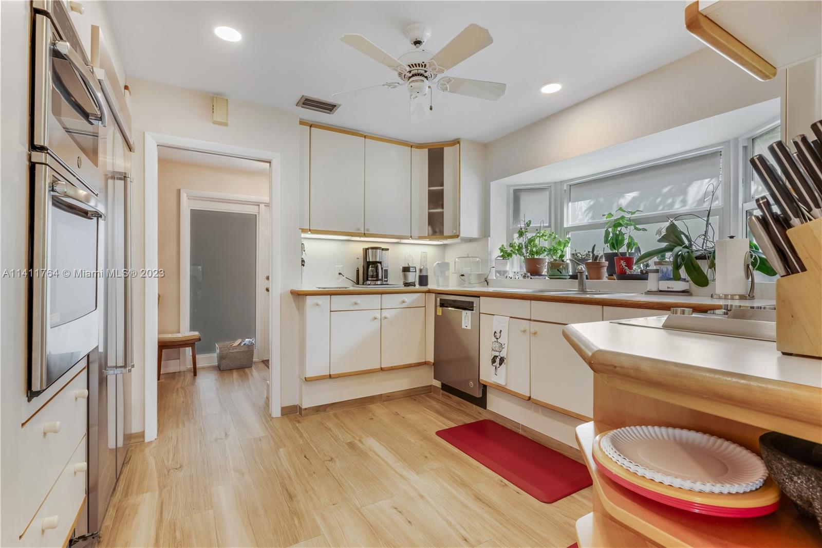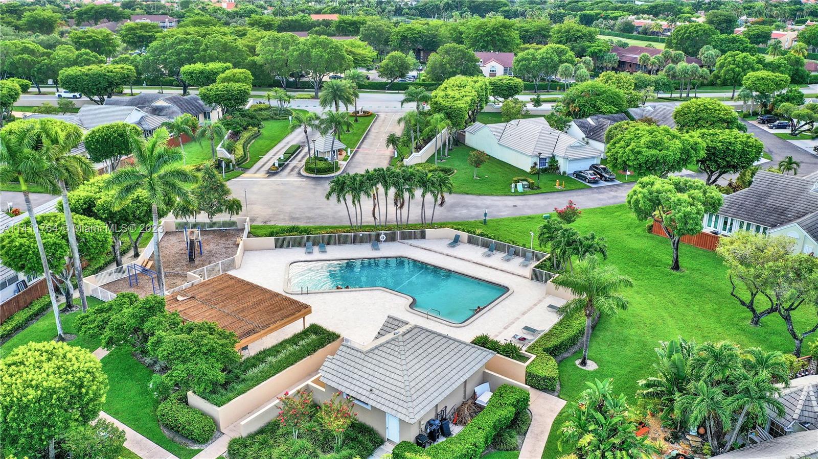 Amazing opportunity to own a spacious and bright one story single family house located in the gated community of Doral Woods. This spacious home features 3 bedrooms and 2 bathrooms, providing ample space for comfortable living. The interior boasts high ceilings, porcelain floors, impact doors, and windows provide plenty of lights. The private kitchen features high-end appliances and ample cabinet space. Step outside to the backyard, where you'll discover a serene outdoor space perfect for enjoying with friends and family. Substantially remodeled in 2018 included new porcelain floors, electrical panel, impact doors & windows. A/C /2013. HOA includes access to Doral Country Club. See click on virtual tour.
