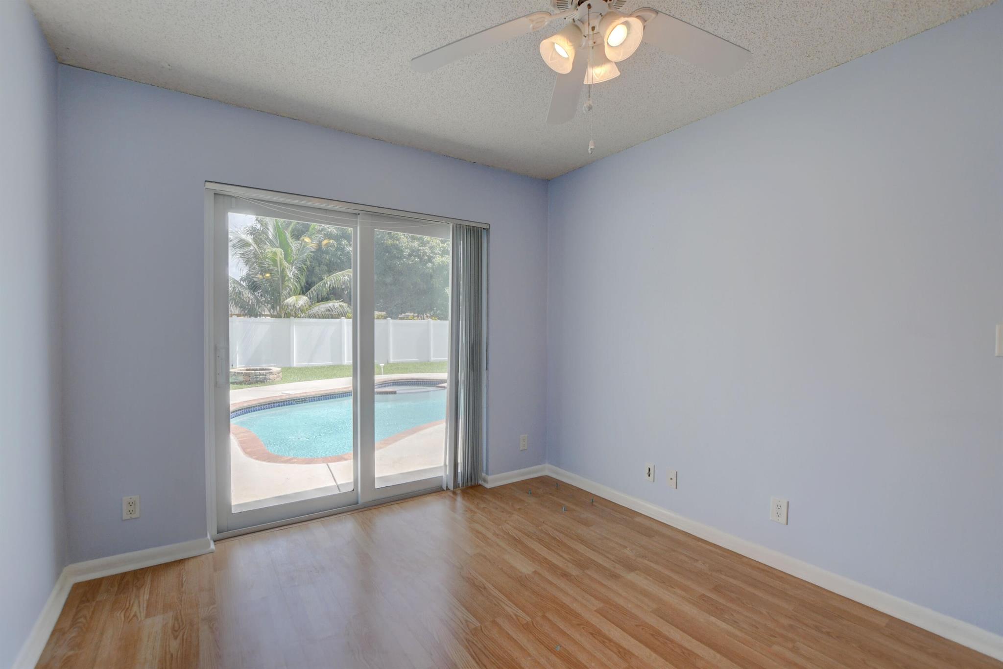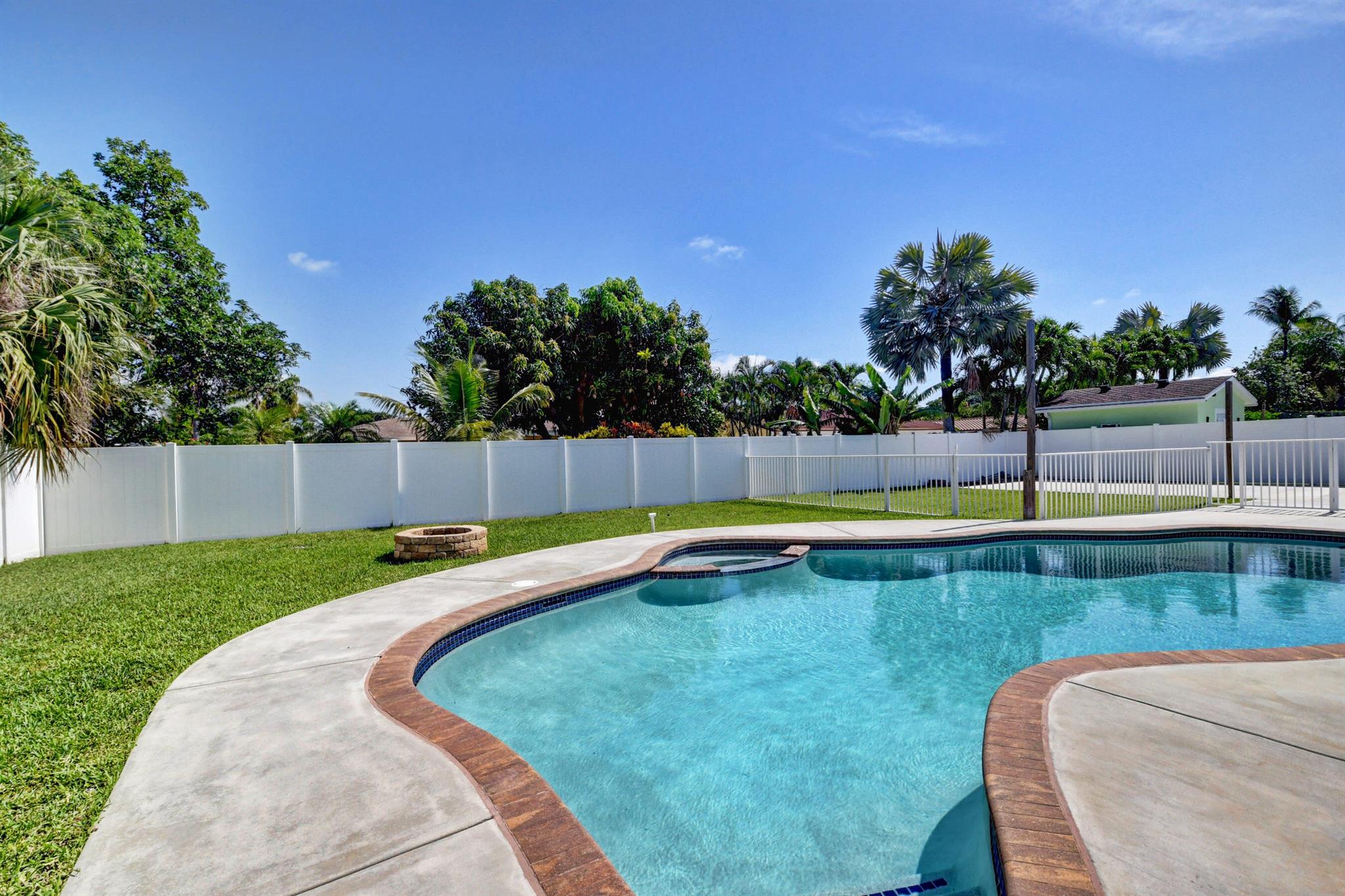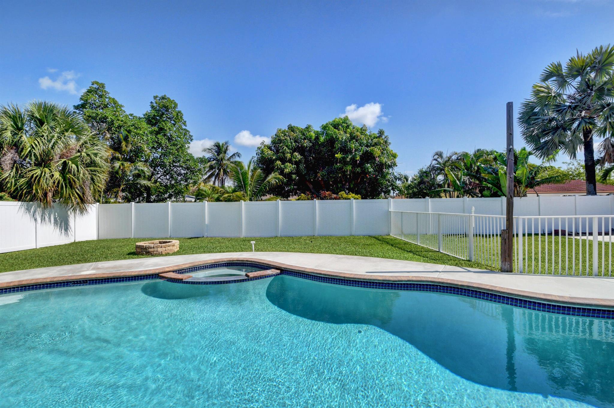 Boca Square 4 bedroom house on an oversized lot with room for everything! Poured concrete parking for RV, boat, trailer-bring them all! East side has 87' parking behind the fence, West side has another 22' poured concrete slab. No need to pay storage or marina fees. Huge pool w/8' depth, fenced yard, large kitchen has newer stainless steel appliances, generous counter space & opens to family room. Laminate flooring throughout. Houses has full hurricane protection including garage door. This is a wonderful area of Boca Square w/no cut through traffic, close to Sugar Sand Park, zoned for Addison Mizner K-8 school. Only a couple of miles from downtown and the beach. No HOA
