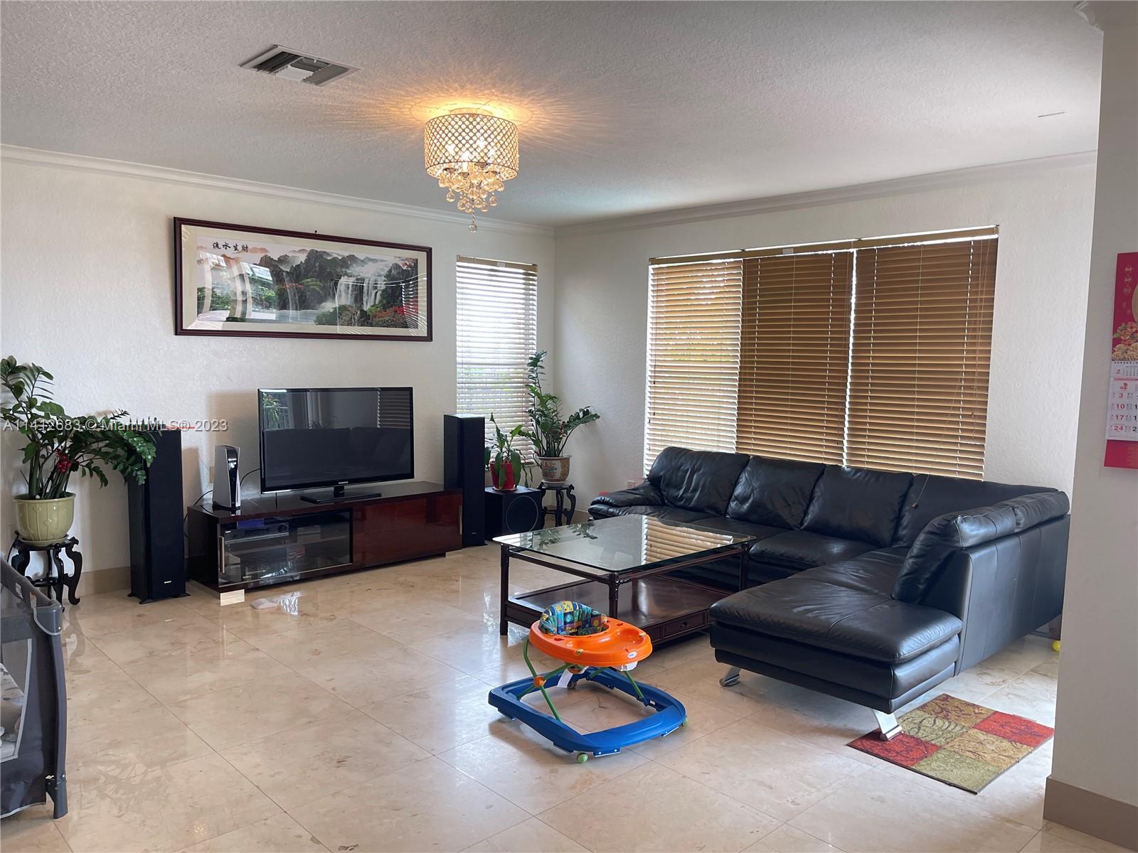 Stunning lake view property in Sunset Falls. 6 Bed rooms 4 bath, 1 bedroom 1 bath downstair. Marble floor on 1st floor, real wood on 2nd floor. Huge master bedroom is over looking a panoramic lake. Great schools, close to shopping and highways. 24 hours security guard gate. Amenities including a resort-style swimming pool & spa, tennis & basketball courts and a clubhouse. 10 mins away to a proposed megamall- American Dream Miami.