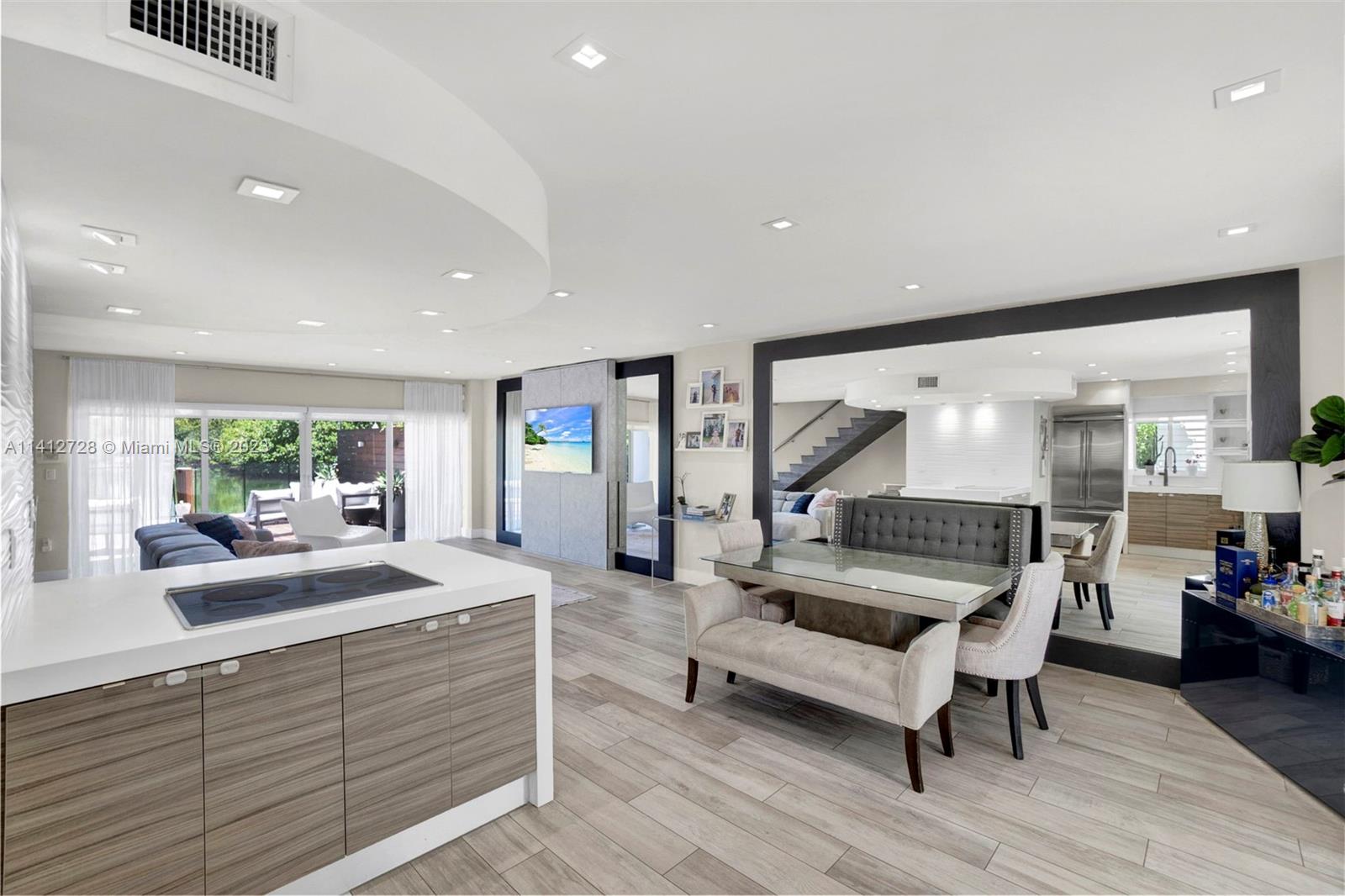 Fall in love with this remarkable 2 story townhouse 2 bedroom plus den 2 1/2 bath, waterfront with a spacious private deck with a 32 ft dock for your boat, with access to the ocean and no fixed bridges, within a five minute walk to the beach. Amazing view from living room to open bay and protected part of the Biscayne Estuary. Open floor plan, updated, master bedroom view to bay and no association
