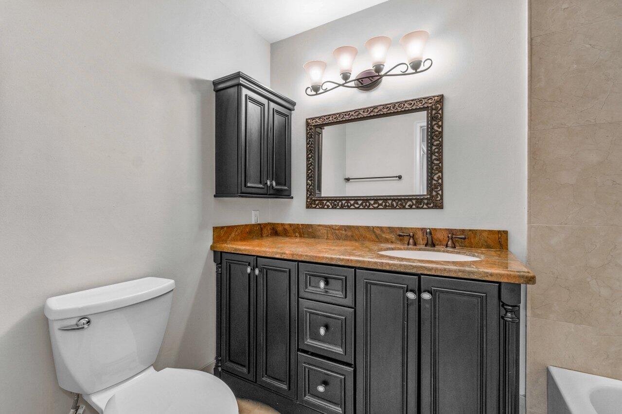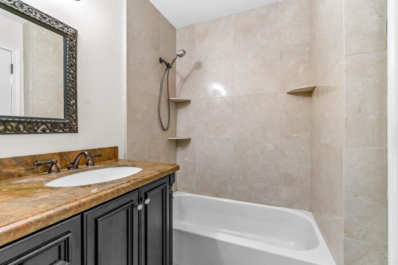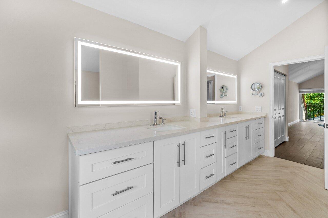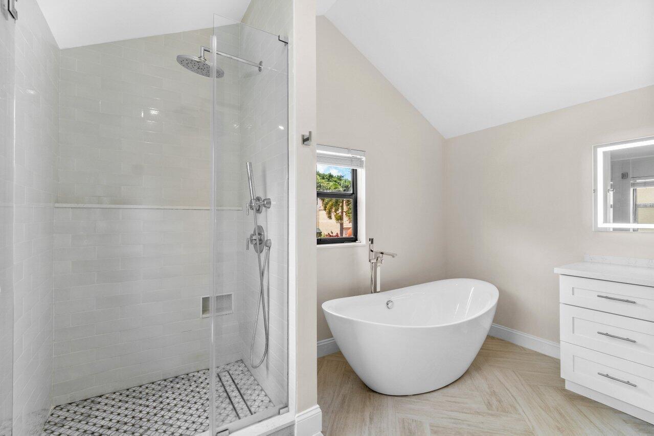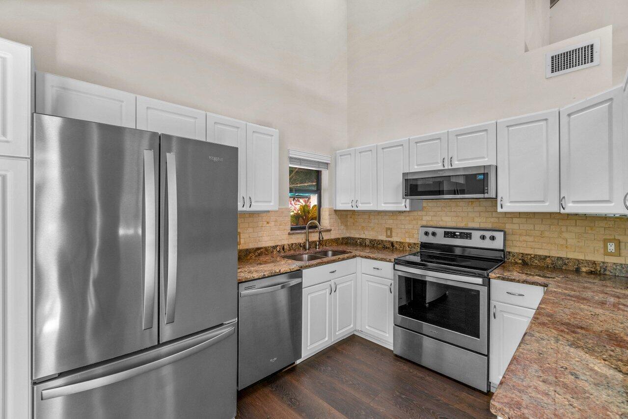 Spacious open 3/2 townhome with a 1-car garage and Brand-New Roof in central Boca Raton. Flooded with natural light & showcasing exposed wooden beams with high ceilings in the main living area, and a private primary suite on the upper floor. The primary bath is completely renovated w/ a freestanding tub & separate shower, a large dual sink vanity & huge custom built out closet. New impact sliders in the primary bedroom that opens to a private balcony with no rear neighbors. Downstairs are two additional bedrooms with custom built out closets that share a full bathroom. A large, screened patio can be viewed & accessed by multiple doors & backs up to a canal making it very private. Walk to the new A+ rated Verde K-8 school and minutes from Town Center Mall, fine dining, and shopping.