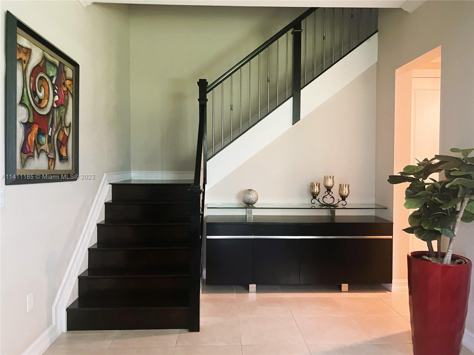 Great Opportunity to be the owner of this well-maintained townhouse located on a desirable community of Raintree in Pembroke Pines. This comfortable residence features many upgrades hurricane impact windows, vaulted ceilings, Custom closets. The interior boasts a delightful view of the lake from most of the rooms and has a screened back porch and balcony perfect for relaxing and enjoying many beautiful sunrises. This home offers lots of natural light that makes a cozy and inviting atmosphere. Its functional layout provides ample space for comfortable living. The primary bedroom has two walk-in closets.This Home has Plenty of storage. 2 car garage with build in cabinets and epoxy floor. Must see. Furniture is also for sale. Bring your buyers!