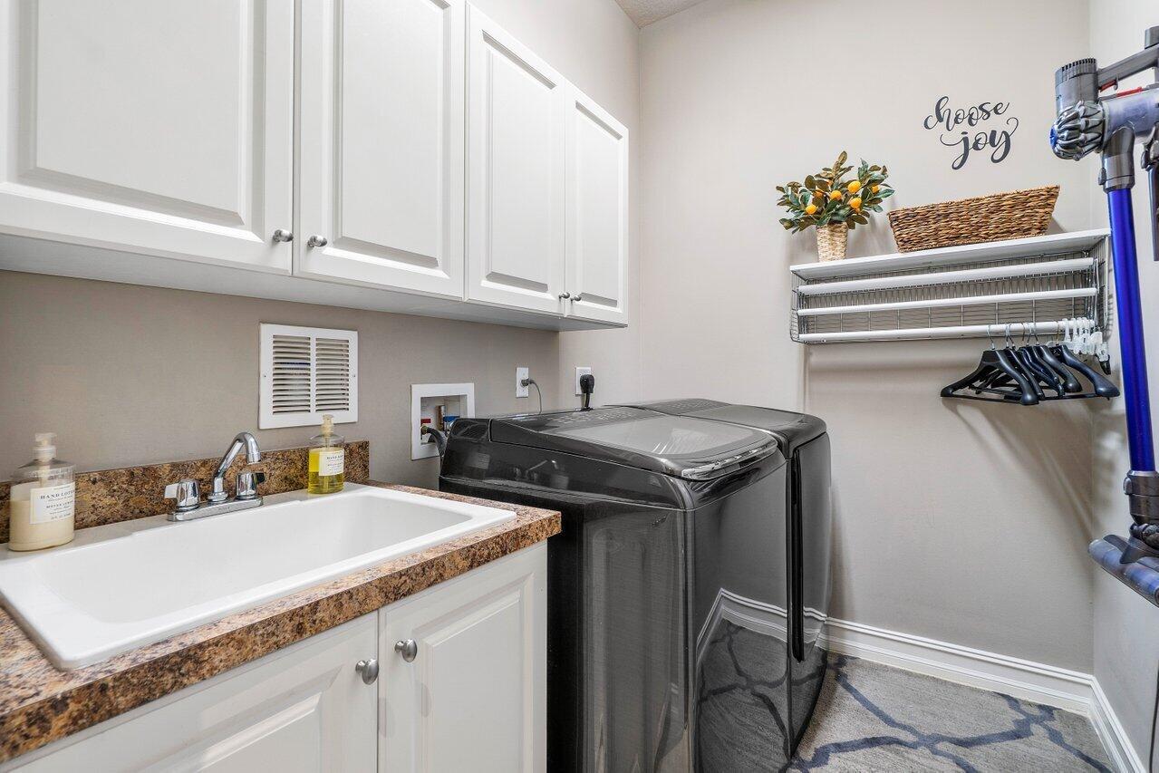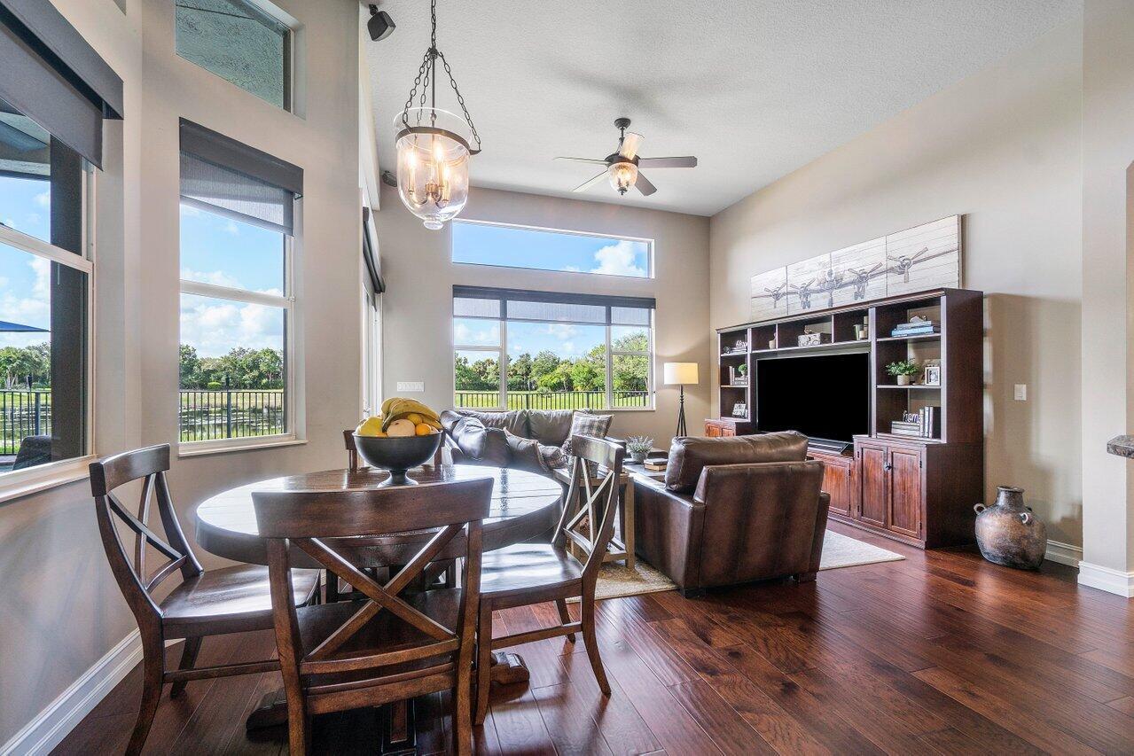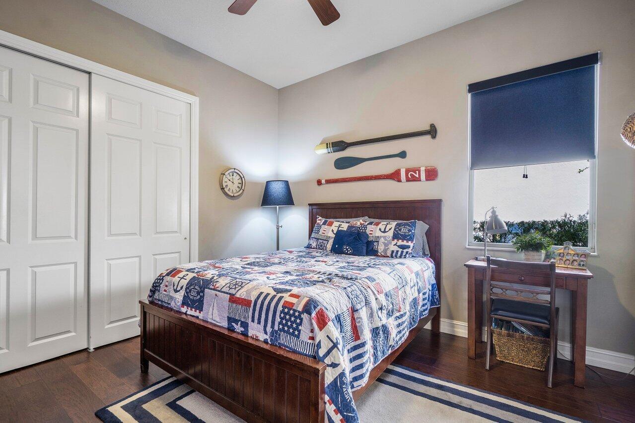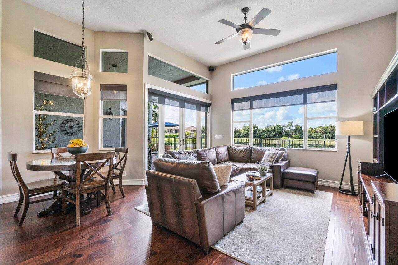 This IMMACULATE and welcoming home has remarkable custom features! Gorgeous wood flooring, decorative tray ceilings, crown molding, custom lighting, window treatments, volume ceilings, custom closets and an amazing cul-de-sac lot! Professionally landscaped for beauty and privacy. Fully fenced backyard, private pool with sun ledge, lake view, covered & open patio areas. 4-bedroom + office with a split floor plan, formal rooms & great room. Office overlooks lush landscaping. Elegant kitchen with 48'' cabinets, granite, backsplash, stainless steel appliances, double sink, double oven, cooktop & pull-out shelves. Open to a bright family room and spacious breakfast nook. This is the perfect gathering area. French doors (impact glass) lead out to the lanai and pool. See supplement for more!