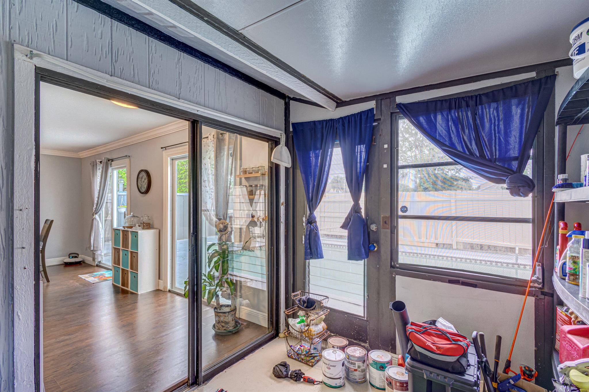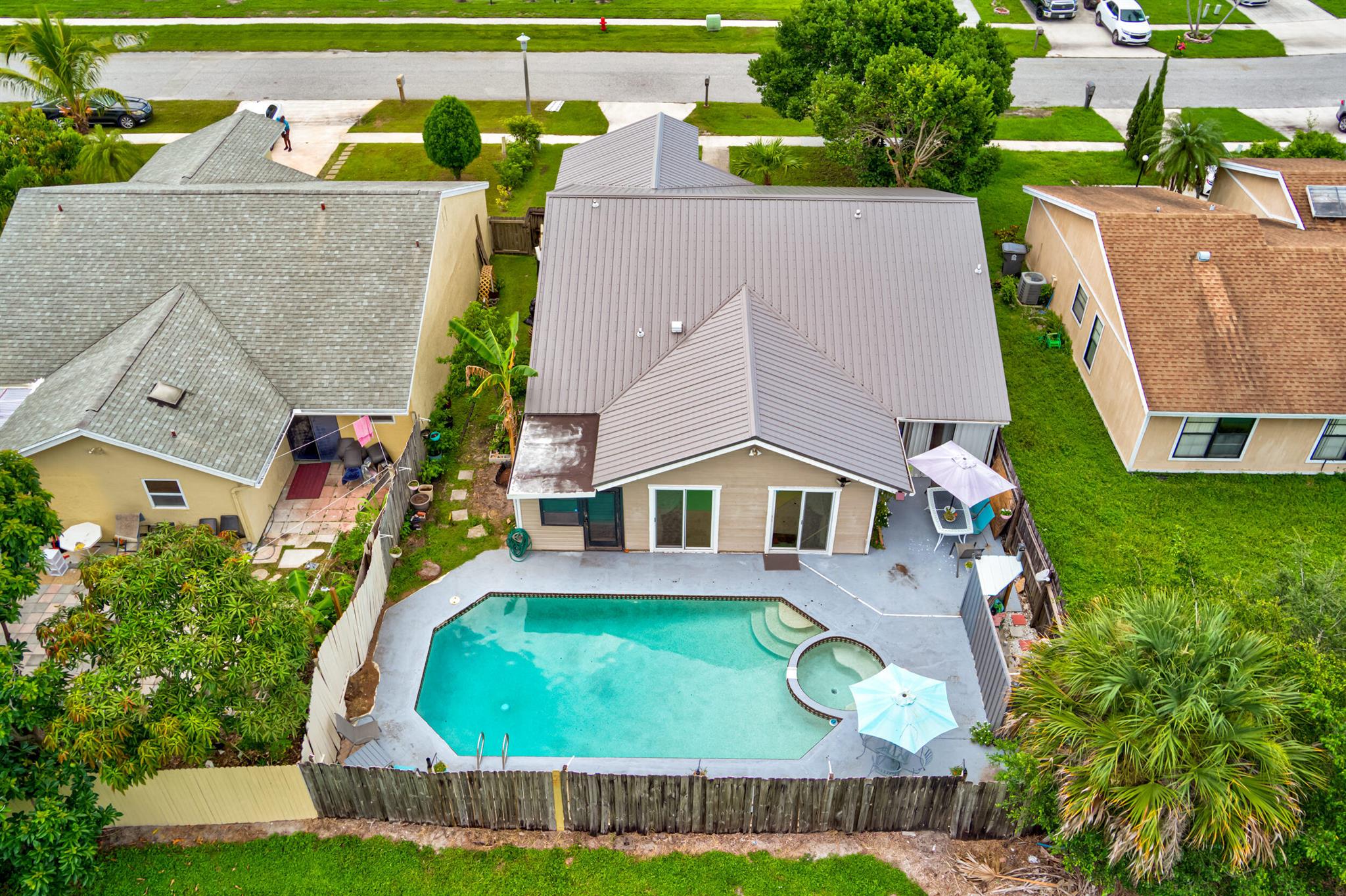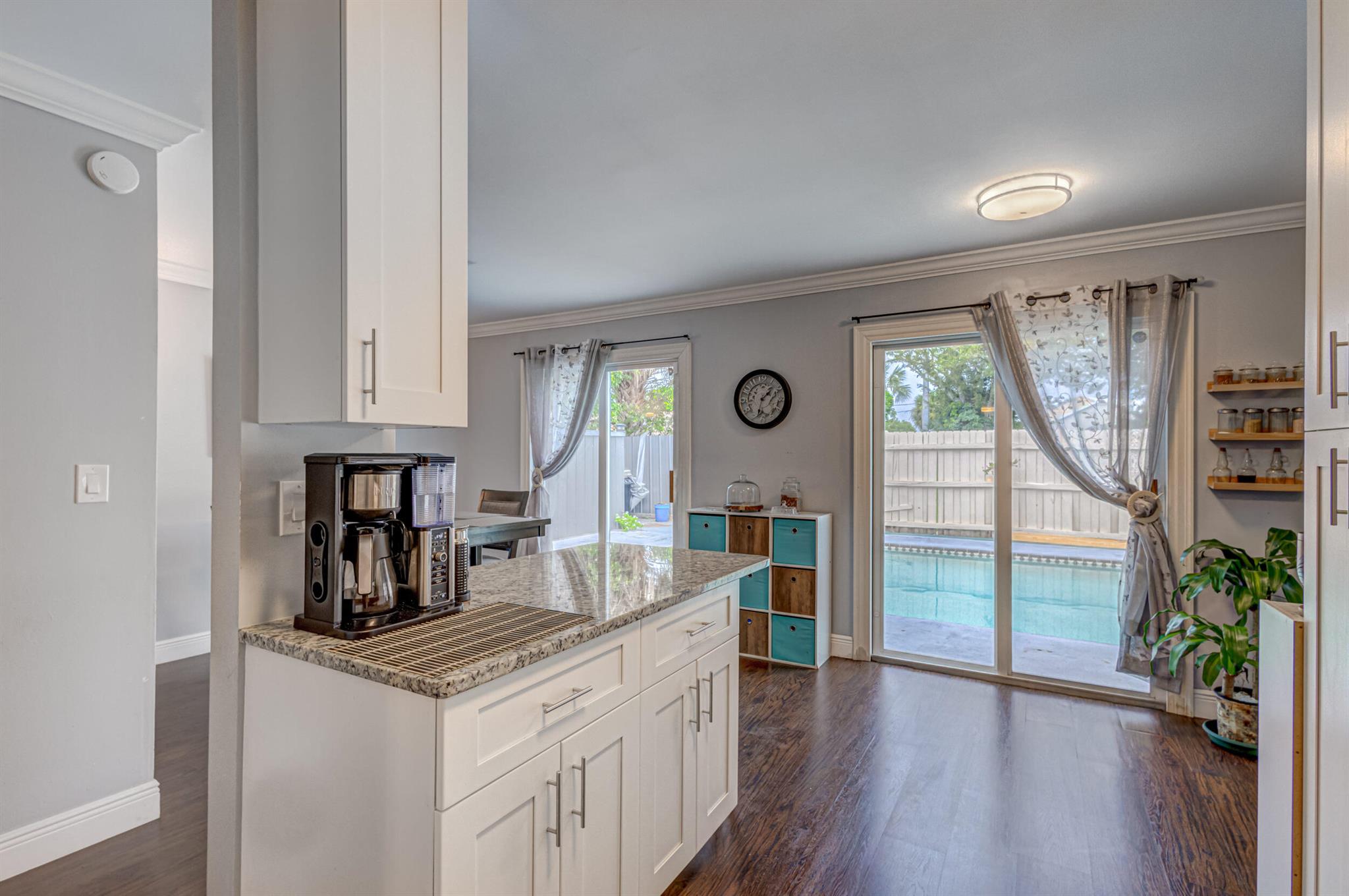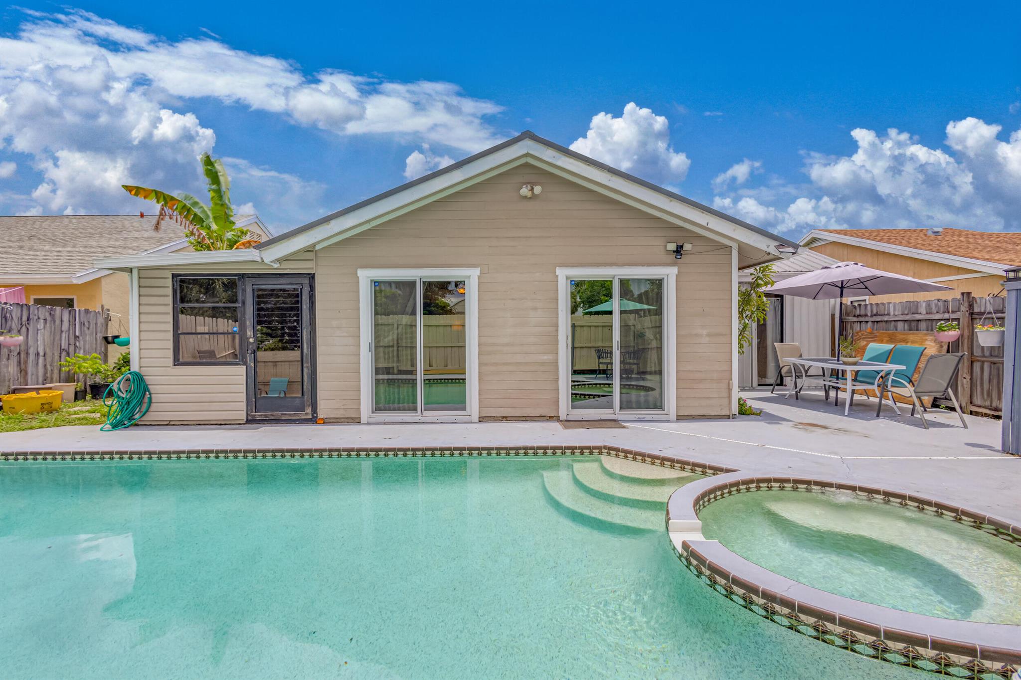 Welcome to this beautiful 3-bedroom, 2-bathroom home with a 1-car garage. It boasts a fenced-in pool, a 2022 metal roof, and an extra room that can be a den or an additional bedroom. The updated kitchen features granite countertops, stainless steel appliances, and white shaker-style cabinets. With low HOA fees, this home offers a worry-free lifestyle. The impact-resistant sliding doors open to a private pool, and accordion shutters are available for added convenience and peace of mind. It's a friendly and inviting space you'll love calling home.