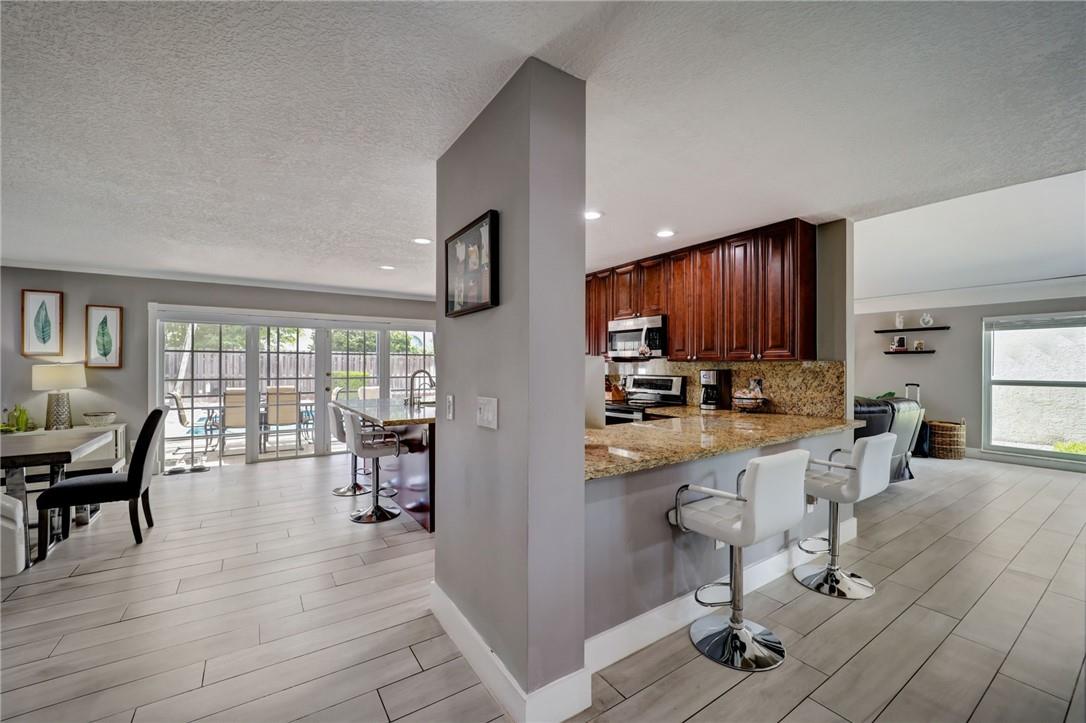 Opportunity awaits, renovated 4 bdrm 2.5 bath home in the highly desirable gated community of Mission Bay Ventura. Open floor plan with French doors that lead out to a screened in patio and inviting pool beyond. All windows are hurricane rated, Italian Porcelain tile throughout the first floor, warm wood flooring upstairs, updated lighting, fresh paint, and custom front entryway door. Updated kitchen with granite, SS, and solid wood cabinetry. Spacious primary bdrm with spa like bath. 3 secondary bdrms and guest bath. Oversized 2 car garage, and ample driveway parking.
