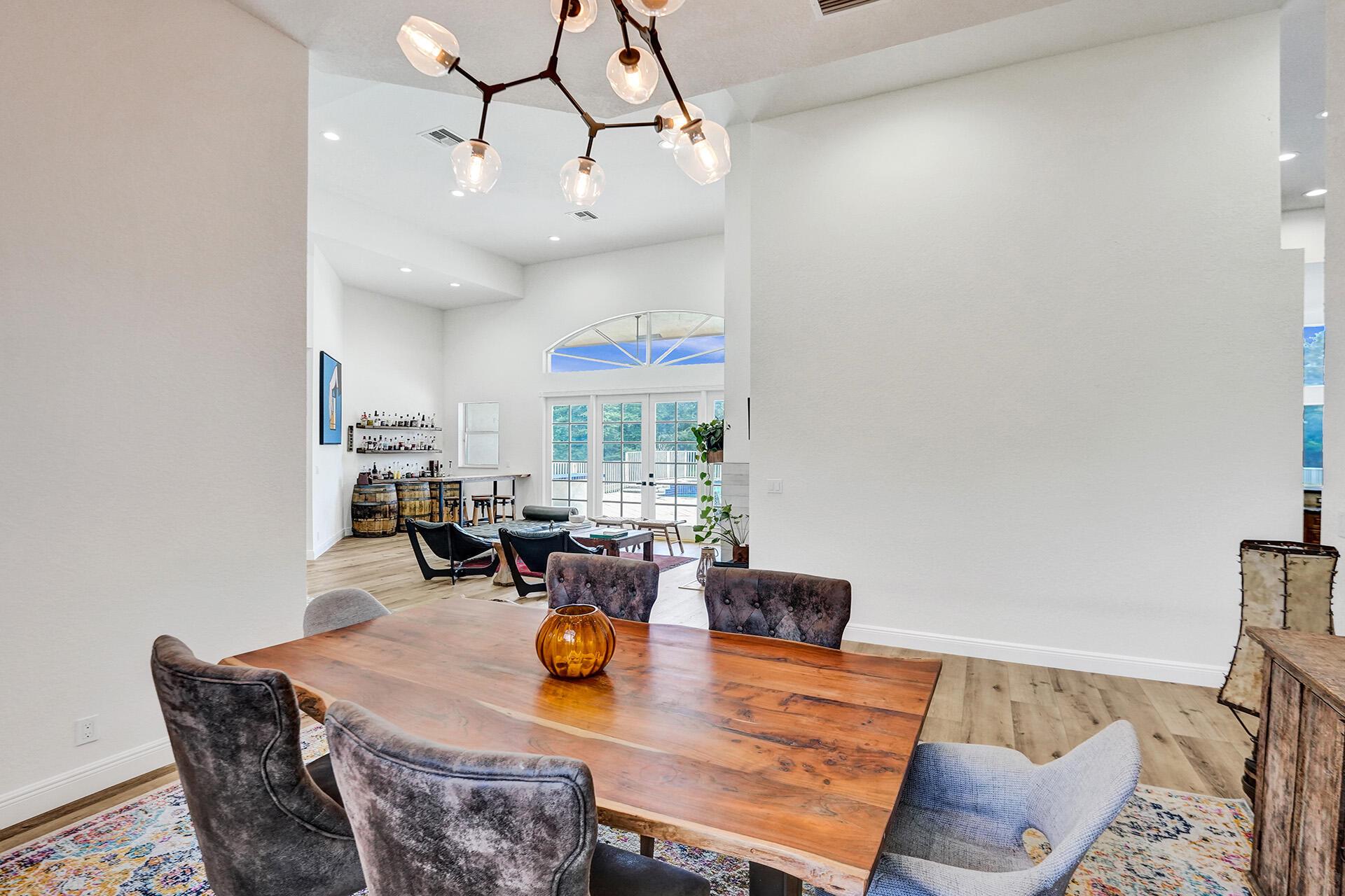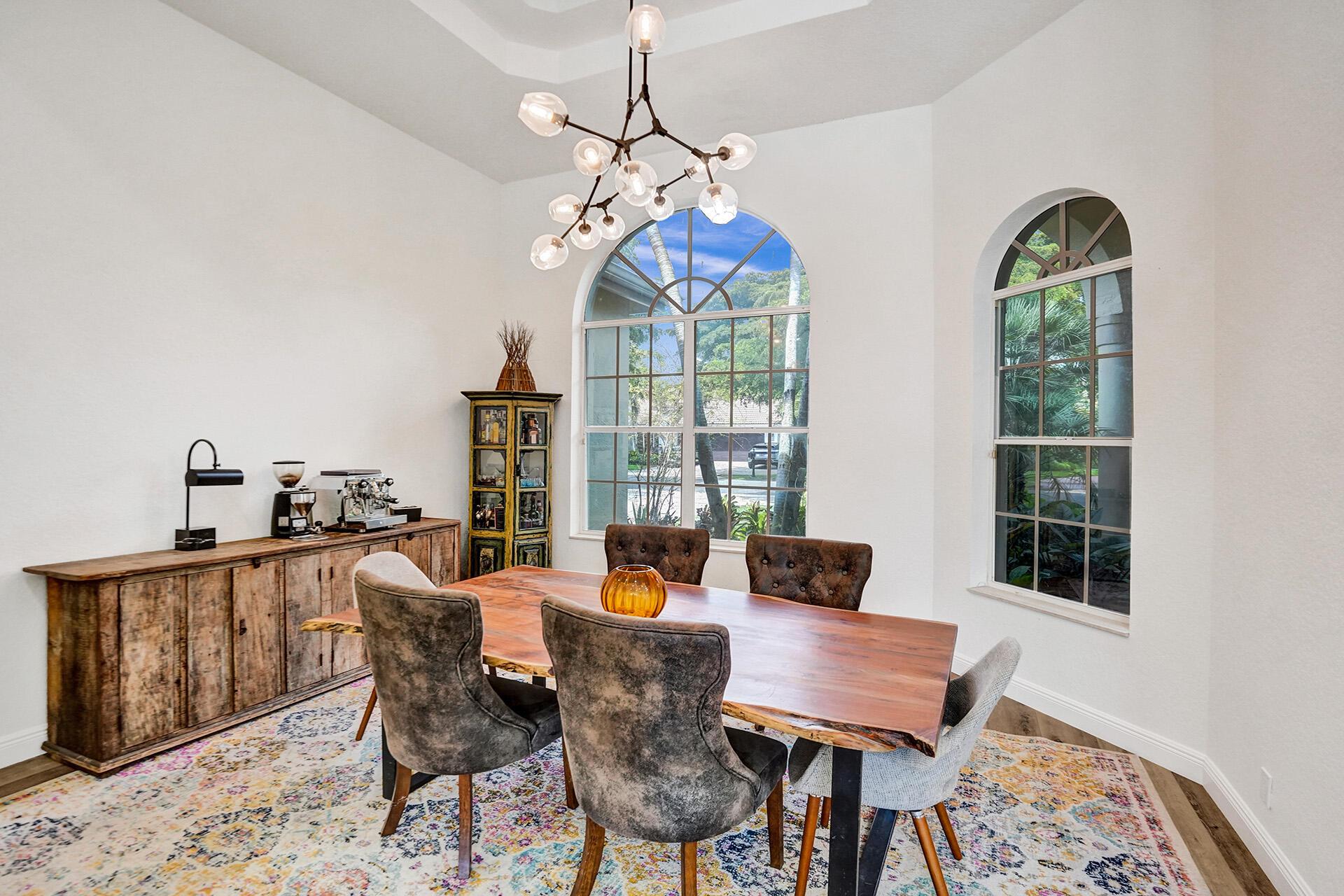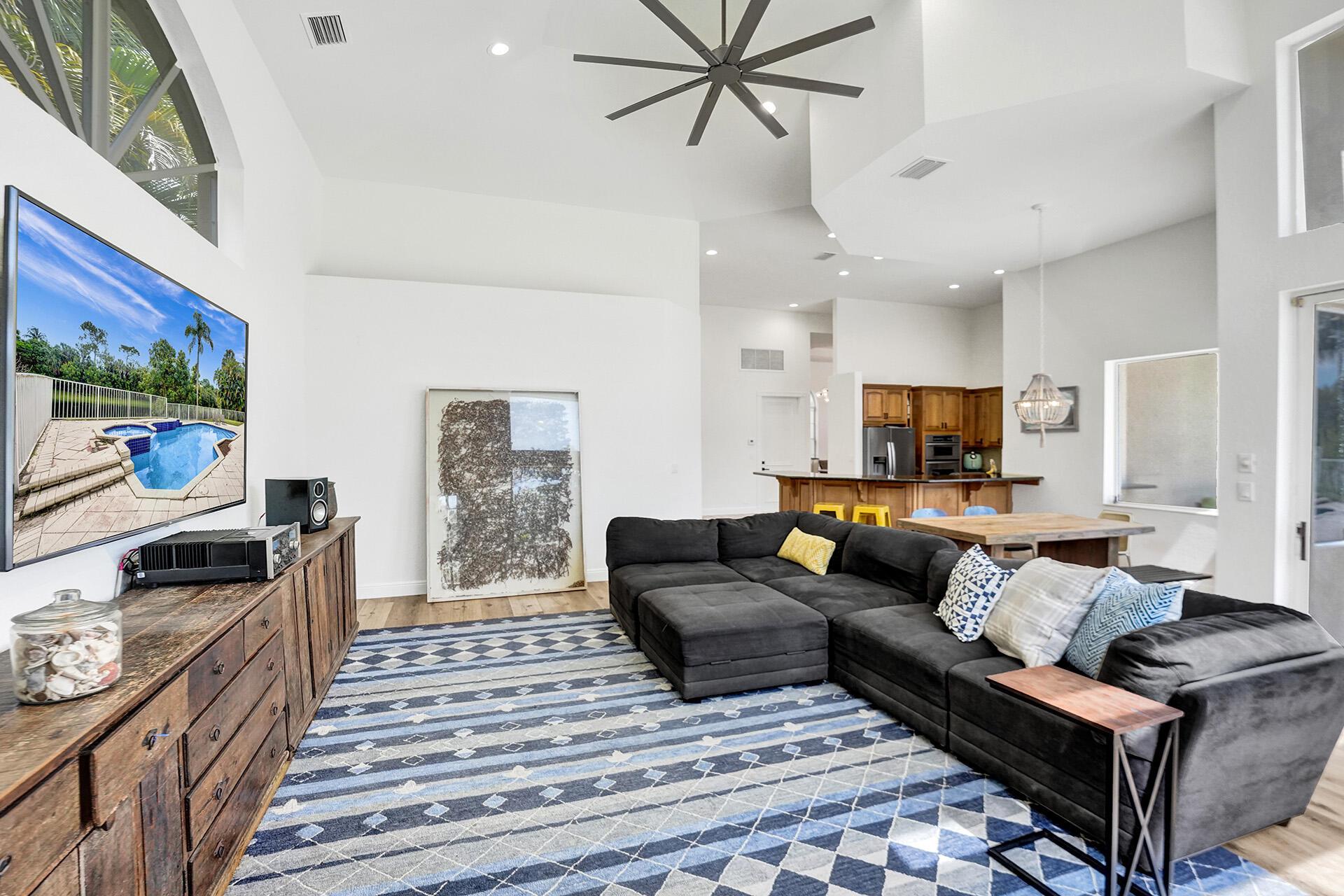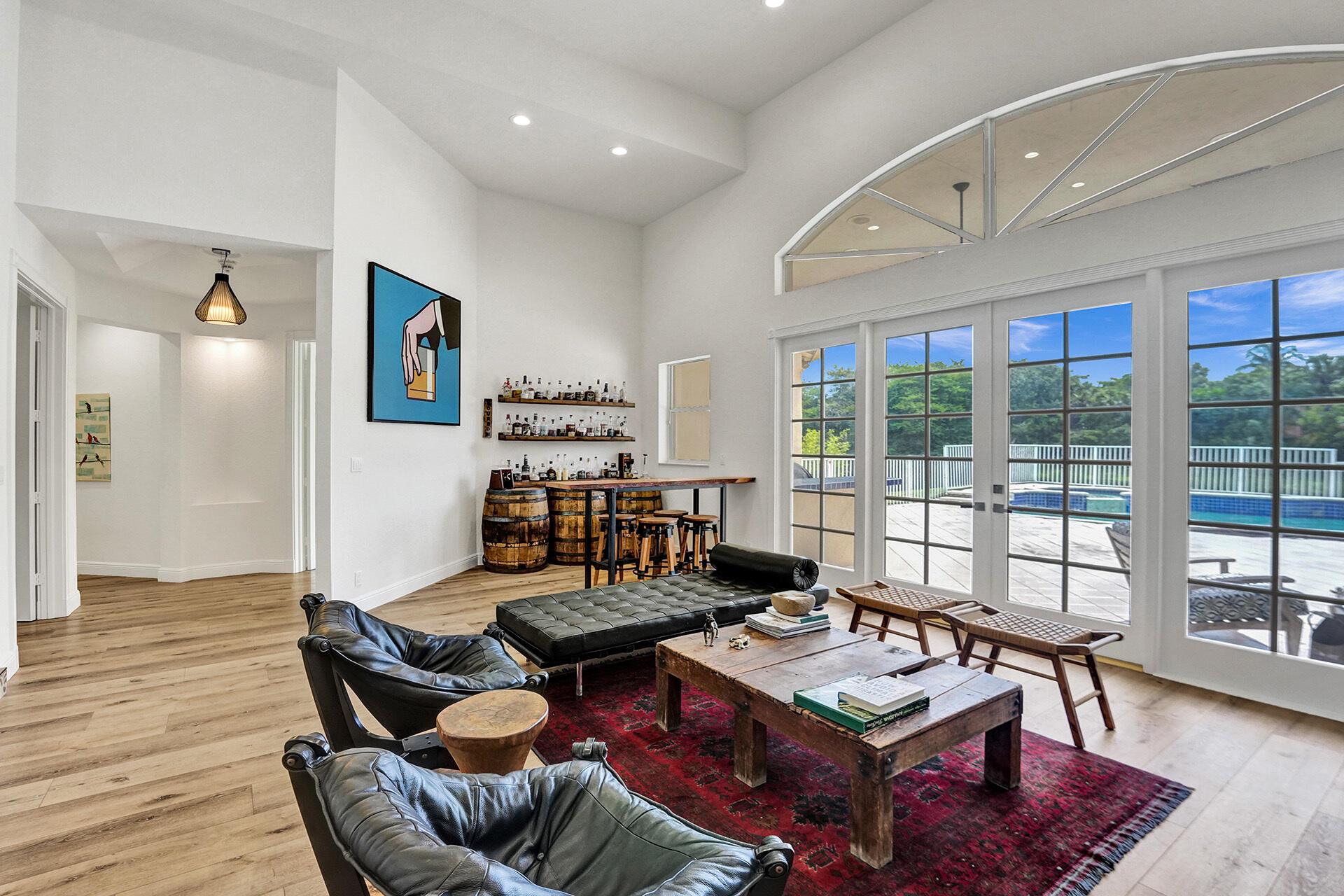 Outstanding home in Parkside! Welcome to your calm oasis, situated on a beautiful lake lot this one story, 4 bedroom 2 bathroom 2 half baths open concept updated home combines style & comfort! Front entry opens to high volume ceilings with loads of light & double French doors. High ceilings continue into kitchen/family room area overlooking pool with lake views. All new high end vinyl flooring throughout, impact glass in primary bedroom & bath, both HVAC units are newer, all new high hats & light fixtures. Huge backyard complete with pool/spa and mature mango, avocado, pomegranate, and fig trees. Additional features include: remodeled common bathroom, both 1/2 bathrooms remodeled, newer refrigerator, new oven, new pool pump. All nestled on a quiet tree lined street in a cozy neighborhood