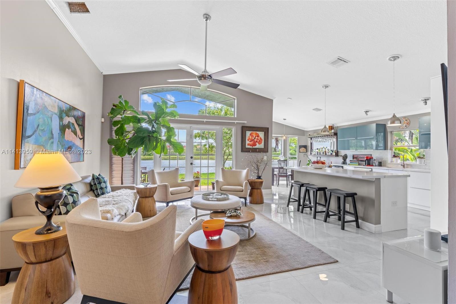 Live in paradise in this beautiful waterfront home located in the highly sought after Pembroke Falls with 24hr manned security! Fantastic 3/2 layout w natural lighting. Meticulously maintained! Open concept kitchen that is great for entertaining & flows into the family room! Gorgeous renovated kitchen w/ large center island, new appliances, wine fridge, gas stove and ample storage! Fully updated master bathroom with custom cabinetry, freestanding bathtub and separate shower! Enjoy South Fl living in the backyard w/ stunning sunrises on a long lake waterfront open terrace. Delicious Mango tree! 2 car garage! Prestigious community that is very family oriented. Resort style amenities that include a community pool, tennis courts, basketball courts, as well as a state of the art fitness center!