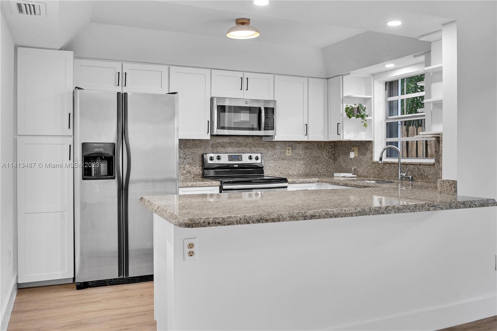 Stunning remodeled 3 beds / 3 full baths townhouse in Flamingo Gardens. Freshly painted. The kitchen has new cabinets, new handles, new baseboards and door trims, granite countertop, and stainless steel appliances. One full bathroom on 1st floor. Two story property with 1 car garage, 2 outdoor parking spaces in front of the unit. NEW ROOF. A+ schools. This unit is right across from the swimming pool. Home features formal dining room & living room, large family bedroom, huge master bedroom with walk-in closet, new luxury vinyl floor throughout. LED light. Accordion shutters. Next to Flamingo Park. This is a Must See!!