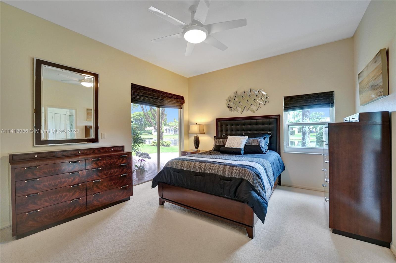 Set in the coveted Emerald Estates community of Weston, this one-level residence proudly occupies an impressive waterfront parcel. This spacious home blends comfort, luxury & functionality. Featuring 10 Ft ceilings, custom-built kitchen with deep cabinets & specialty storage solutions, stone counters, stainless appliance package. Spacious primary suite with convenient access to the patio, ample walk-in closet & en-suite bathroom with top-of-the-line, comfort-height fixtures. 3 Generously sized suites & stylish bathroom with a deep soaking tub, interior laundry. Brick pavers in entry & covered patio, landscaped surroundings. New roof, impact windows, doors & sliders. Maintenance includes landscaping, irrigation, cable TV + internet. Best amenities; pool, gym, 24/7 gated access & security.