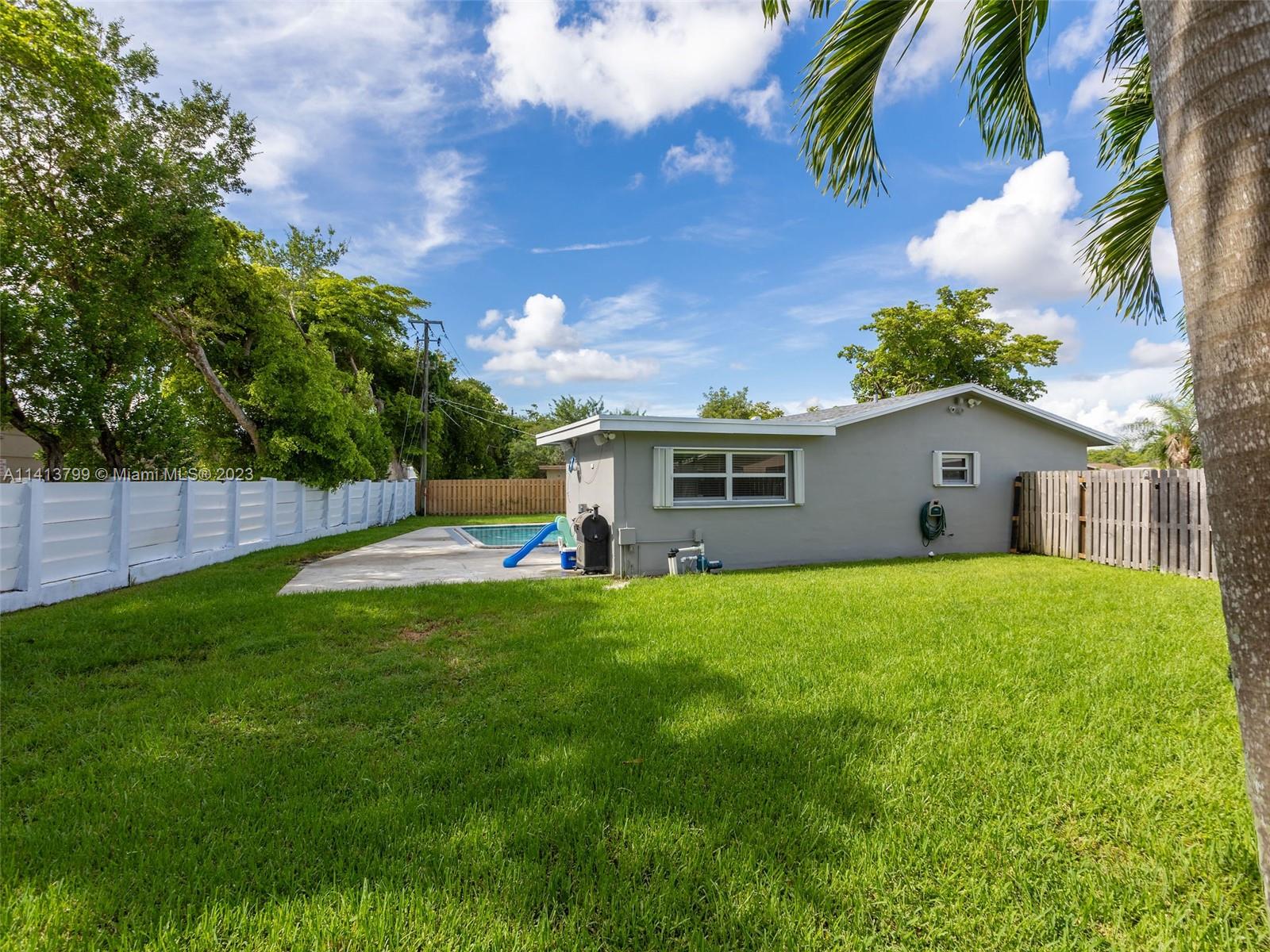 Welcome to this tastefully remodeled 3 BR, 2 Bath home with pool and 1 car garage on an oversized lot in desirable West Sunrise. Boasting a range of modern upgrades and a spacious layout, this property has a well-designed split floor plan with a den/family room for extra living space. The kitchen was updated in 2022 and has a contemporary feel with new appliances. The new roof was just installed in 2023. Electrical outlets, interior/exterior lighting were also updated in 2023. A fantastic pool area and a large, fenced yard with a new side fence complete the well-maintained exterior. A/C unit and water heater installed in 2019, hurricane impact windows, and accordion shutters. Easy access to amenities, shopping centers, dining options, transportation hubs, and schools.