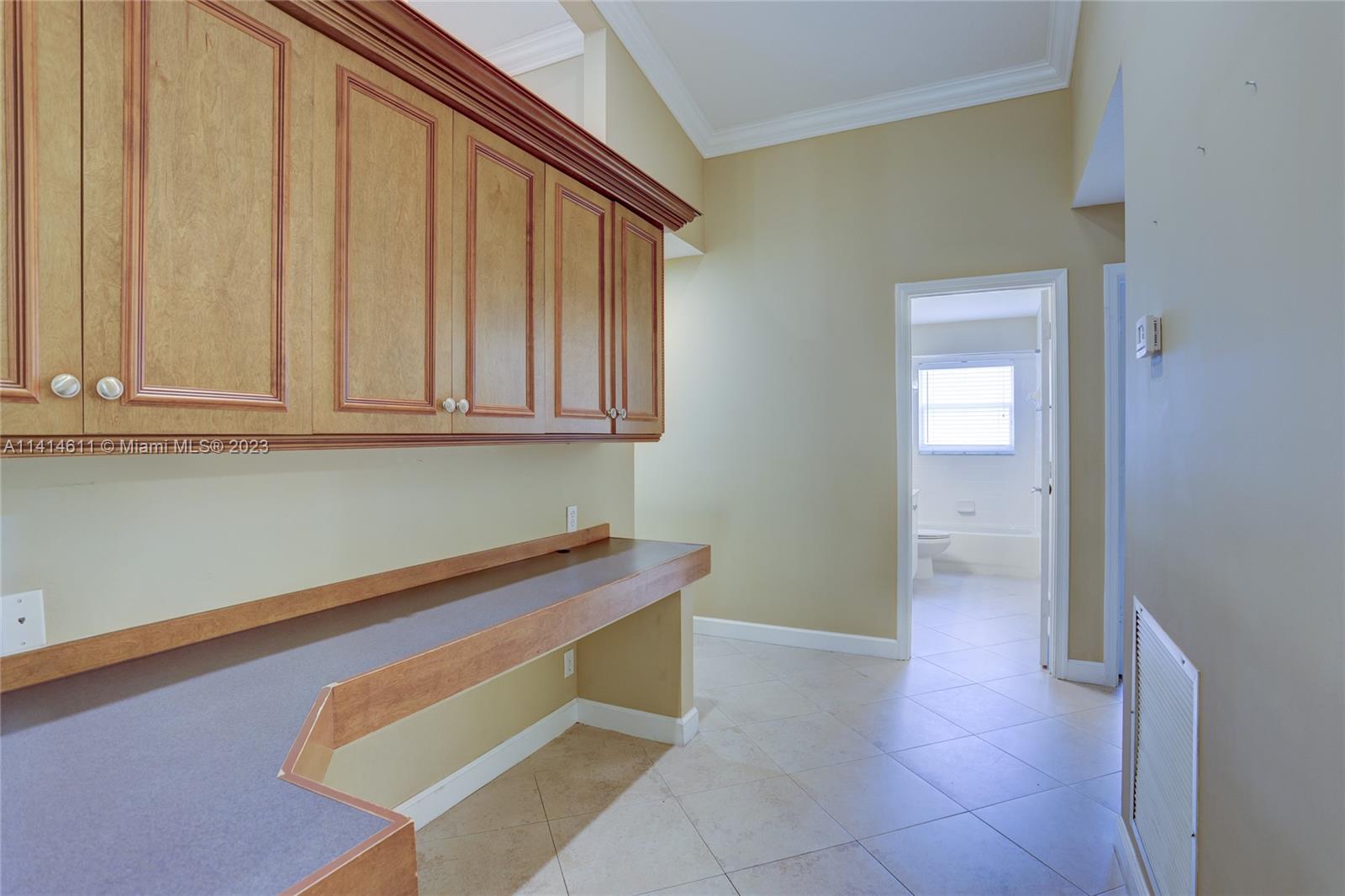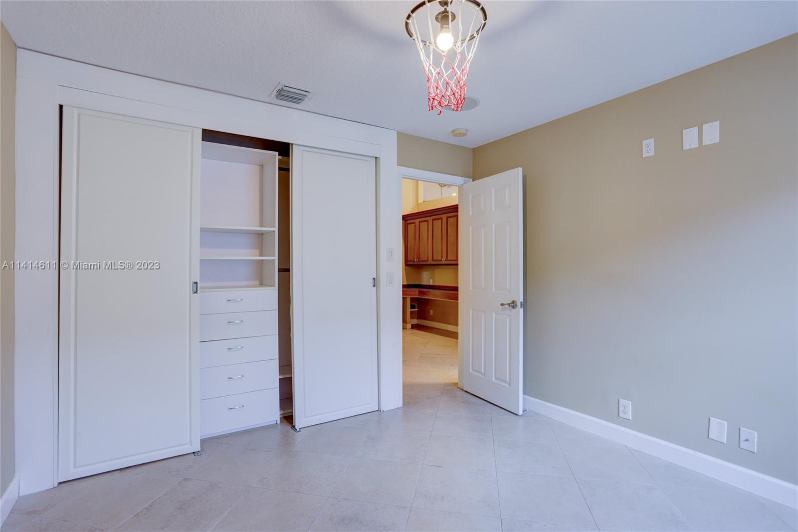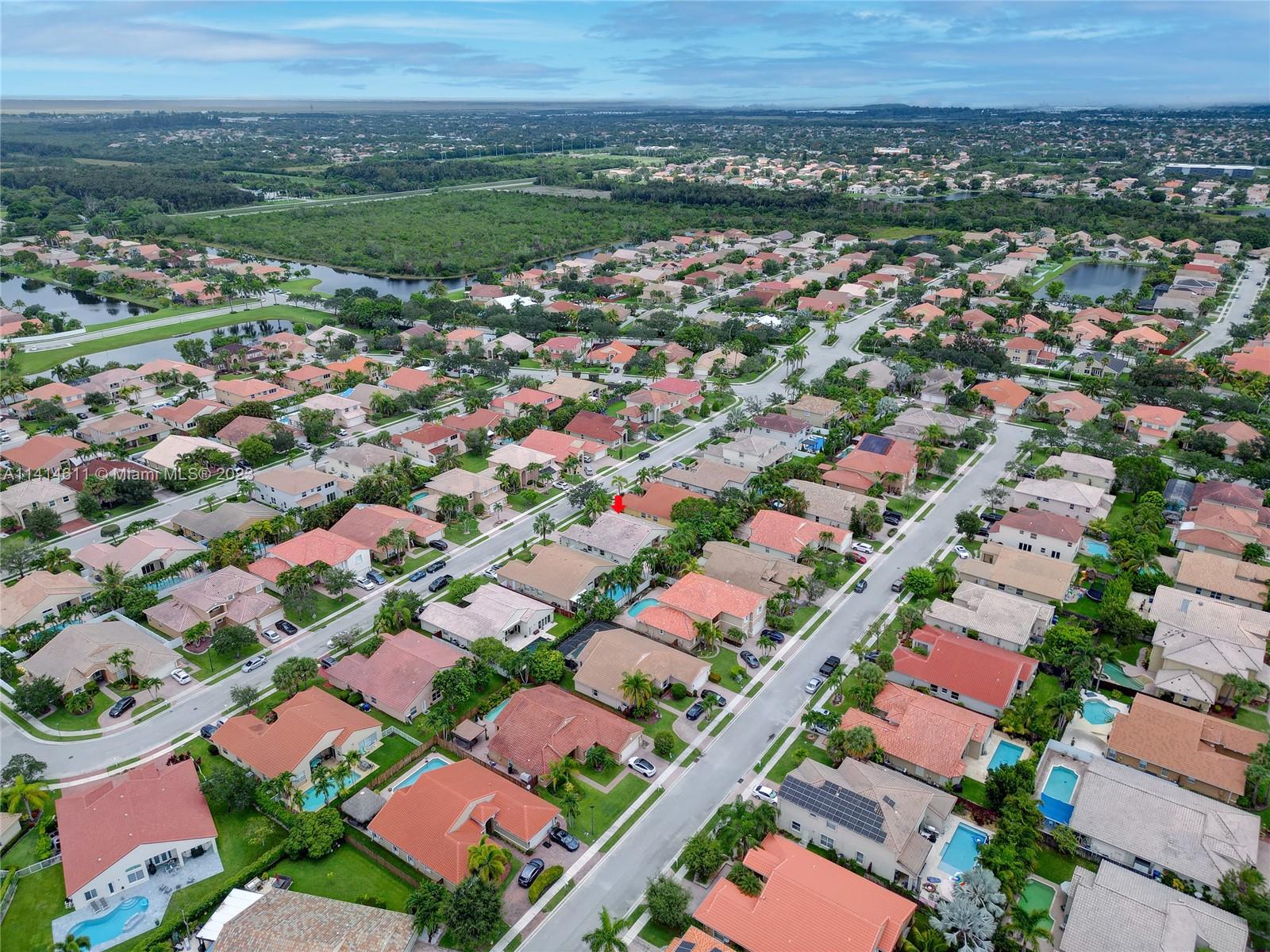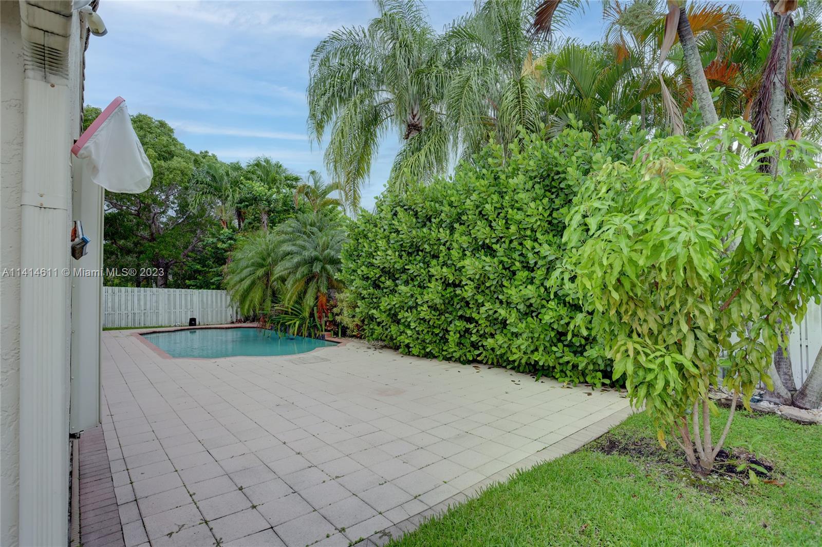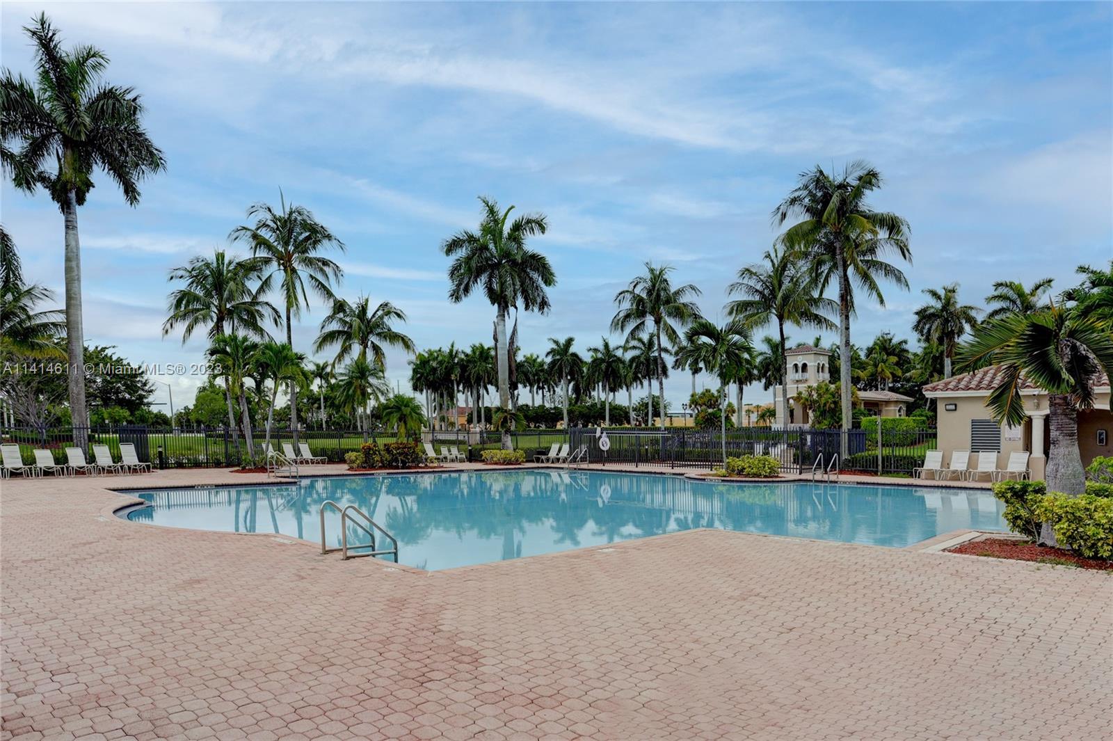 Stunning pool home in the sought after gated community of Encantada in West Pembroke Pines! This home features a split floor plan with 4 ample bedrooms & an oversized den/5th bedroom. Tile floorings throughout with soaring ceilings & crown molding. Formal living & dining area with eat-in kitchen counter. Gourmet island kitchen with real wood cabinetry, granite countertops, pull outs & pantry. Stainless steel appliances, newer AC (5 yrs old approx) & 2 water heaters (1 tankless). Gorgeous built-in wall unit & convenient built-in workstation for students or those working from home. Built-in closets throughout including the garage. Outdoor, enjoy the pristine heated pool & large patio fully enclosed with a privacy fence & beautiful landscaping. Accordion shutters throughout. Great schools!
