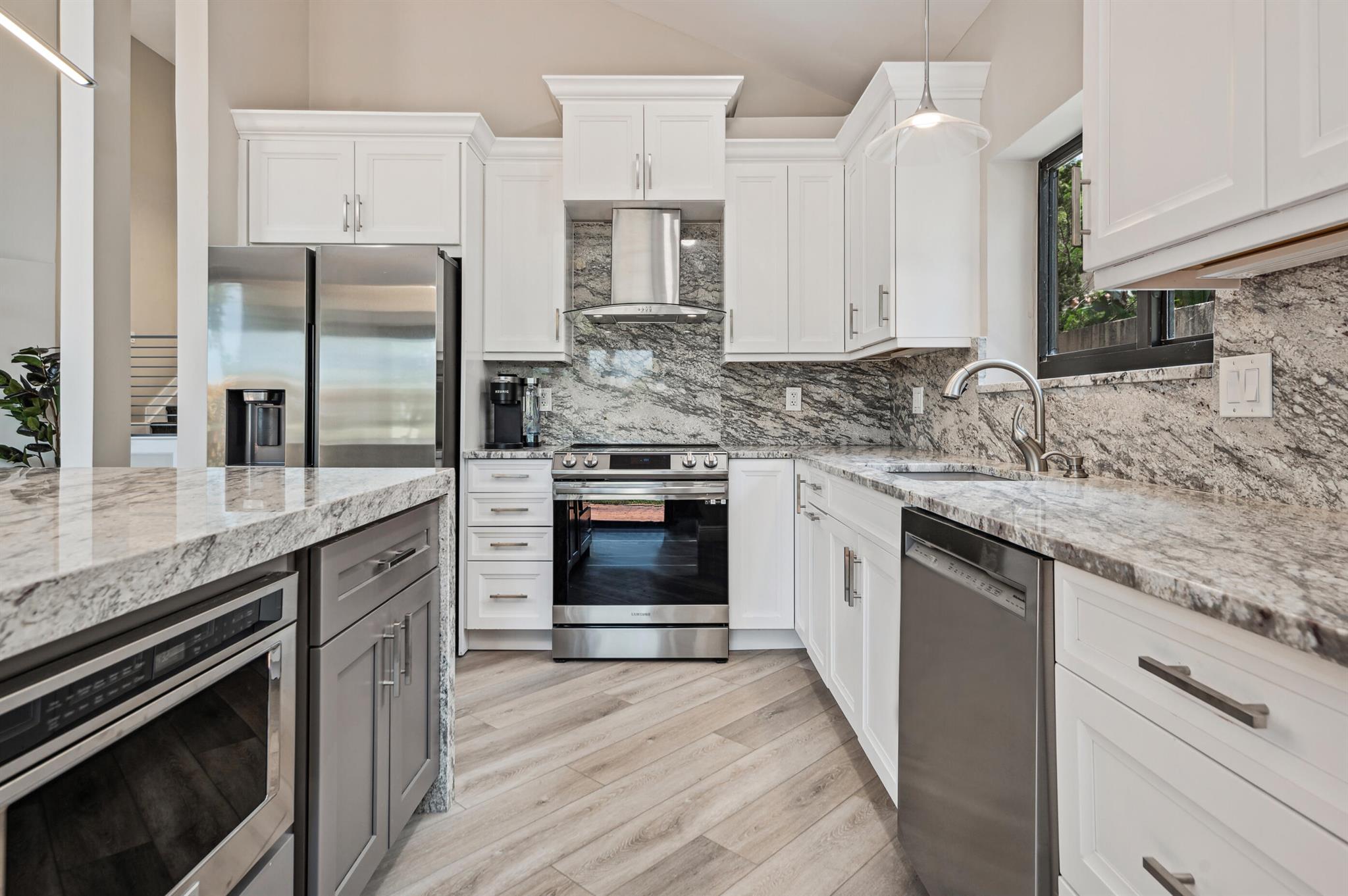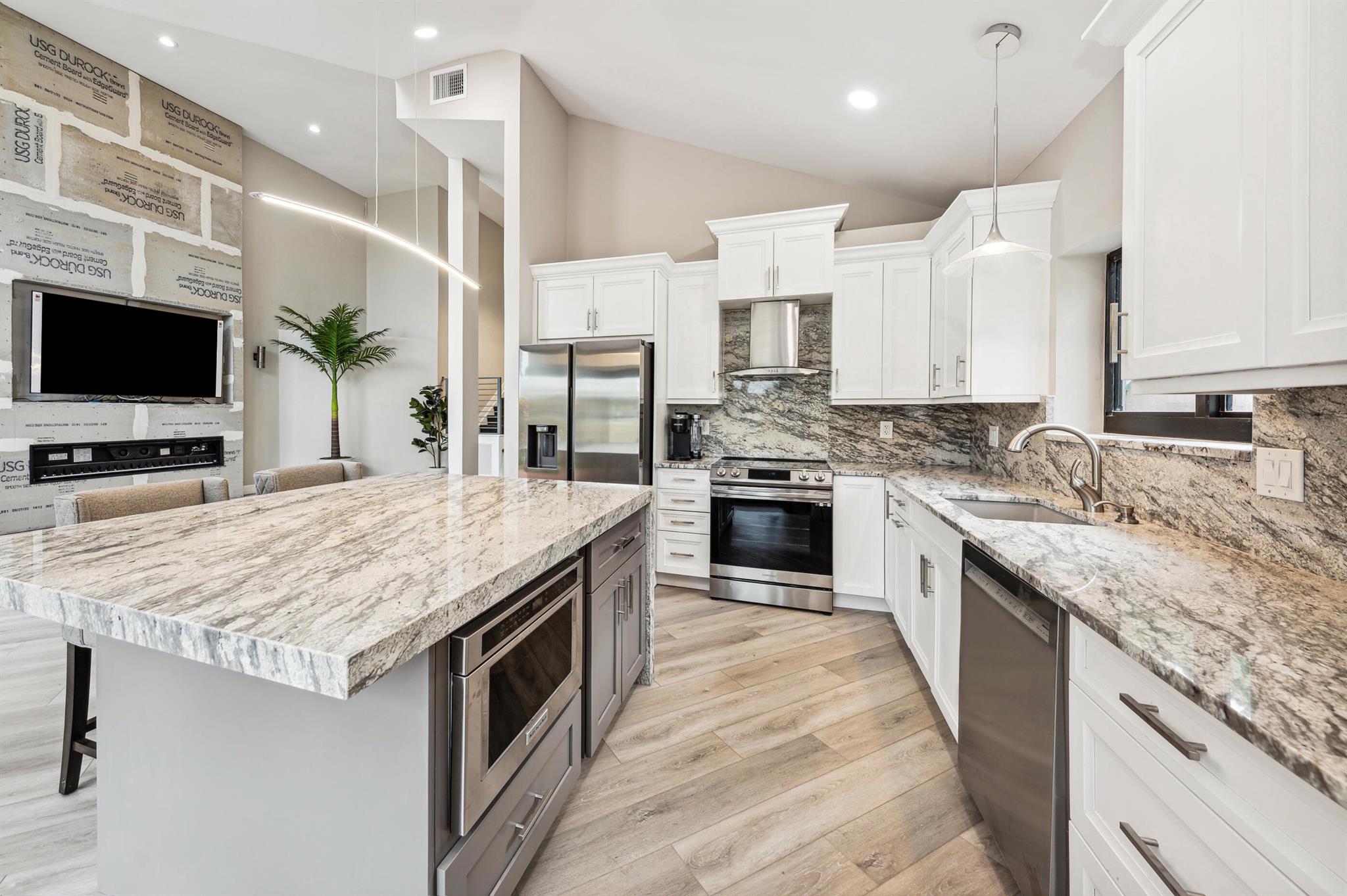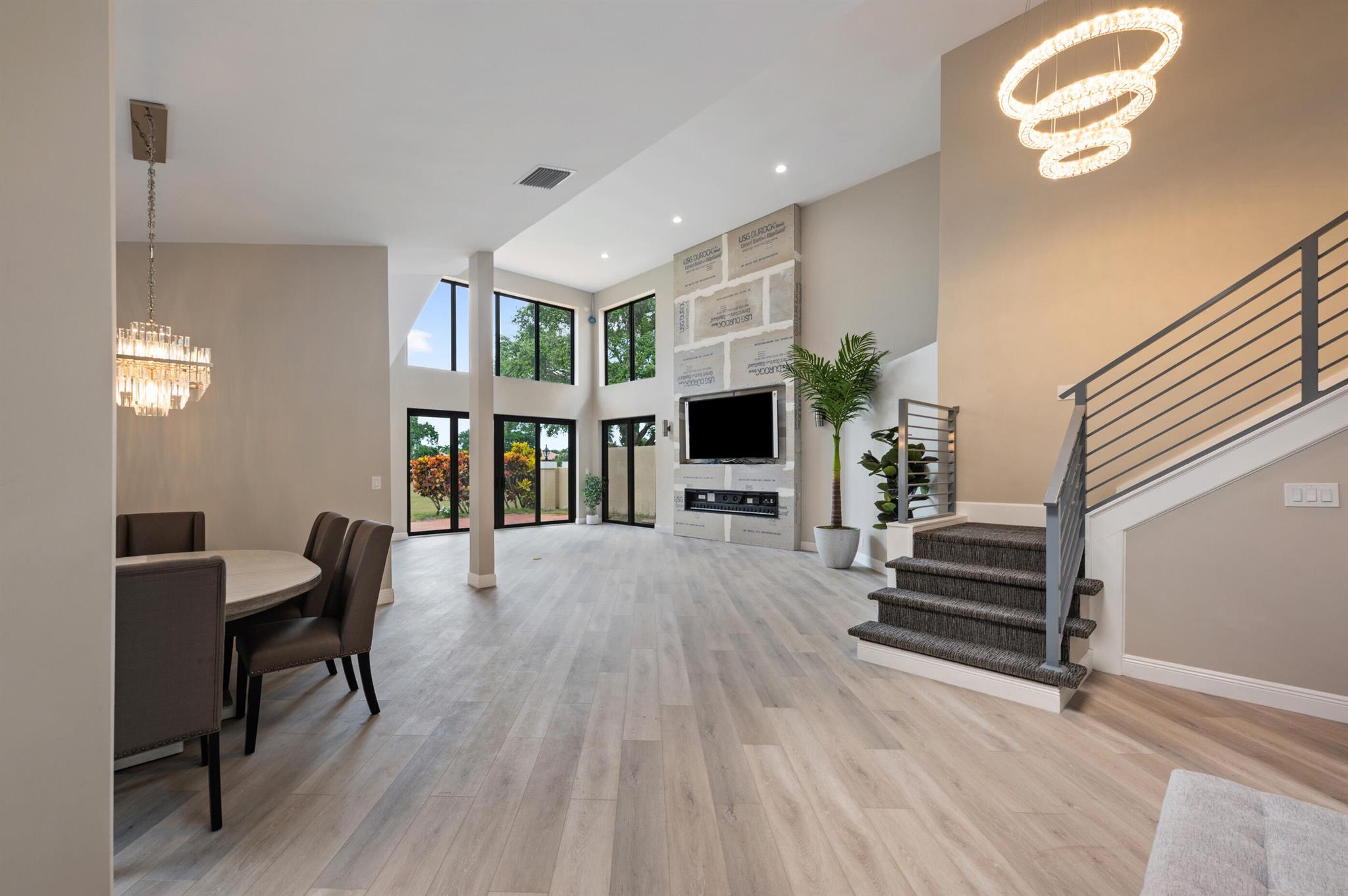 TAKING BACK UP OFFERS: Welcome to this beautiful newly renovated townhome in Boca Pointes subdivision of Caravelle. This elegant home is light and bright with many upgrades. All new hurricane impact windows, new electrical panel, new fixtures, new hi hats, two electric car charger receptacles on each side of the two car garage, wired for a hot tub in the back yard, new vinyl flooring throughout the entire home, fireplace and tv wall in the living room, 3 fully renovated bathrooms, and all new granite and island in the kitchen. This model has three large bedrooms plus a den, which can be converted to a 4th bedroom, and 3 full baths. The primary bedroom suite and den are on the first floor. Make this your home and enjoy this lifestyle with a beautiful golf course view!
