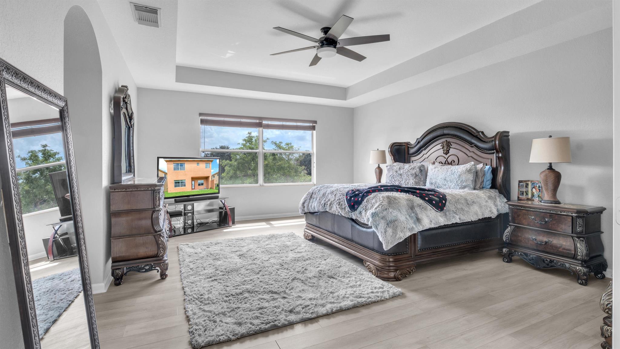Spacious 5 Bedroom, 3.5 Bathroom home in the sought-after Terracina community. This residence showcases an array of great features. Private fenced in backyard with lake view. Please note that a minimum Credit Score of 700 is required per HOA.