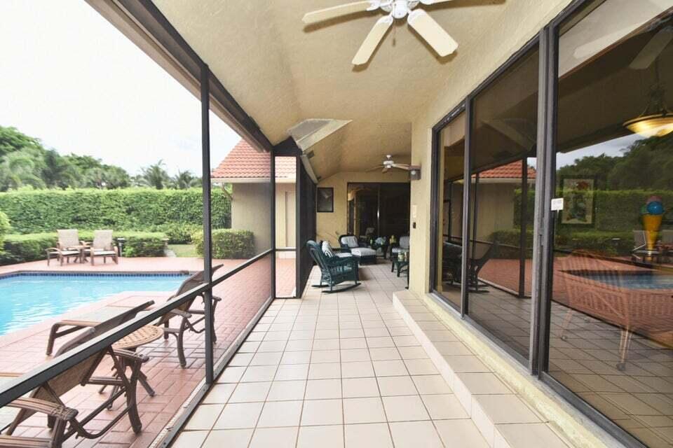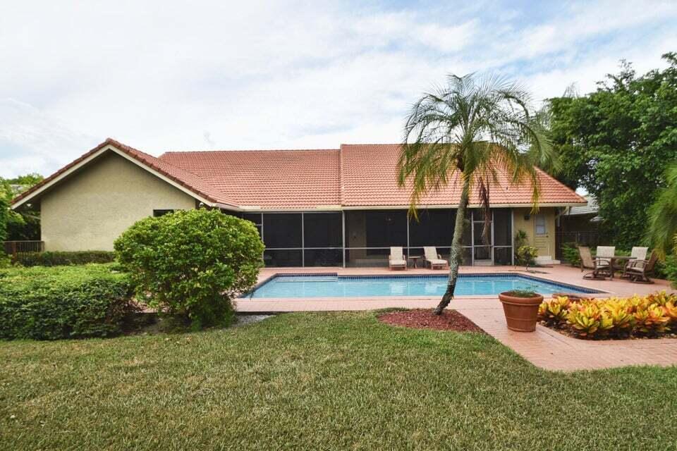This 4 bedroom, 3 1/2 bath single family home is situated on a beautiful oversized lot in Mahogany Bend. The spacious family room is adjacent to the kitchen. There are 3 generous sized bedrooms and a large primary bedroom. From the screened in porch to the oversized patio surrounding the pool to the lush greenery and beautiful landscaping you will enjoy the peaceful beauty that this home offers. The home is a perfect combination of indoor and outdoor living. ~ Imagine life inside the Nation's #1 Private Residential Country Club Lifestyle offering resort-style living. Conveniently located less than 10 minutes from downtown Boca Raton. PLAY our 4 Golf courses, 27 Tennis courts and 14 Pickleball courts; SHOP our retail store, golf and tennis pro shops, DINE in our 10 dining venues. ENJOY!