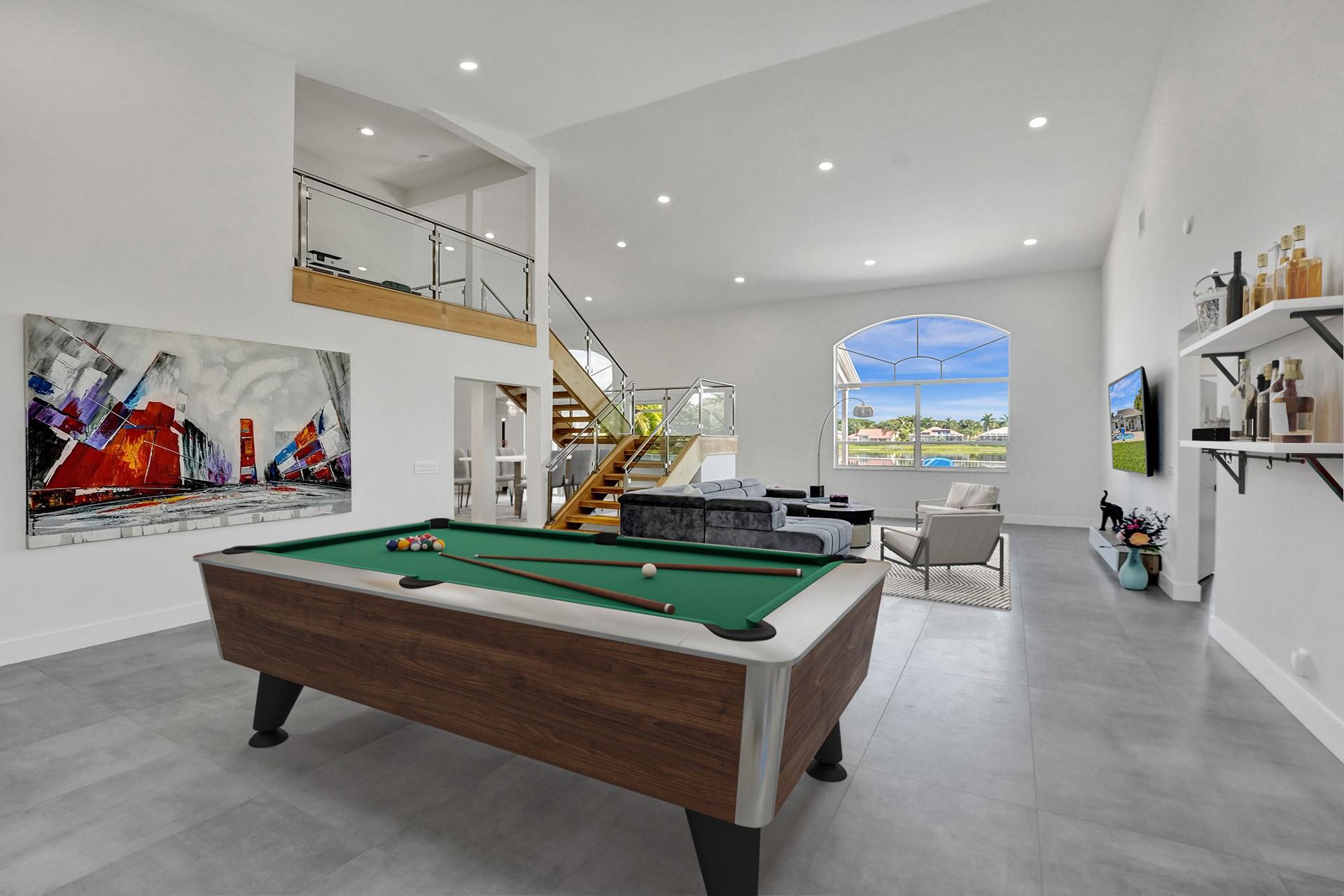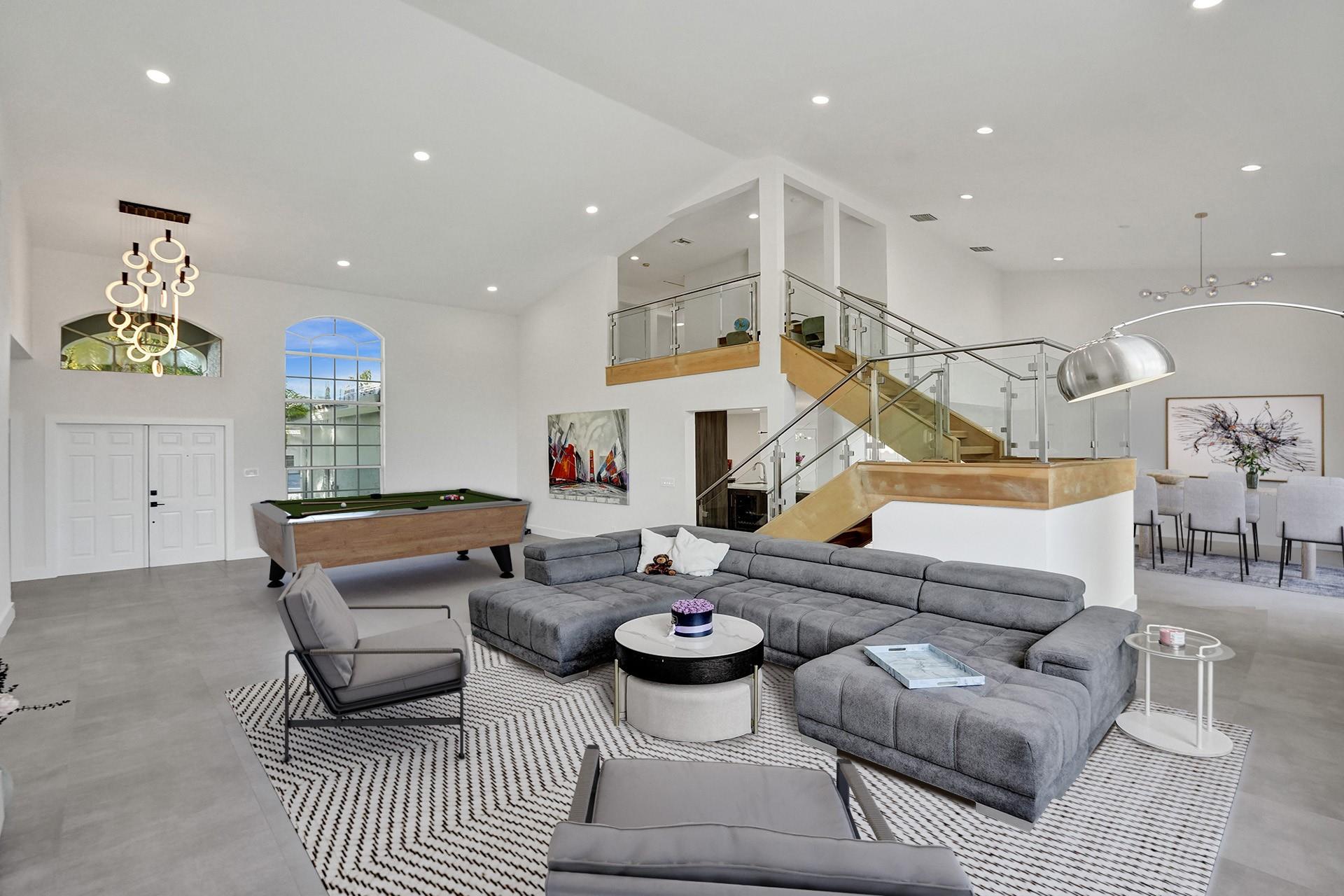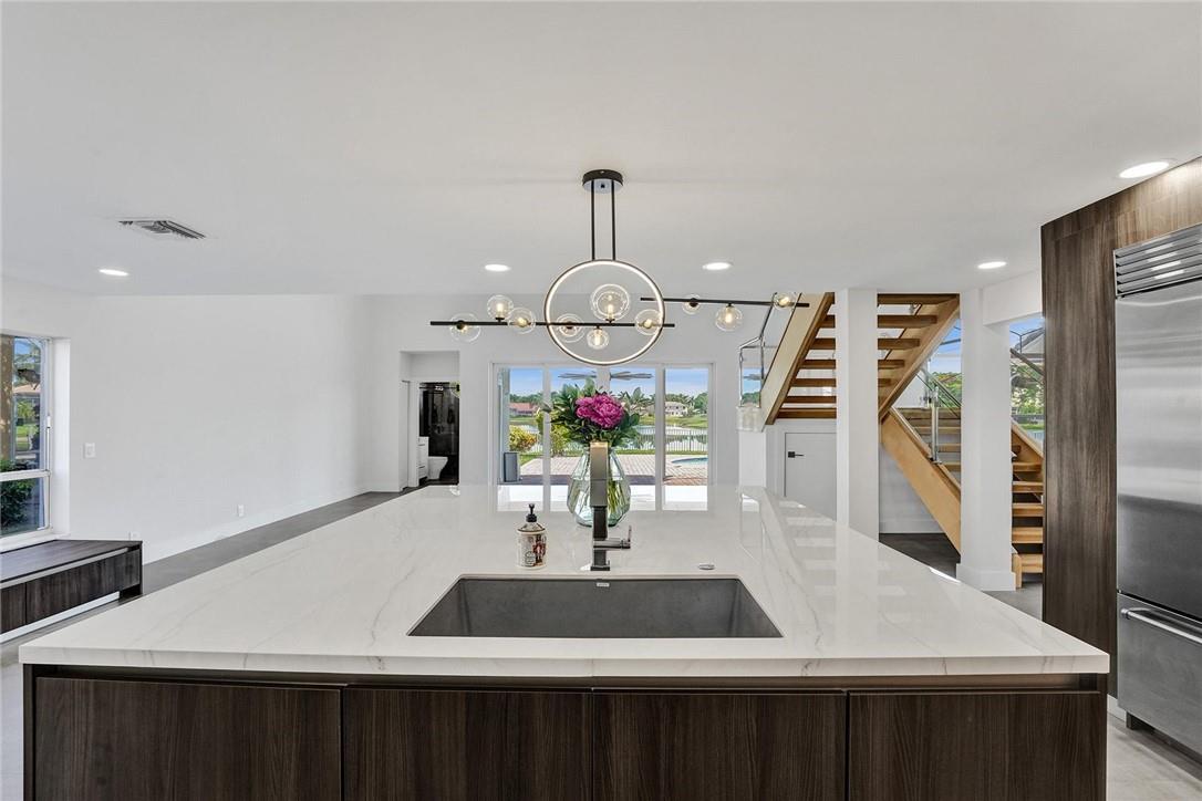 Exquisitely remodeled waterfront luxury stunner in the highly coveted gated community of Boca Falls with A+ schools. Incredible lake views sunrise to sunset overlooking a heated pool! Very private large lot. NEW ROOF! Immediately you'll be impressed by the massive ceilings and views. The spacious and bright layout continues throughout this home, featuring 5 bds & loft. Custom European gourmet kitchen with designer lighting & best materials around. Oversized Italian porcelain center island and top-of-the-line Bosch, Miele, and Sub-Zero appliances, custom cabinetry, and storage. Renovated cabana bath includes shower w/ frameless doors. Brand new W/D stack in the renovated laundry room. Gorgeous 24x48 Italian Porcelain tile main floor, new flooring, baseboards, doors throughout the home.