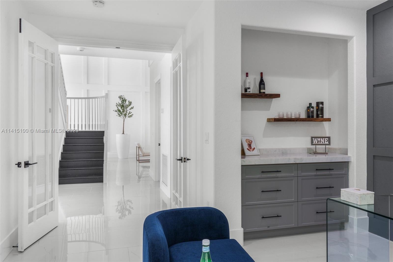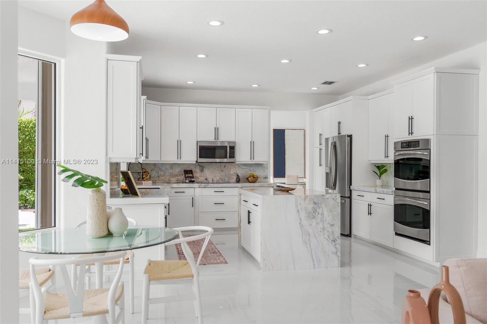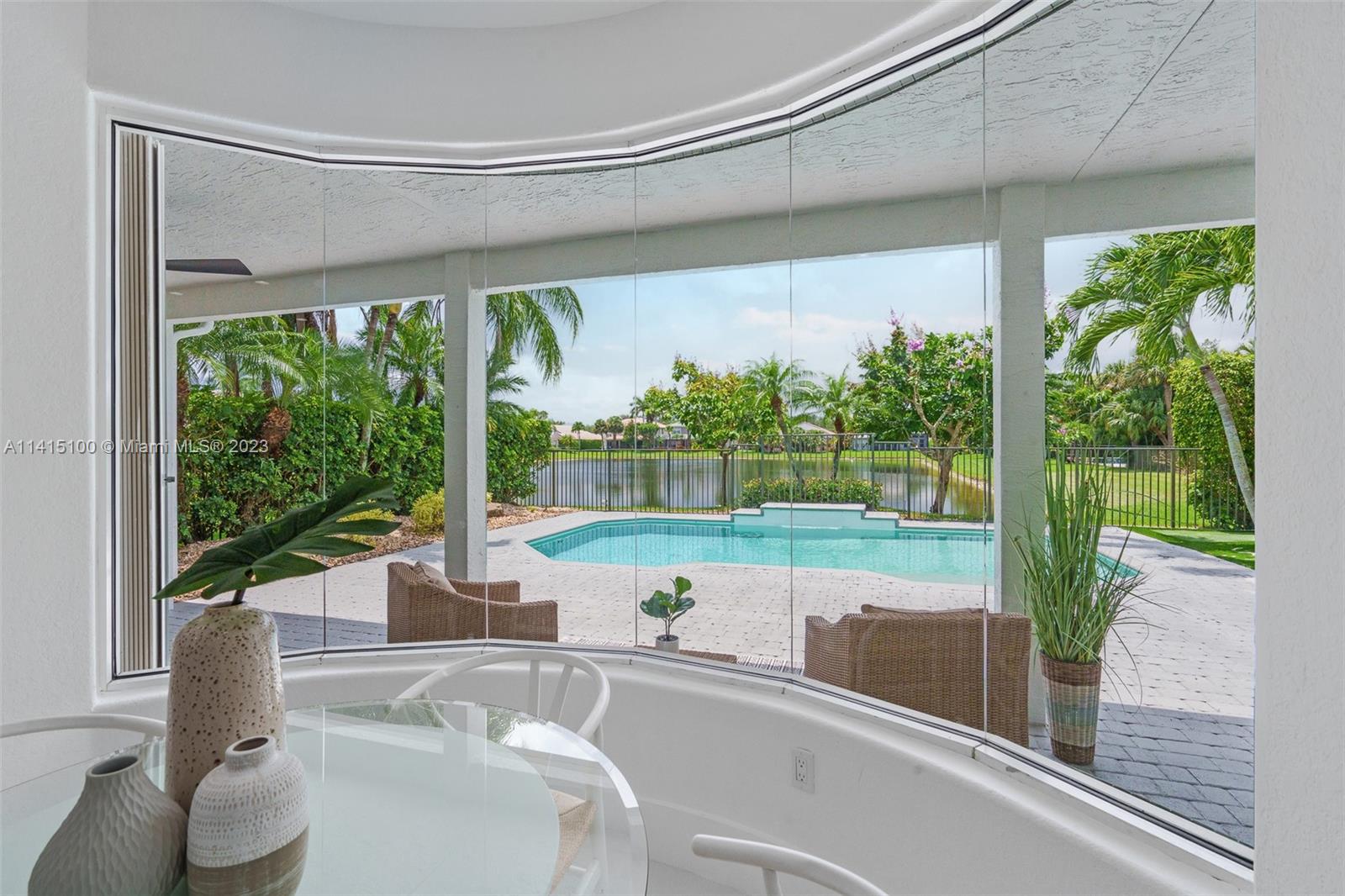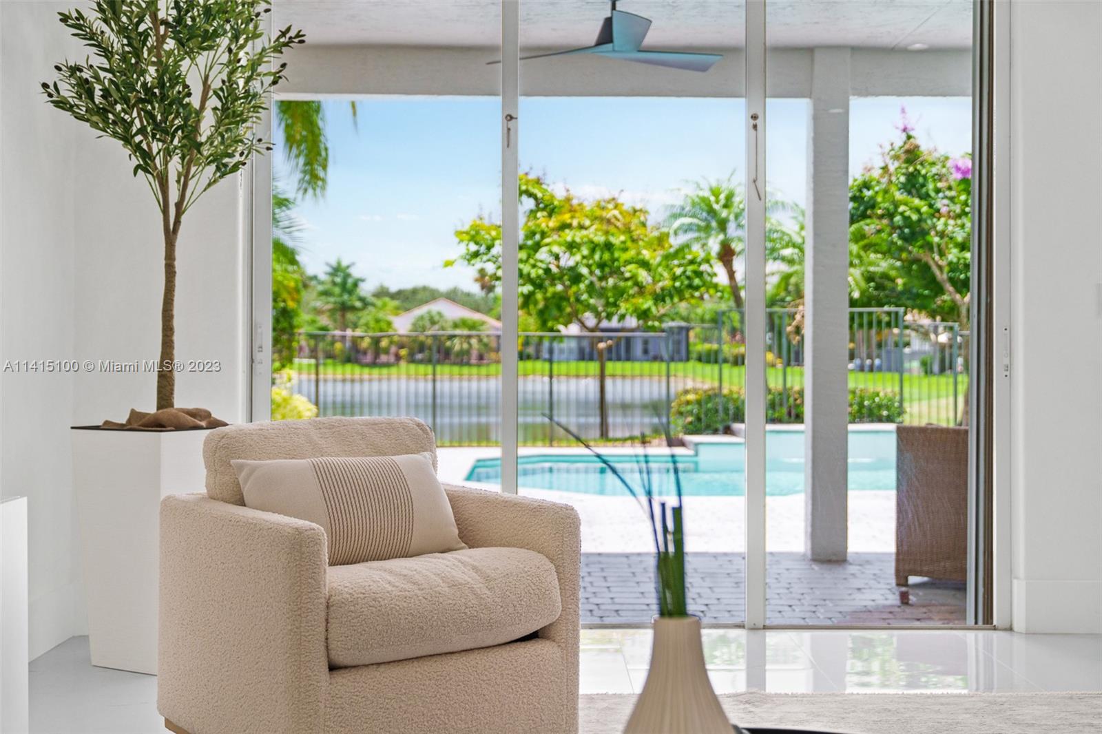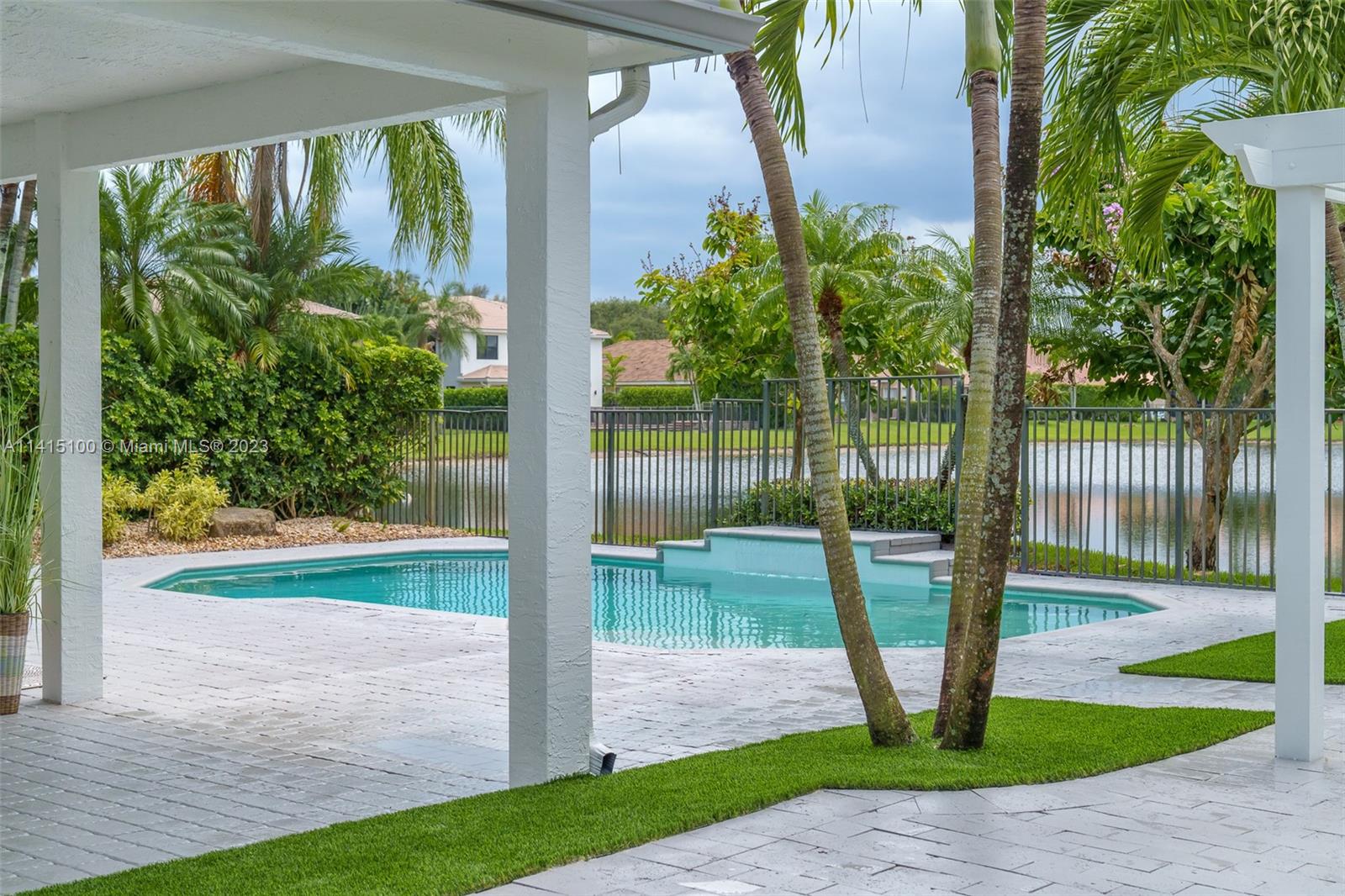 One of a kind masterpiece in Saturnia Capella, one of the most highly sought after communities in West Boca. Exquisitely and tastefully remodeled this home boasts 5BR and 4BA. Situated peacefully on a lakeside lot, the large swimming pool is accentuated by a charming pergola sitting area and personal putting green. Inside, high volume ceilings show off the open floor plan punctuated by gorgeous oversized porcelain floors. No detail has been overlooked in this stunning home. Full house Generac generator, smart home SONOS system, speakers throughout, thermostatic shower system panels in bathrooms, elegant modern LED lighting and fixtures. Main air handler is 2022 and is equipped with dehumidification system. Community clubhouse has pool, tennis courts, workout rooms and more.