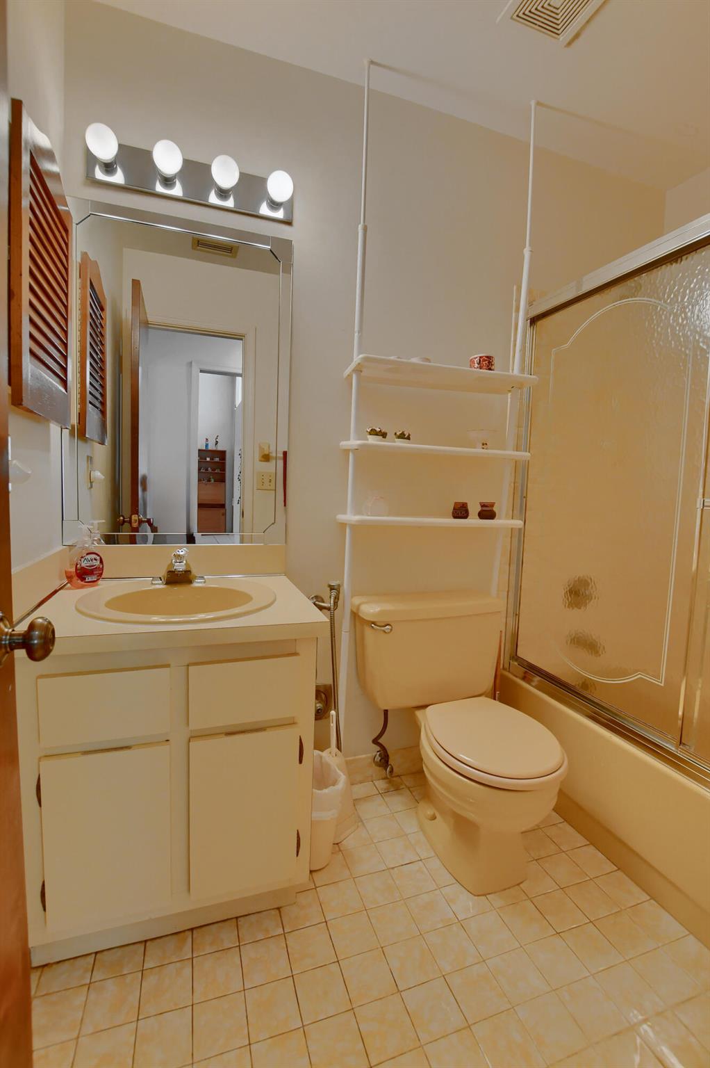 The most affordable well cared for home in Boca Greens that you can make into your dream home with some updating. Located on a quiet cul de sac, screened patio & pool with amazing golf course & serene lake views. The enclosed Florida room can be used as a den/office or extension of the living room area. Off the 2nd bedroom is a private fenced in paver patio. Low HOA fees include premium cable & internet. Accordion storm shutters, custom mirrors, water heater (2016) roof (2003) flat roof (2023) a/c (2013). Membership not mandatory & residents can sign up for tennis & golf on a pay to play basis. Top rated schools, quick short walk to nearby shopping centers & houses of worship. All this & more make Boca Greens an ideal place to call home.