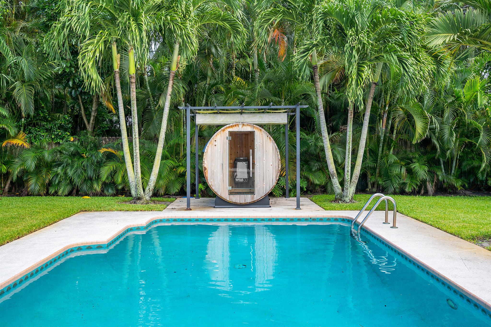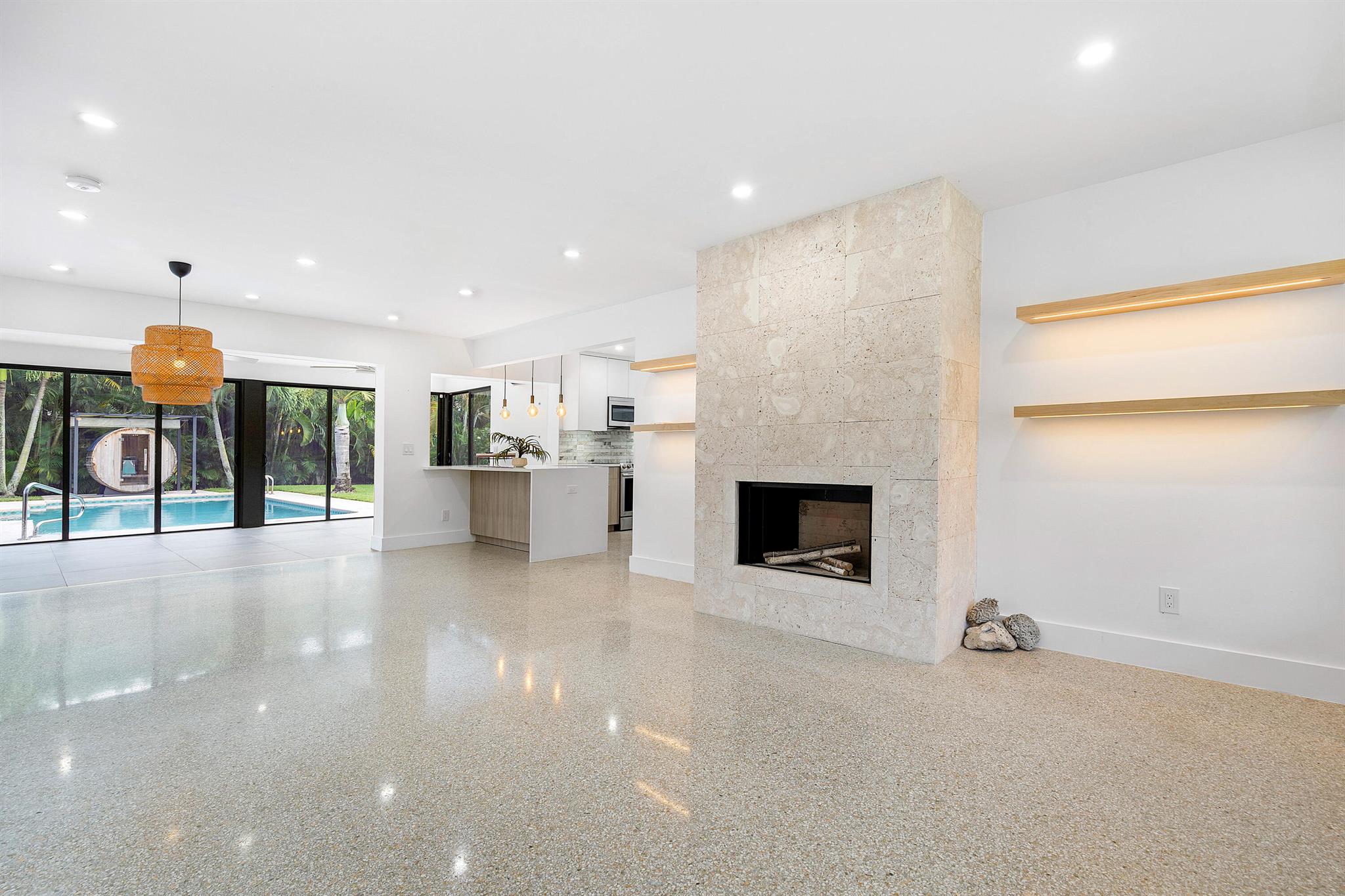 Accepting backup offers. Showings are still allowed.Welcome to this fully renovated Mid-Century Modern in the desirable and quiet Lake Clarke Shores neighborhood.3 beds/2 baths, impact windows/doors, terrazzo floors, all new kitchen/baths, and a cozy coquina fireplace. Enjoy peace of mind and hassle-free living with new electrical, HVAC, and new water heater. The family room merges indoor/outdoor living, revealing stunning views of the tropical backyard/large pool through stacking sliding doors. Large pantry, attached garage, large yard for entertaining or future home expansion. Benefit from a fully installed Ring Security system with sensors throughout. Outdoor shower. Barrel sauna is negotiable but not included in the sale price. Great investment or primar