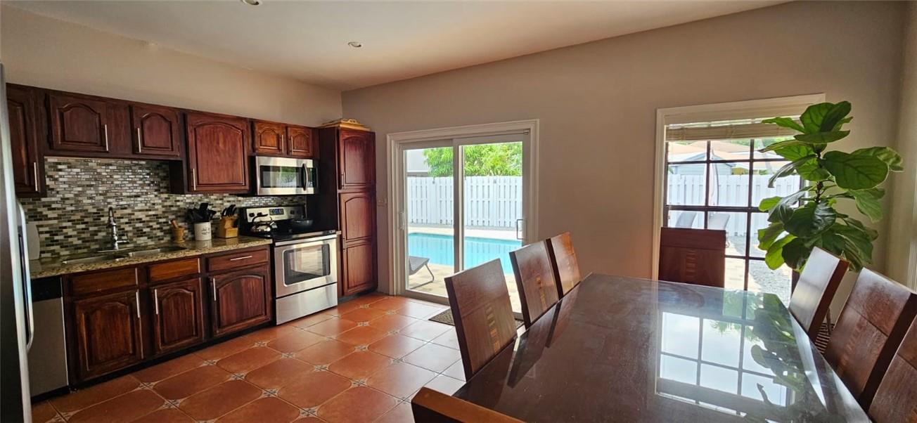 Gorgeous, well-maintained single-family 3 br/2ba home. Location, location, location! Tax roll shows 9526 S.F. lot size; but just look at the lot- pool, back yard, side yard, front yard. WOW! The pictures speak volumes for what you're about to purchase. The exterior is a tropical oasis, just screaming "SERENITY NOW". It includes a private, underground salt water pool. Fenced, private side and back yard, with room for a family backyard barbeque or gathering, and for the kids to play. Plenty of front and side parking space when you have guests. It even has an additional storage shed. Front door and sliding door are hurricane-proof. Showings: NO SHOWINGS AT THIS TIME