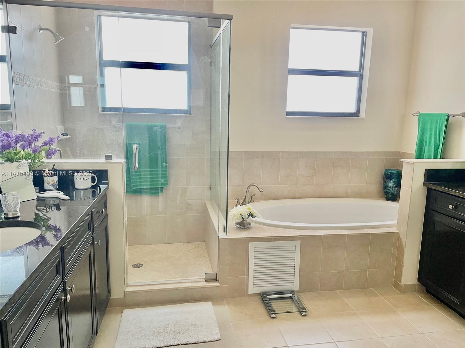 Spectacular Single Home 4 Bed/3.5 Bathroom in Doral with 2674 sqft,granito countertops,spacious kitchen and family room, porcelanato and wood-style tiles,great 2 Suite Master bedrooms, laundry room, ample patio and gazebo, security cameras,storage cabinets, 2 covered garage cars and 2 more parking spaces, plenty of guest parking spaces,Club House with beautiful pools, kid splash pool, gym, spinning, playgrounds and Basketball court, Ready to Move In