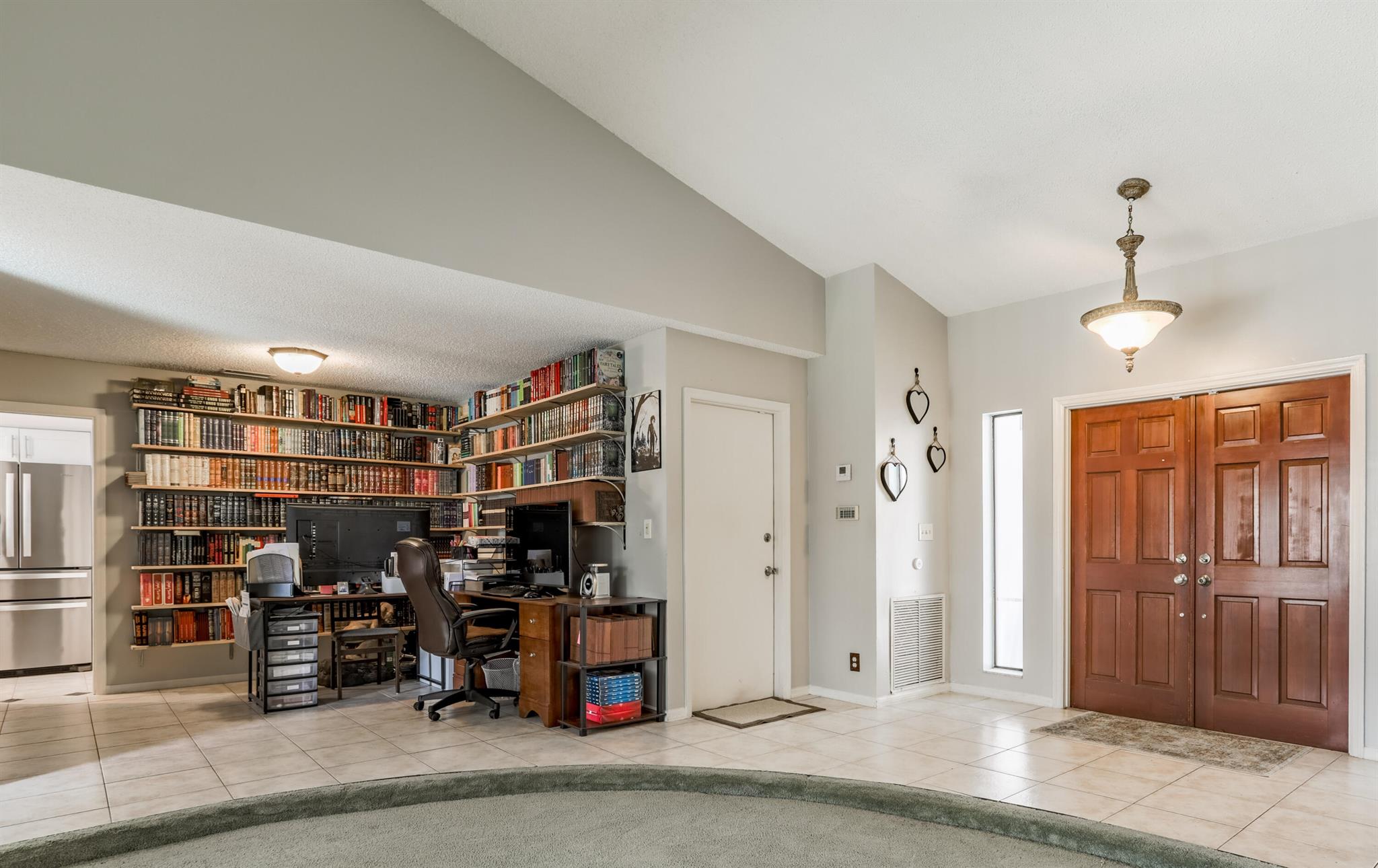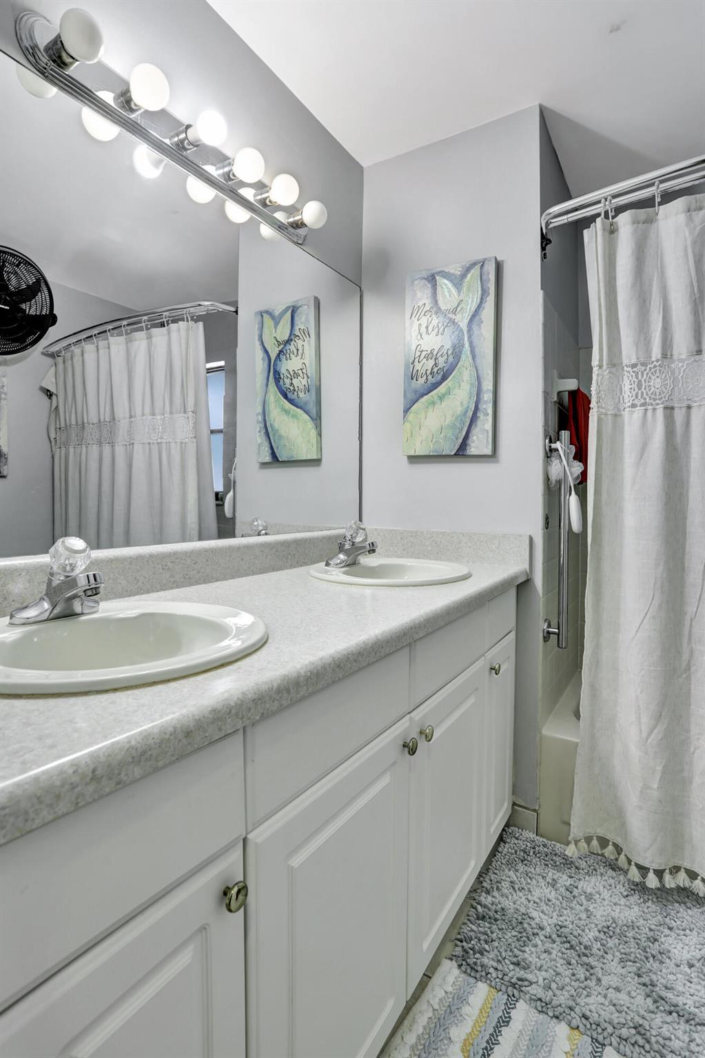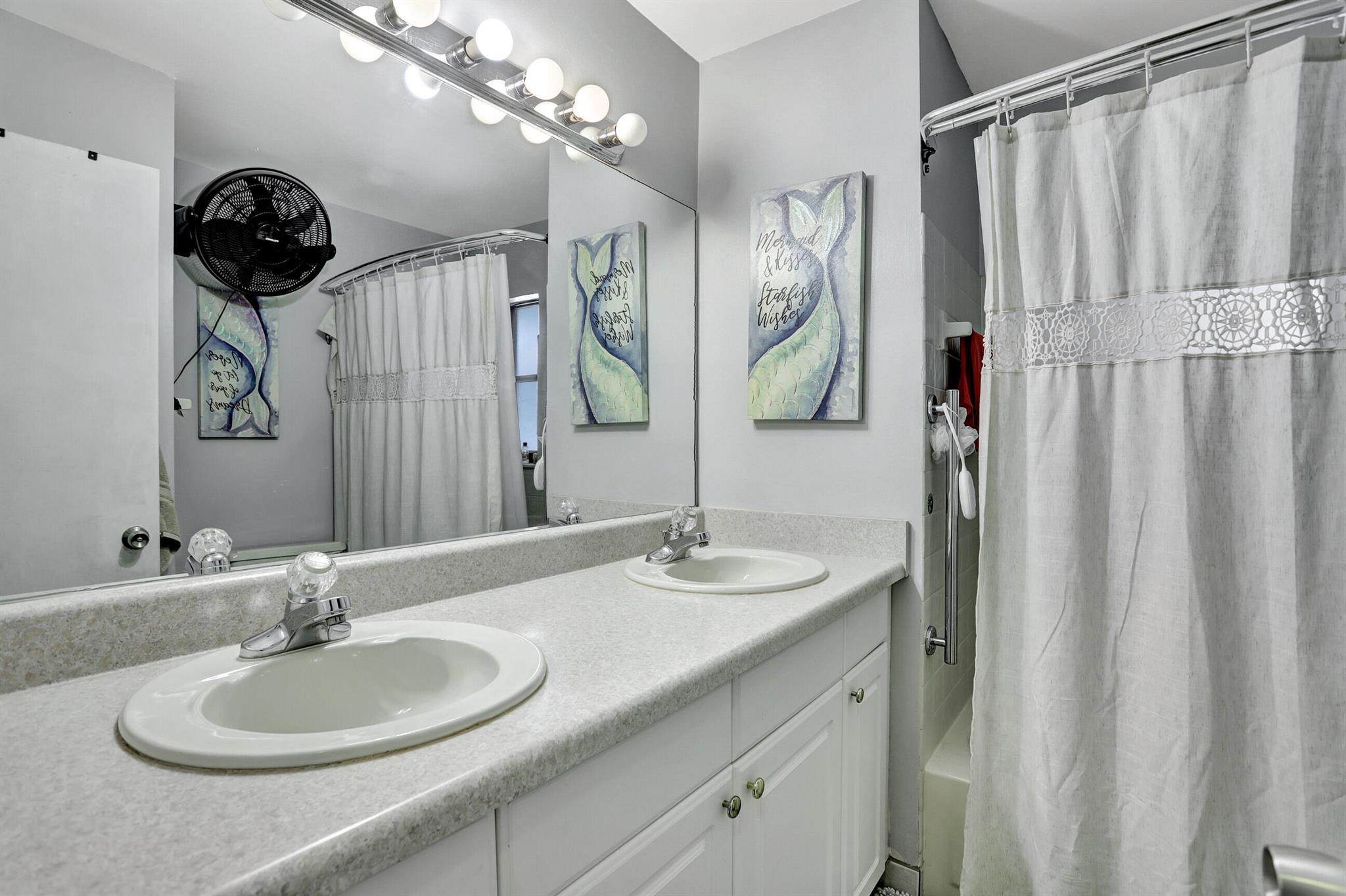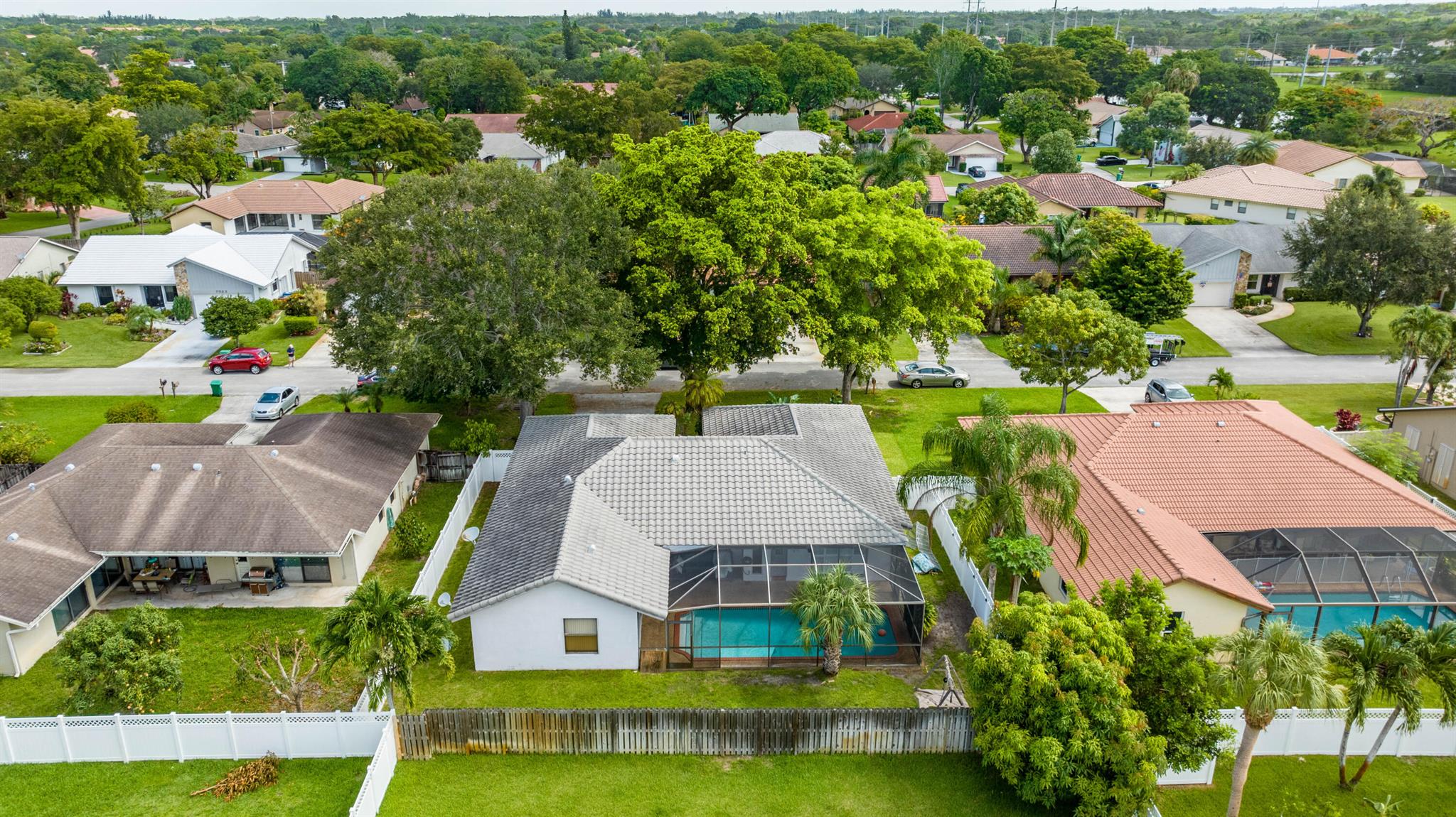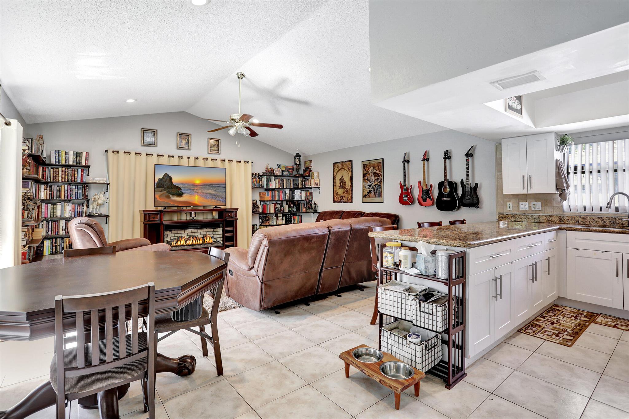 This wonderful home is nestled on a quiet street in a heavily desired community where mature shade trees line the streets. Features include vaulted ceilings, large neutral tile, laminate in the bedrooms, a large ensuite master with plantation shutters, double sink vanity, step down shower, and cabana door to the pool area. The kitchen opens up to the family room with bar seating and includes white shaker cabinets, granite counters, undermount sink, newer Whirlpool washer, dryer and refrigerator. The roof is approx. 6 years old, and the AC is 4. The pool has Southern exposure, it has a salt system and a new pump motor. The backyard is completely fenced, a smart irrigation system was installed along with new gutters w/ screens. The garage fridge does not convey.