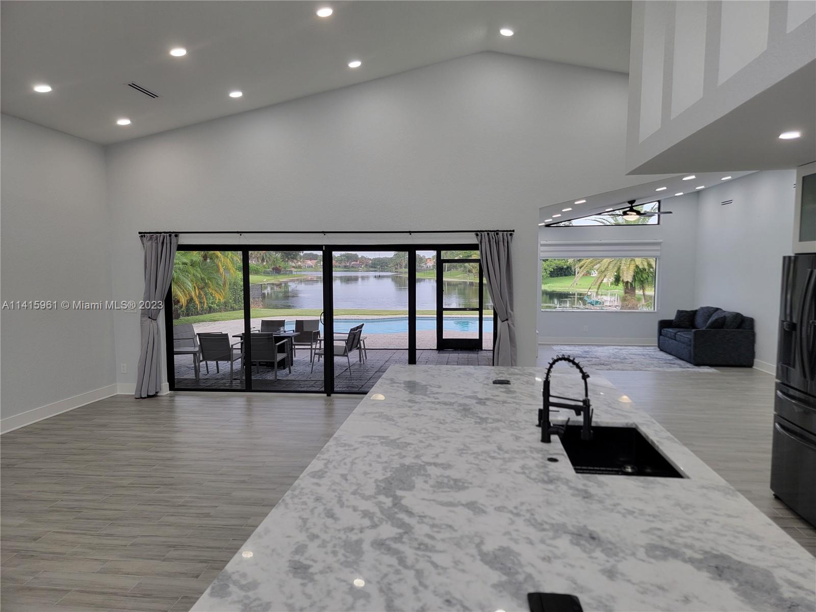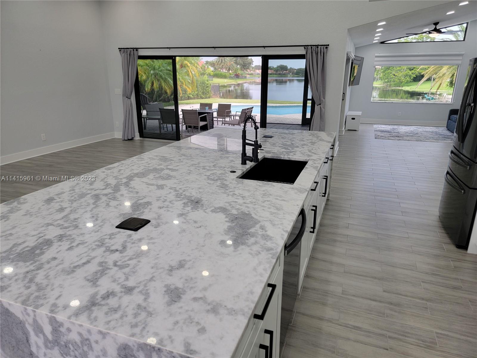 Amazing waterfront views from this beautifully renovated and remodeled 3bed 2bath 2car garage home with a private pool and spa boasting a gorgeous outdoor kitchen, hurricane impact windows and doors, all new electrical, all new cpvc plumbing, marble countertops, plank tile flooring, wifi black stainless steel appliances, wifi lighting, wifi pool & spa automation, wifi sprinkler system, wifi a/c, wifi security alarm system and wifi surveillance cameras. Control the home right from your smart phone!
