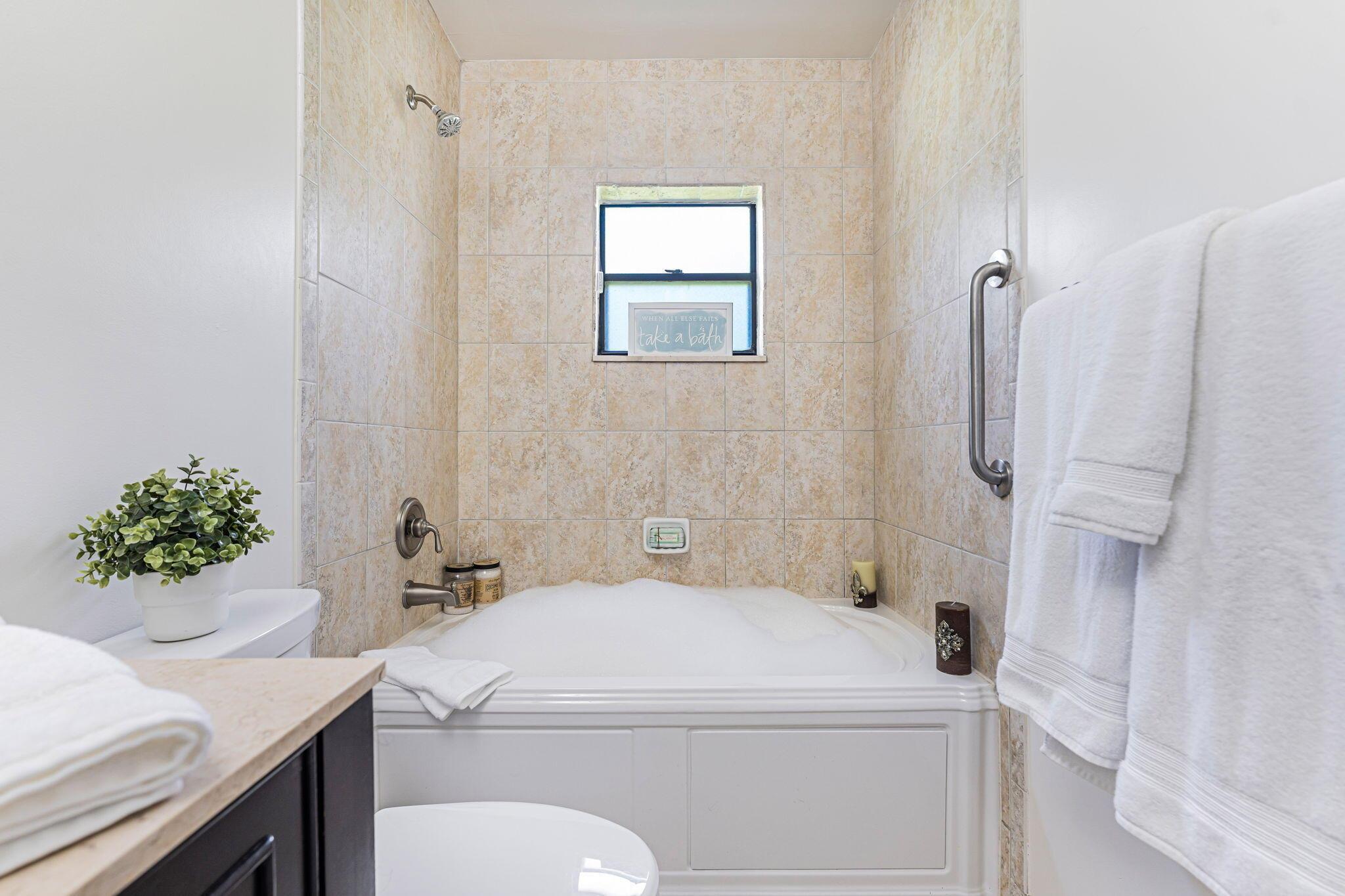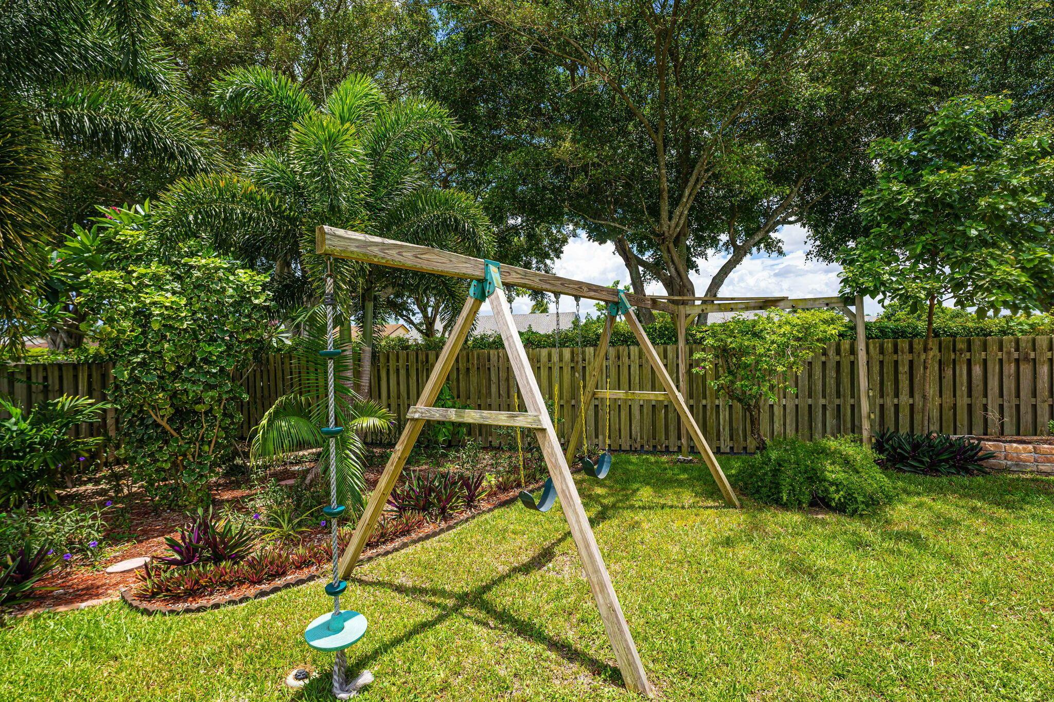 Welcome home... Your 4/2 Tropical Paradise awaits with 2-car garage and spacious driveway, oversized fenced backyard, big pool 18x34 heated pool with spa, covered screened patio and lush landscaping with mango, avocado, jackfruit and banana trees. Quiet Cul-De-Sac. Let your kids enjoy the swing set while you relax by the fire pit in this huge backyard. Freshly painted inside and outside. Remodeled deck with covered seating area. New Top of line Kitchen Aid Stainless Steel appliances. New High-End Washer and Dryer. Porcelain tile throughout the house. Never run out of hot water with the tankless water heater which is a plus for your jacuzzi in the guest bathroom. Newly remodeled community courts, play area, heated pool and clubhouse. Southwind Lakes Golf Course nearby.