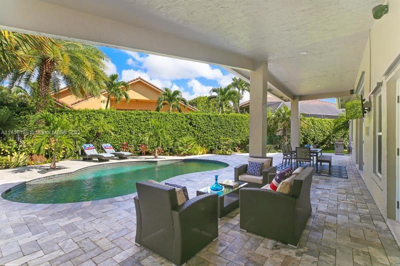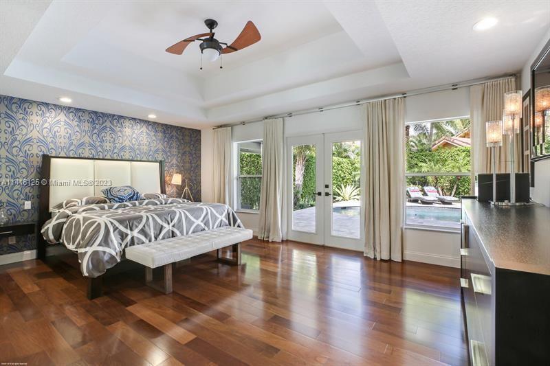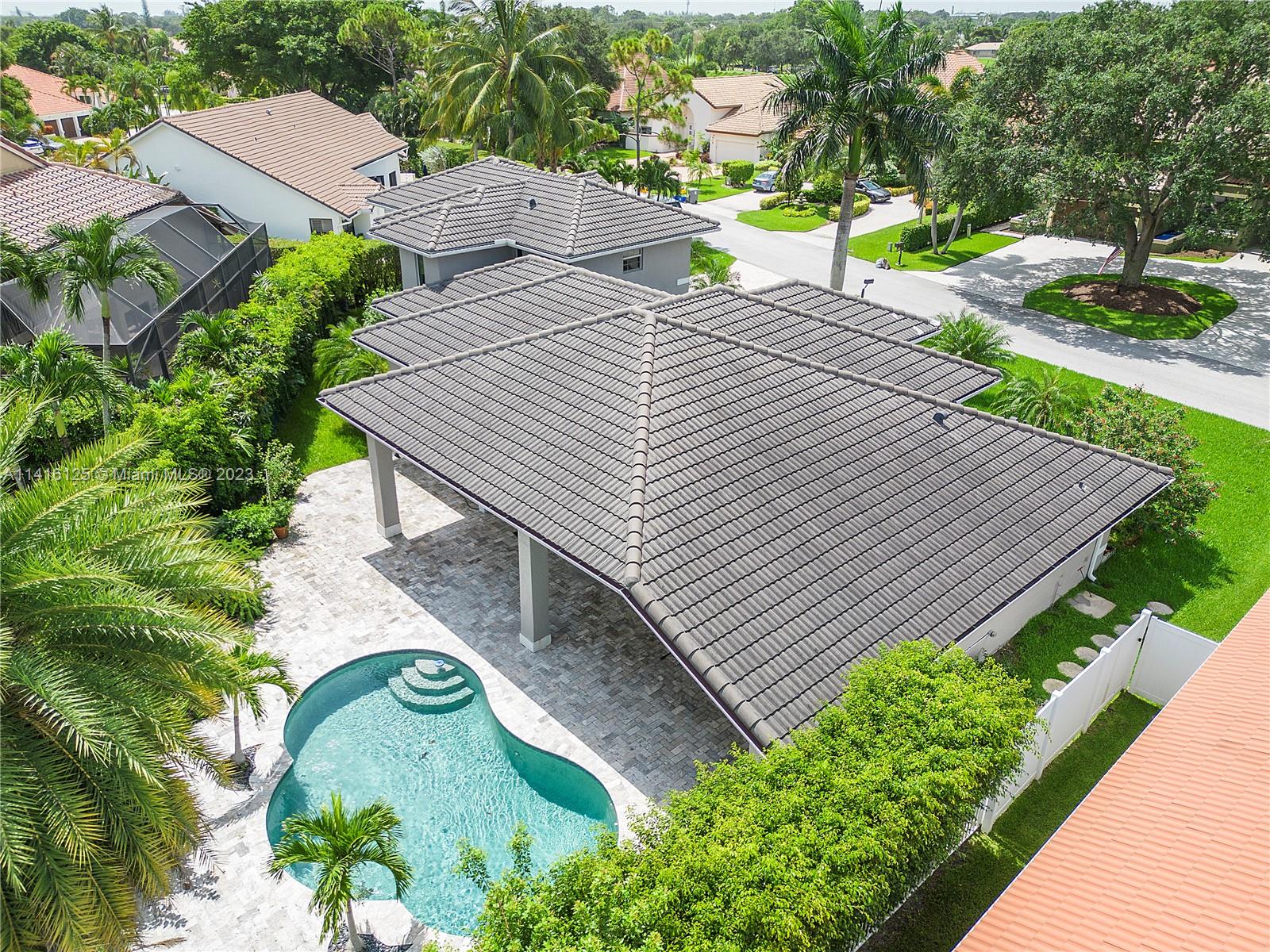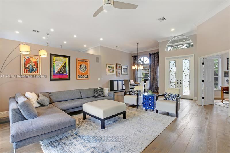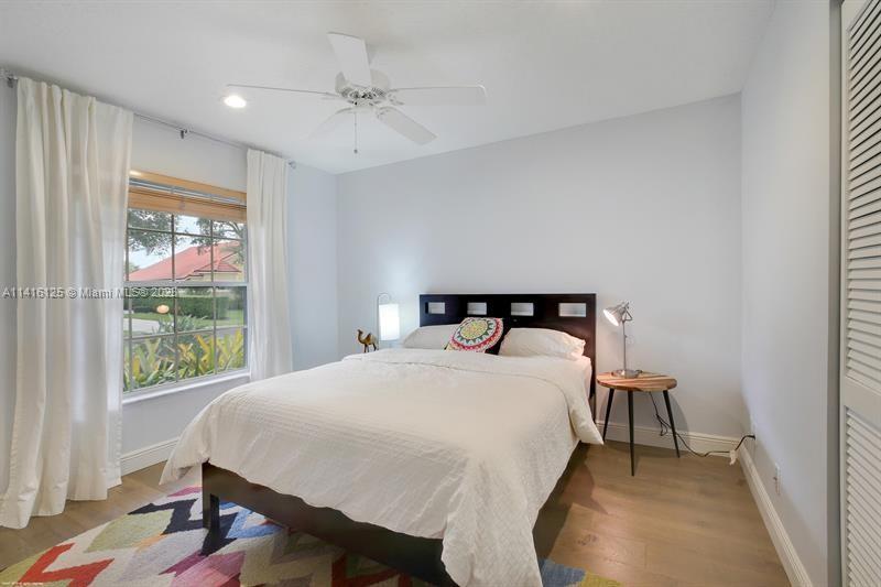 Warm modern, rarely available updated Move-in Ready! 6 bedroom, 4 bath + bonus room home with oversized pool/patio on a lushly landscaped lot in the exclusive gated community of Buena Vista/Cloisters. 3-way split floor plan with master bedroom downstairs. New roof in 2020, gutters, Fresh interior & exterior paint in 2023, newer A/C in 2017 (downstairs) and 2016 (upstairs). Upgrades include oak barn wood floors, LED high hats, white quartz countertops, stainless Samsung appliances, a dual-zone full-size wine cooler, designer fixtures, custom window treatments, and a travertine patio pool deck. Plenty of storage and closet space. 3 car garage and oversized brick paved driveway. Minutes to Boca beaches, walk/bike ride to shops and restaurants. All AAA Schools. LOW HOA! NO Carpet in House!