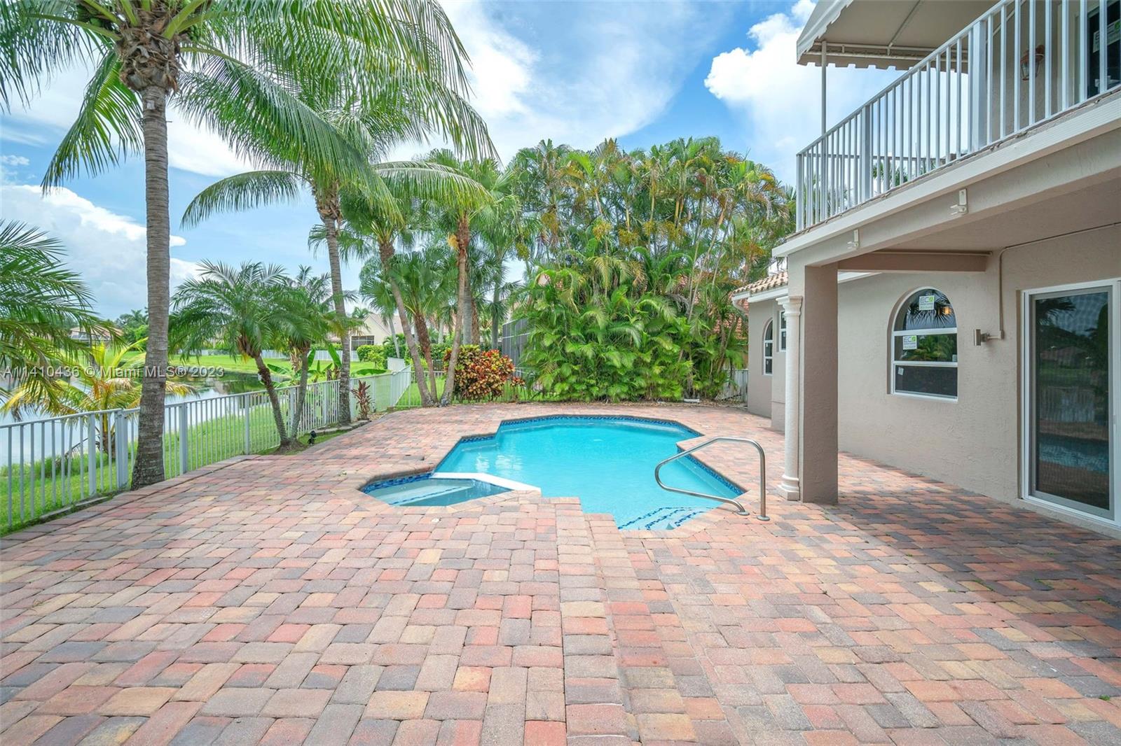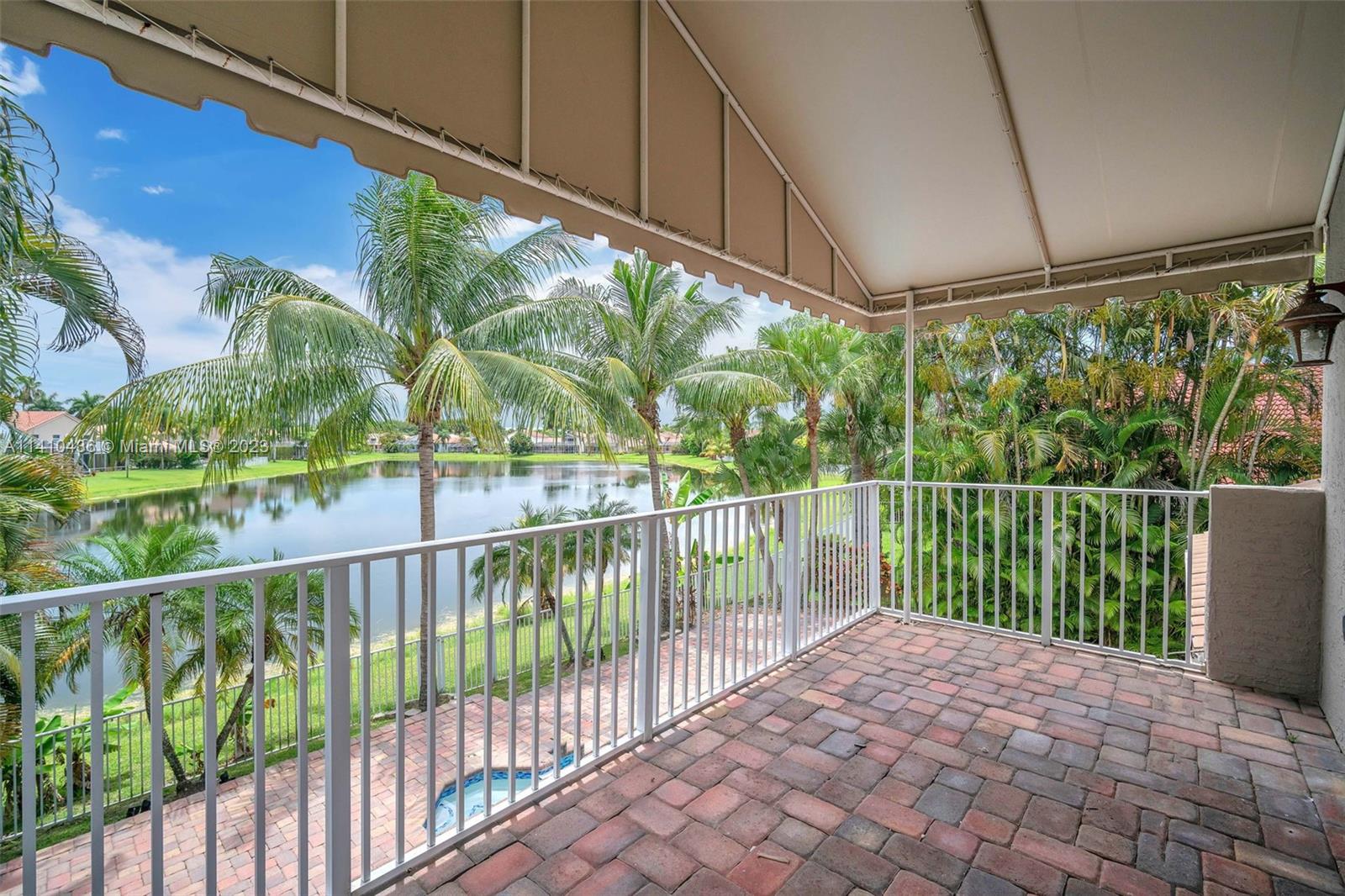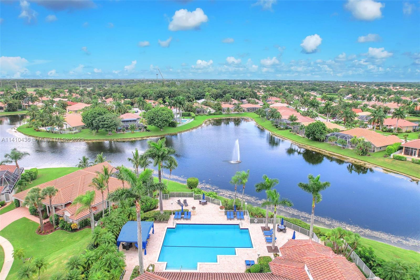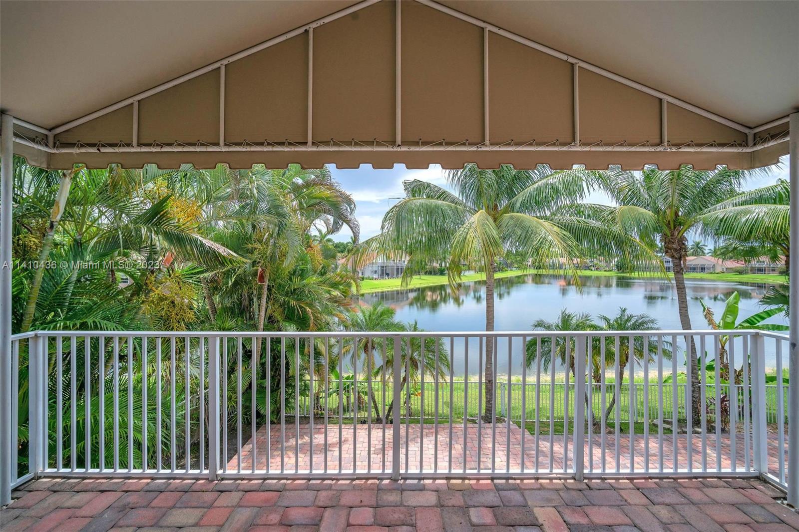 Stunning lakefront pool home w/ open floor plan & vaulted ceilings. 1 bedroom, home theater & full bathroom downstairs. Upstairs is where you'll find the master + 2 bedrooms & a bathroom. Chef's dream kitchen with views of pool & lake. Enjoy your outdoor kitchen poolside while warming up in the spa overlooking the lake. Recent UpGrades: New 20 Seer AC, New Impact Windows & Doors, New Countertops/backsplash in kitchen, new diamond Brite & pool heater, LED lighting, all new paint inside & out, new floors, new 2nd fridge in garage, new bathroom vanities, new electrical outlets, 4 Google cams, New awning over upstairs patio. A+ rated schools, Community Clubhouse, Fitness Center, Pool, Pickleball & Tennis. 24Hr guard gated community close to restaurants, shopping, entertainment and more!!