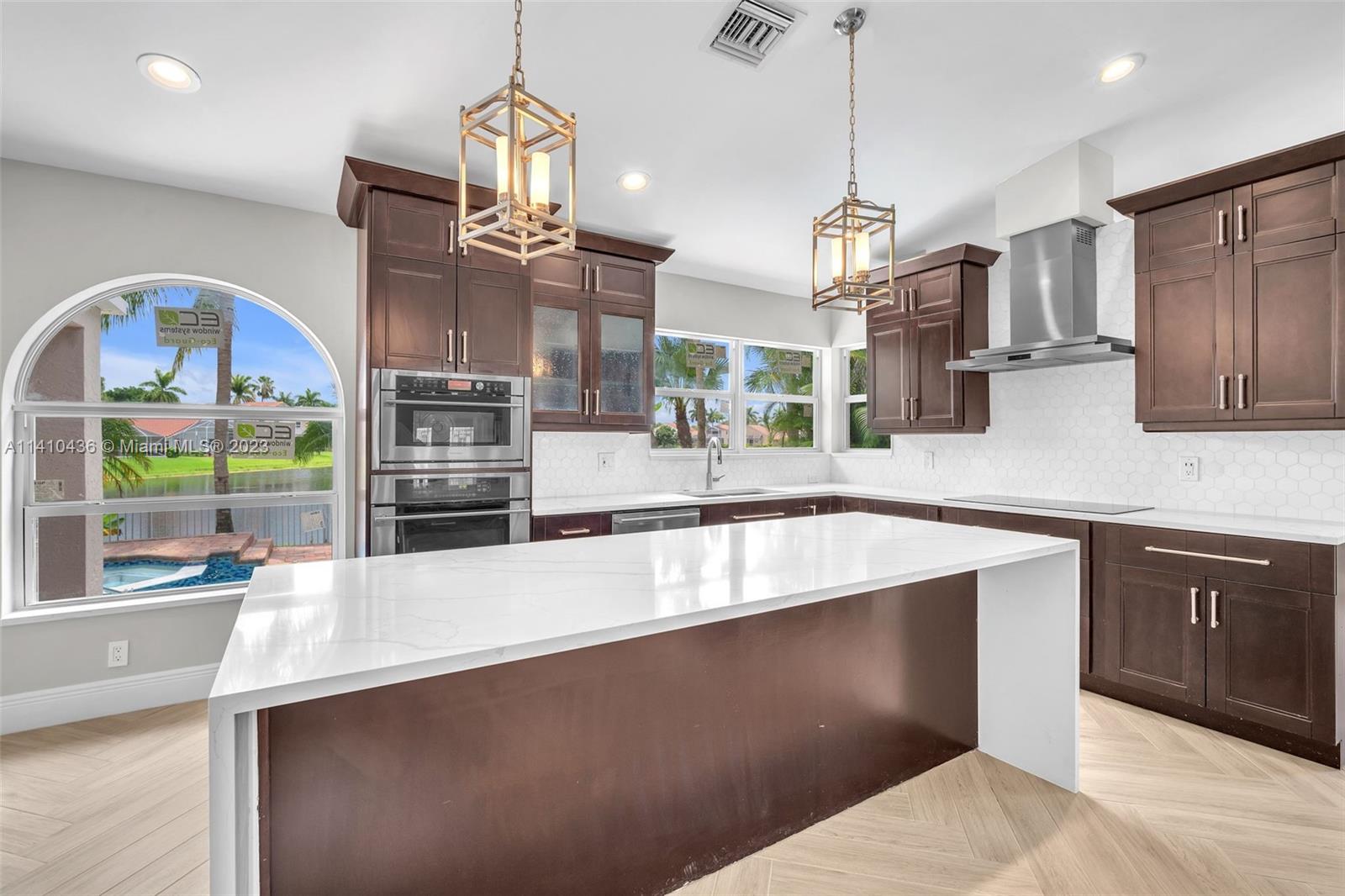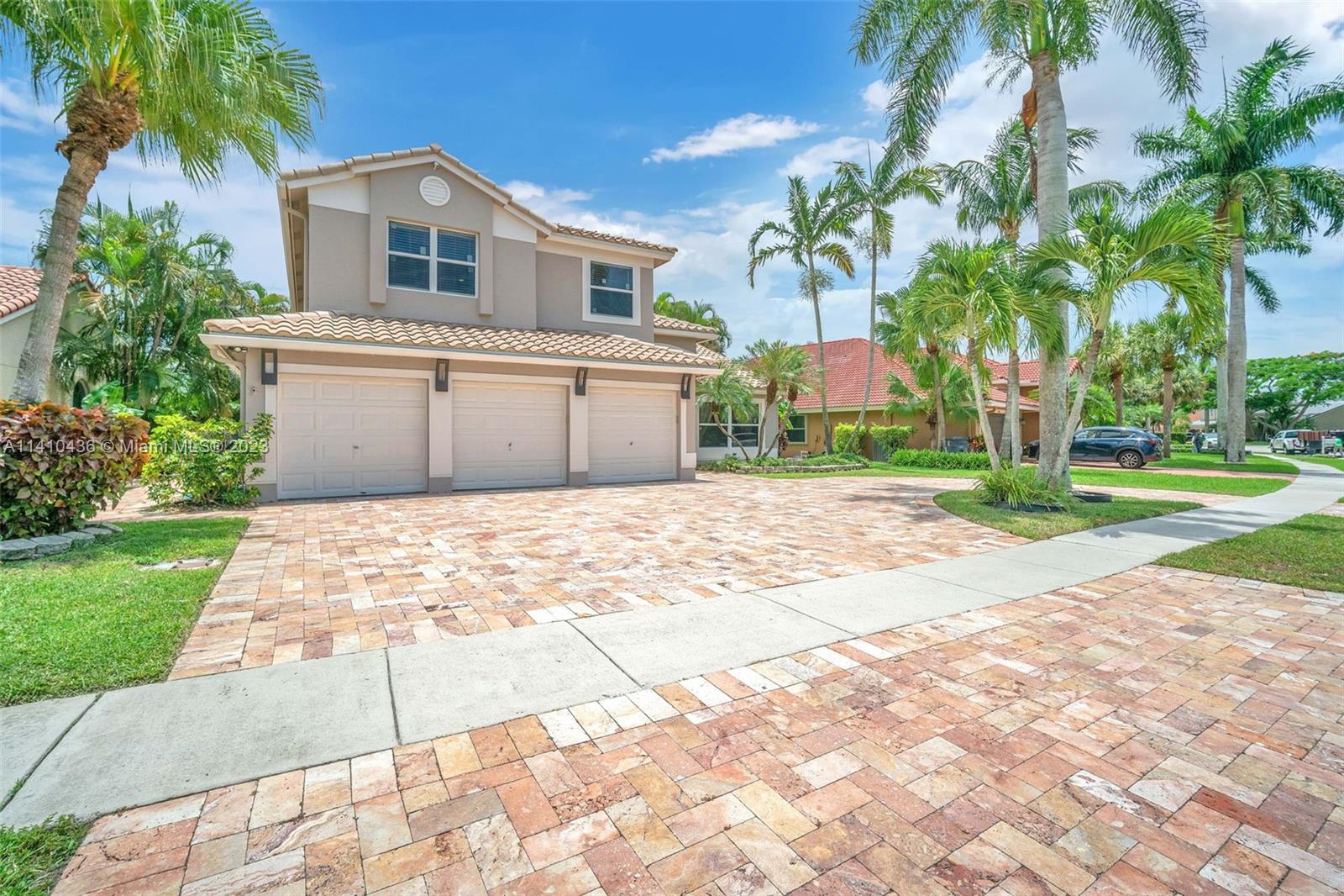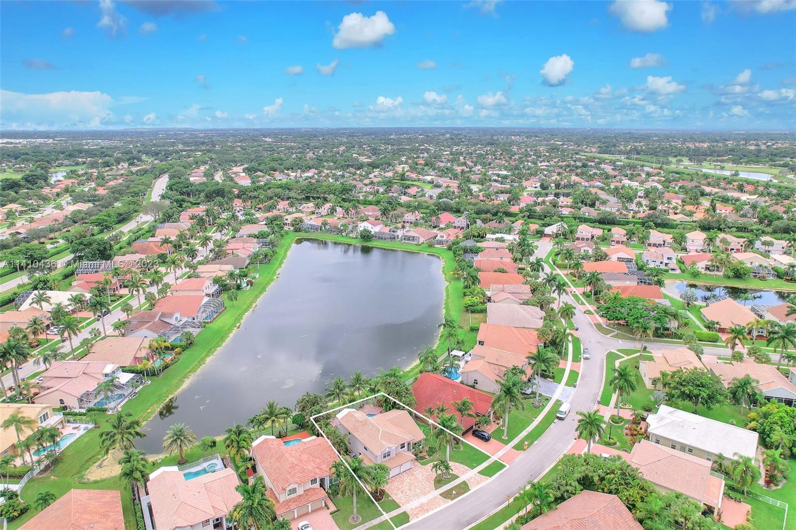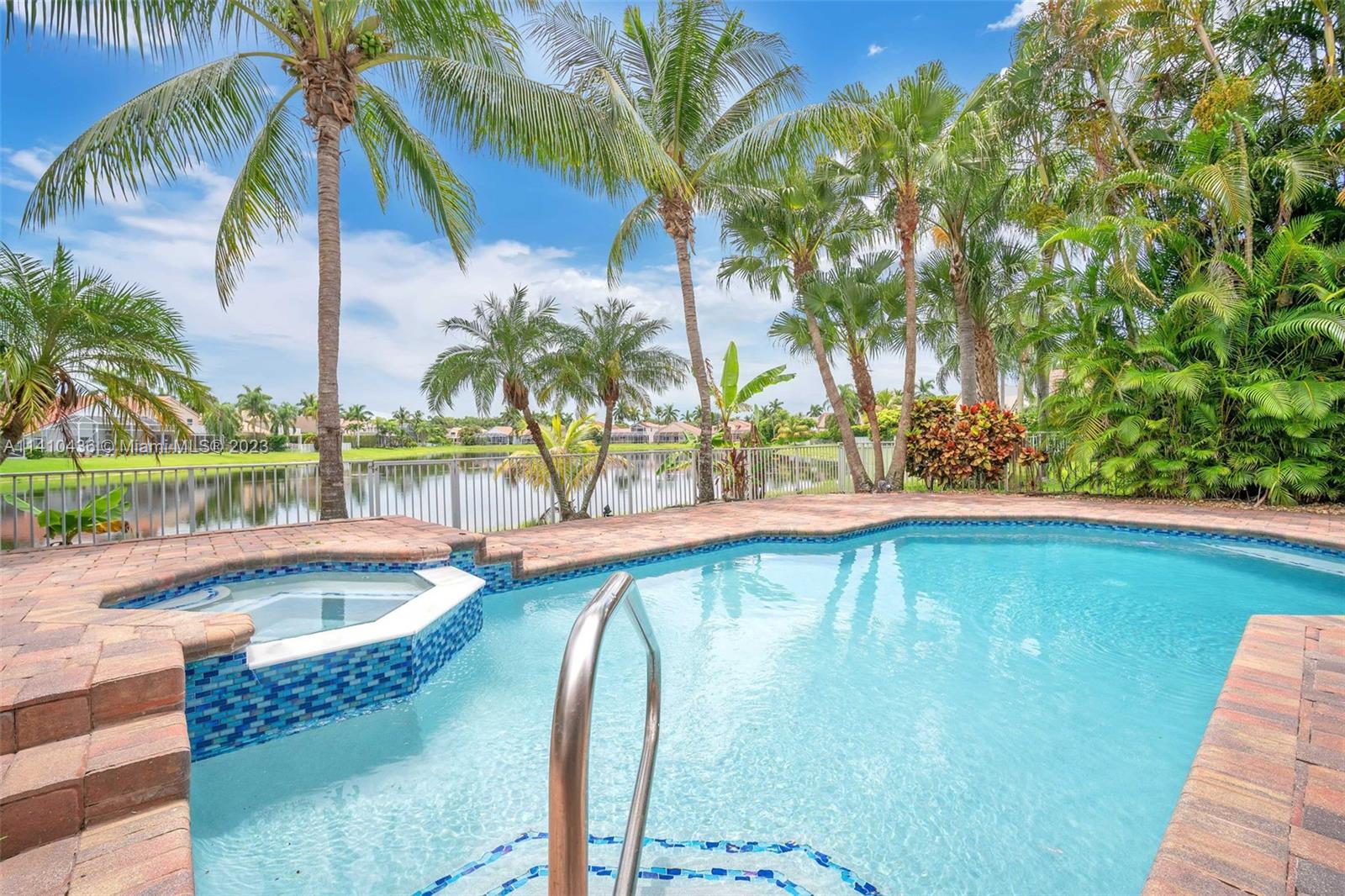 Stunning lakefront pool home w/ open floor plan & vaulted ceilings. 1 bedroom, home theater & full bathroom downstairs. Upstairs is where you'll find the master + 2 bedrooms & a bathroom. Chef's dream kitchen with views of pool & lake. Enjoy your outdoor kitchen poolside while warming up in the spa overlooking the lake. Recent UpGrades: New 20 Seer AC, New Impact Windows & Doors, New Countertops/backsplash in kitchen, new diamond Brite & pool heater, LED lighting, all new paint inside & out, new floors, new 2nd fridge in garage, new bathroom vanities, new electrical outlets, 4 Google cams, New awning over upstairs patio. A+ rated schools, Community Clubhouse, Fitness Center, Pool, Pickleball & Tennis. 24Hr guard gated community close to restaurants, shopping, entertainment and more!!