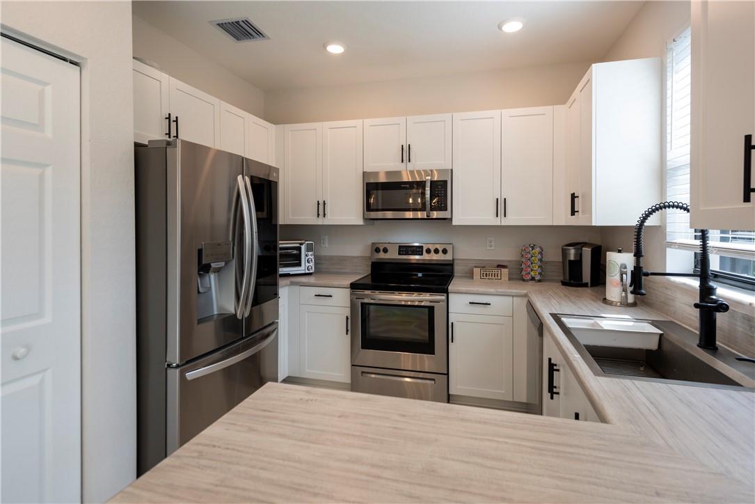 Substantially Remodeled 2-BED + DEN (2019) Townhome, Newly Installed Luxury Commercial Grade Vinyl Plank Flooring throughout first floor, New 5" Baseboards, LG Thin Q Refrigerator, New Large Kohler Kitchen sink, New Kohler Faucet, All Stainless Appliances, First Floor Half Bath Remodeled, Entire Remodeled Primary Bathroom Modern + Simply Gorgeous! Den Can Be Converted To 3rd Bedroom, New Overhead Storage Racks in Garage, Carrier AC Unit has New UV Light, Accordion Shutters, Wired Floodlight Ring Camera over Garage, Wired Ring Doorbell, Entire Home Alarm Ring System, Wired Smart Home with Wireless Router Extenders, Back Patio Paver Extension adds to your outdoor living area! Community Pool, Playground, Lake + Walking Trail! Just West of Turnpike + Minutes to highways, Airport + shopping!