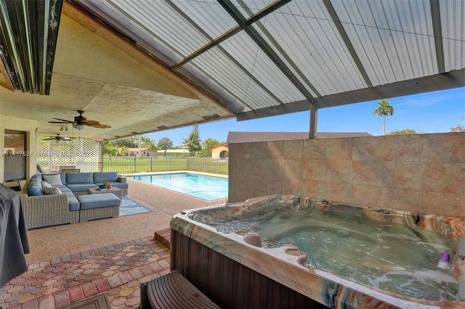 NO HOA!! Welcome home-this Coral Springs Country Club subdivision spacious home is situated on an oversized lot (almost 1/2 acre- .41 acre) Install a 6ft privacy fence & enjoy! Complete w/pool & secluded jacuzzi. Paver driveway allowing ample parking in addition to the 2 car garage. Located at the end of the cul de sac minutes from everything you need in Coral Springs-expressways, restaurants, parks, Sportsplex, Publix, schools, FLA Live Arena. New electrical panel 2023. New water heater 2022. Each of the 4 bedrooms has large walk in closets. There's a newly remodeled shower in the master bath along with a roman tub to relax all your stress & cares away in. Sky lights. Vaulted ceilings. Plenty of room for entertaining, family and making this a lifetime home. Did I mention NO HOA!
