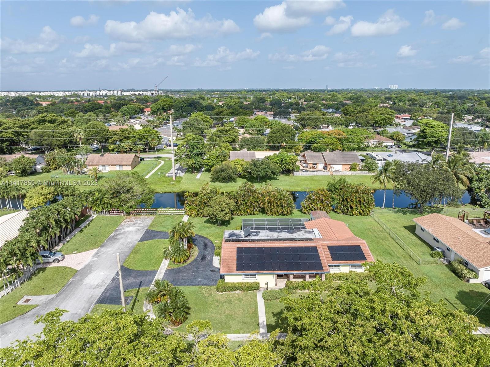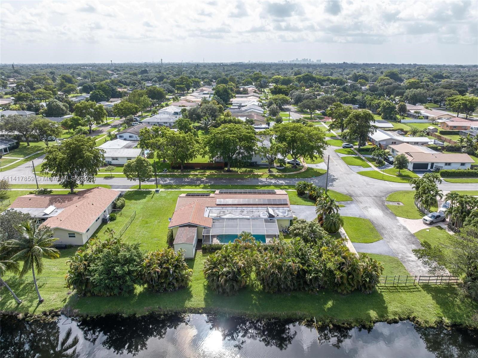 Welcome to your dream home in South Florida! This spacious single-family residence features 4 bedrooms, 2 bathrooms, 2,143 sqft of living space, and a 2 car garage. Enjoy the tranquil canal waterfront views from your own backyard, complete with a pool. Updated kitchen boasts granite countertops and stainless steel appliances, while the updated cabana-style bathrooms lead out to the patio/pool area. With a new roof, newer A/C, accordion shutters, a hurricane-rated garage door, and solar panels, this home is both secure and energy-efficient. The 17,809 sqft lot offers privacy and serenity in a quiet neighborhood and has space for boat or RV. Conveniently located near shopping, dining, and entertainment. Walking distance to Liberty Tree Park. Don't miss out on this incredible opportunity!
