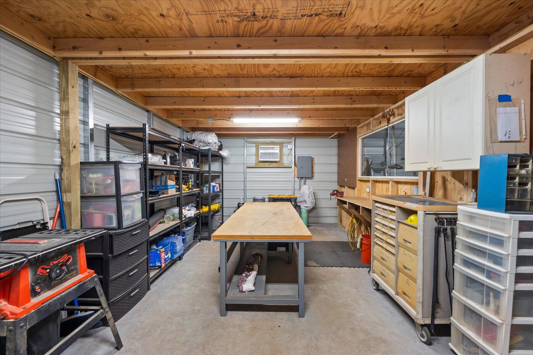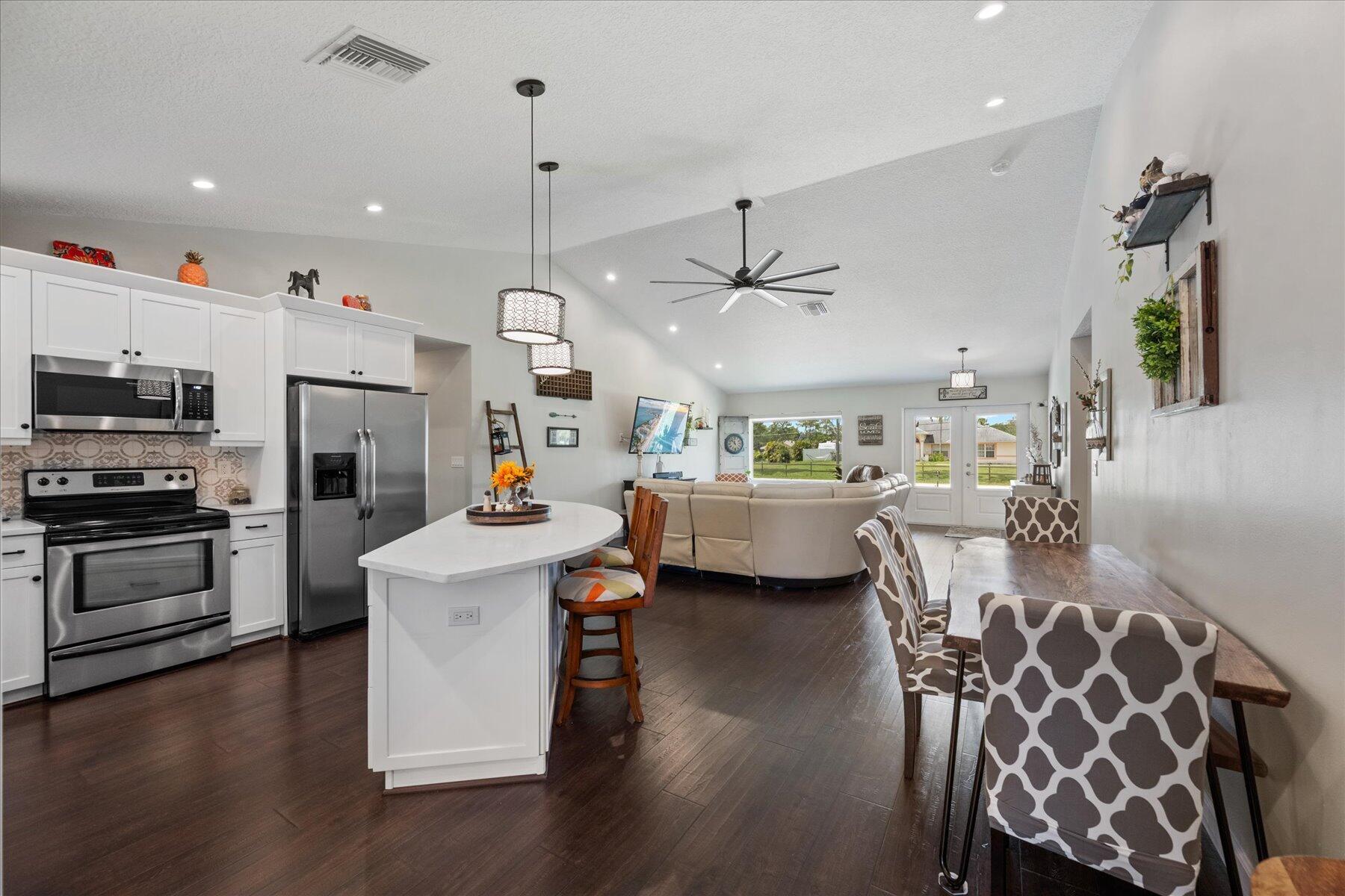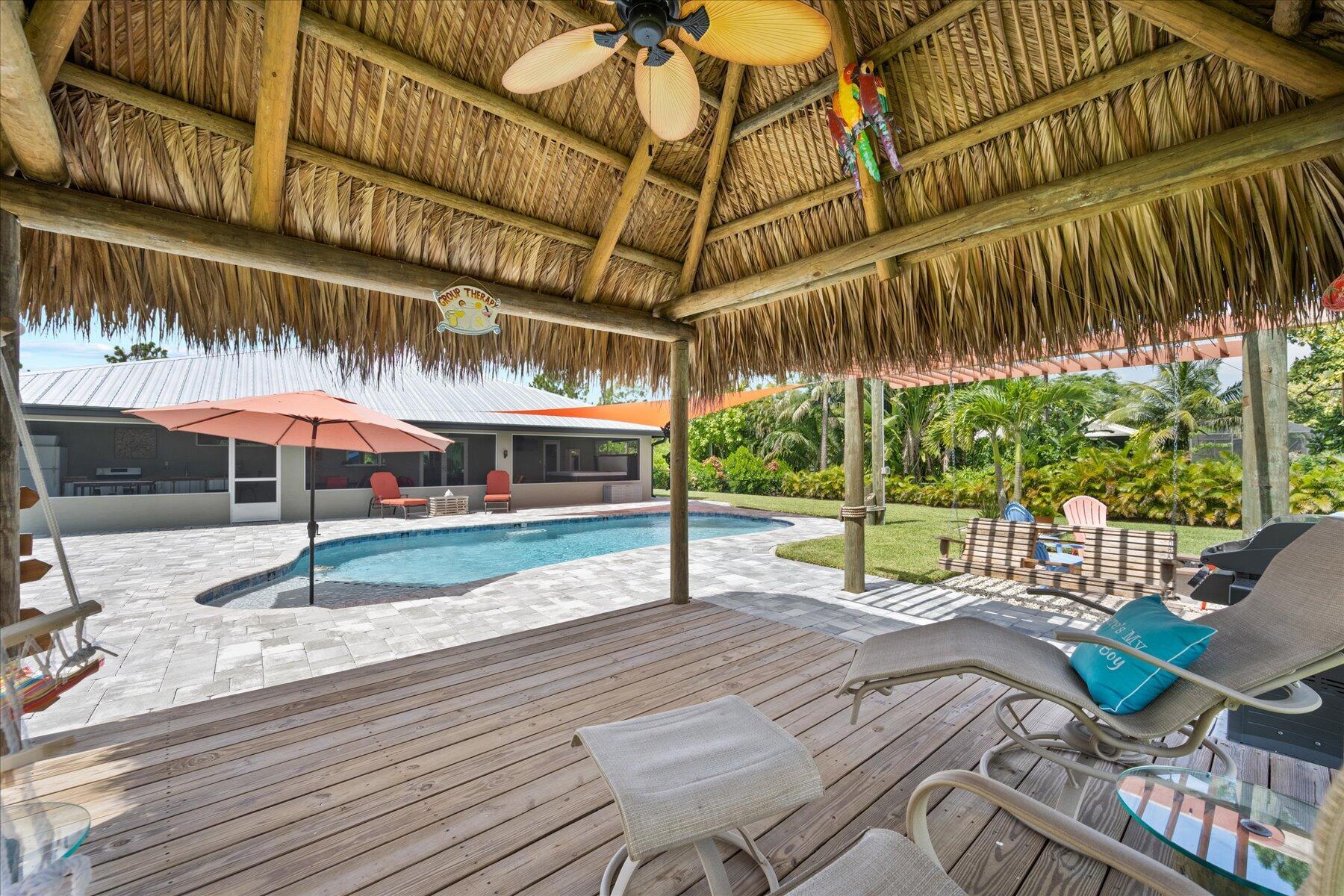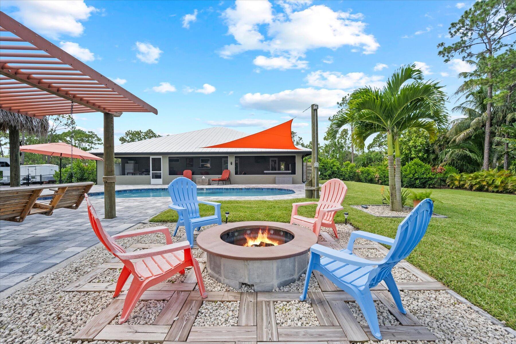 Beautifully Customized and lovingly maintained home in the heart of the acreage with no HOA! Bring your boat, RV and all your toys to this slice of paradise. This gem has 2 bedrooms, a den with built in murphy bed, 2 bathrooms, and an outdoor shower. The current owners tailored this CBS home in 2019 with stainless steel appliances, luxury flooring, handmade vanities, metal roof, impact windows & doors, wired security with exterior cameras, and many more you have to see in person! The backyard is truly a tropical oasis, with a salt water pool, 5 person hot tub, outdoor kitchen, and bar on a screened in 600sqft patio, you can entertain year round. This 1.15 acre lot has a chain link enclosed fence and also houses a 1200 sq ft partially air conditioned metal shop with electricity & Water.