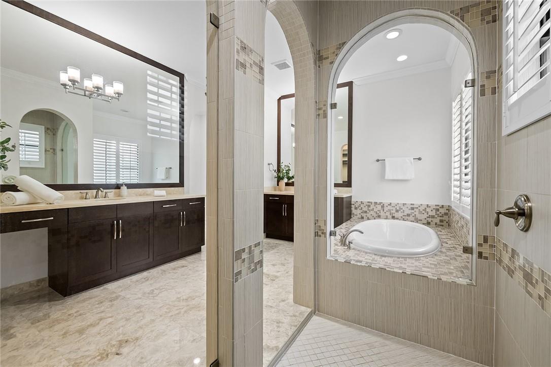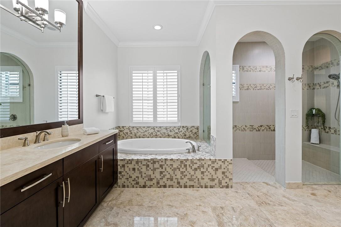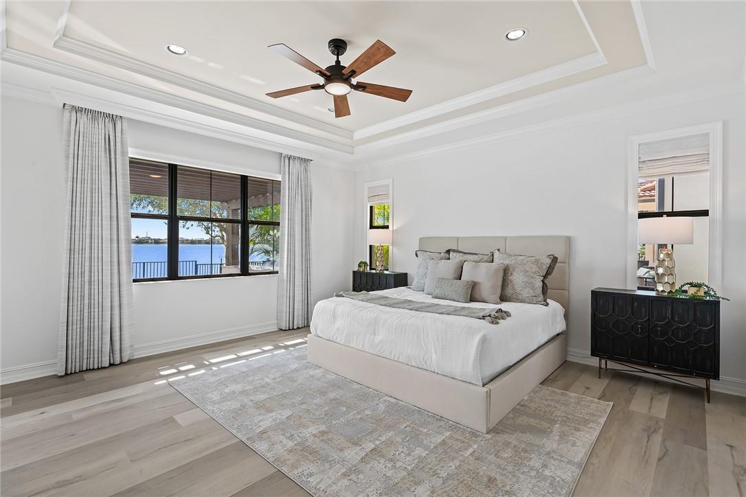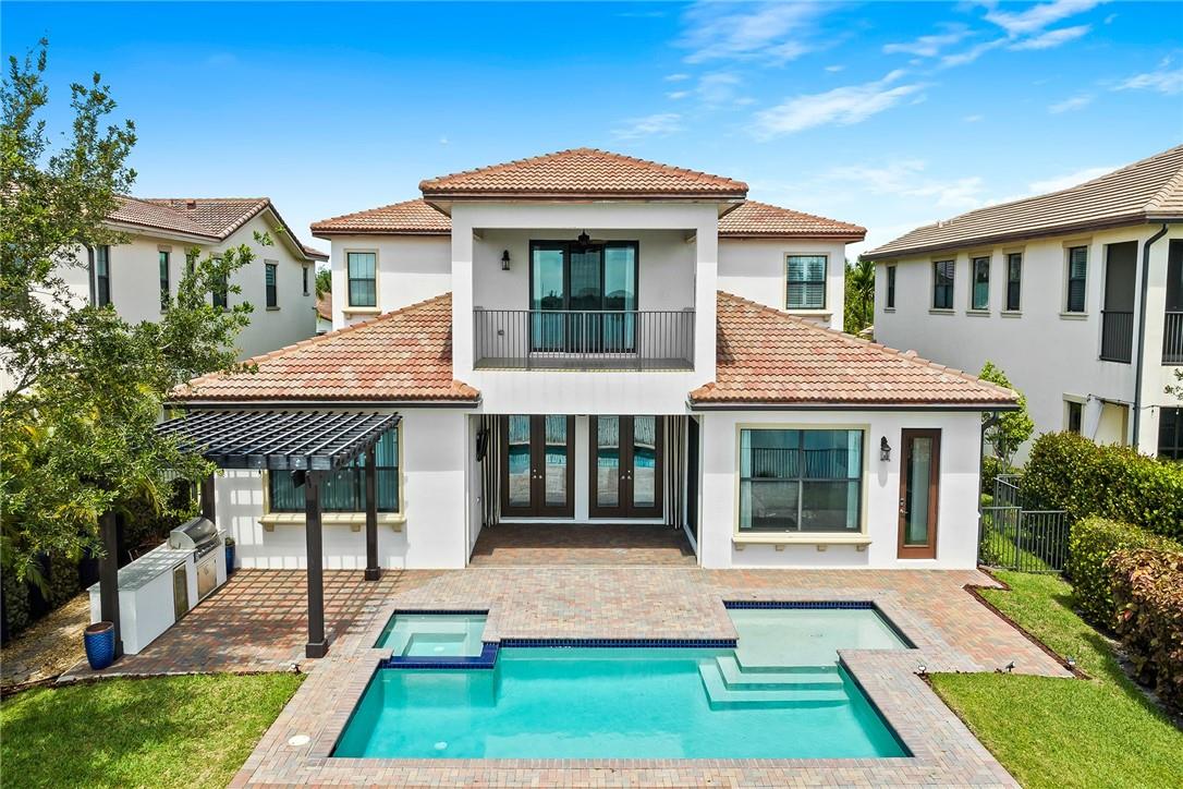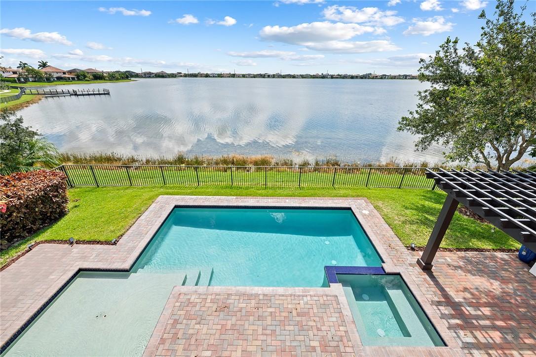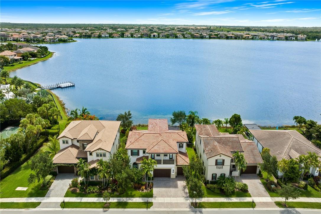 Exquisitely designed five bedroom + office, four and a half bathroom custom Bellingham model with spectacular wide lake views. With over $200,000 in upgrades featuring marble and wood flooring, upstairs loft/den and huge bonus room/media room with wetbar, oversized balcony and spectacular lake views. This light and airy home includes a gourmet kitchen with quartz countertops and gas cooking, a formal dining room, an informal dining area and sunlit living room and spaces. Primary bedroom with wooden flooring, motorized window treatments, updated bath and custom double walk-in closets. For those that love to entertain, enjoy your backyard with pergola, phantom shade, summer kitchen and heated pool. Steps away from the fabulous clubhouse and Watercrest amenities! 3 car garage. Pool fence.