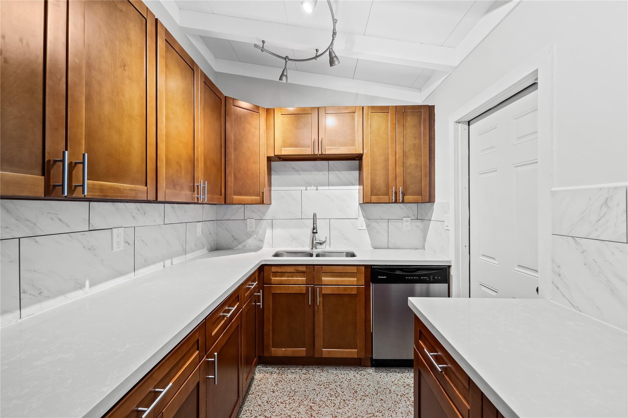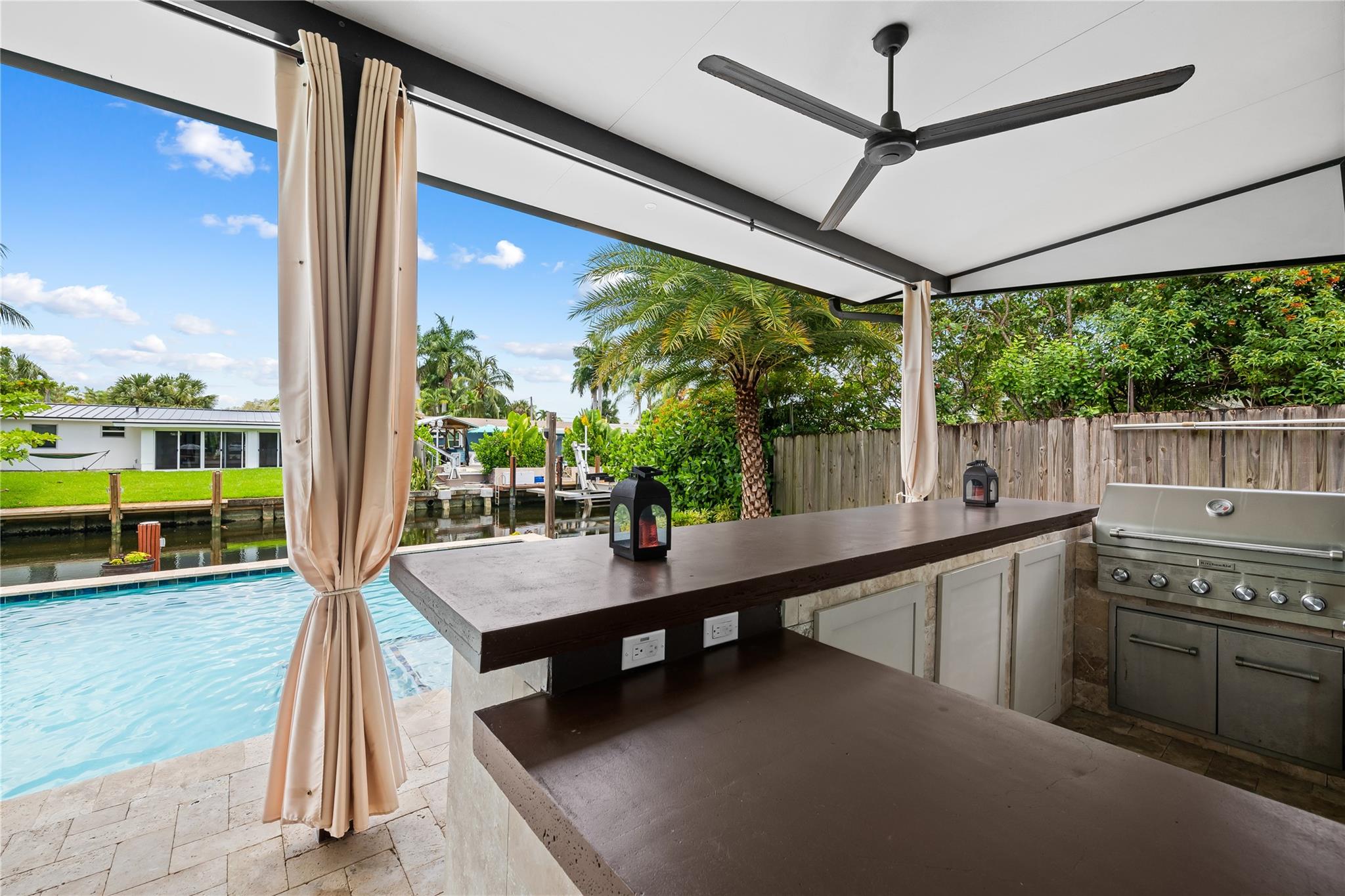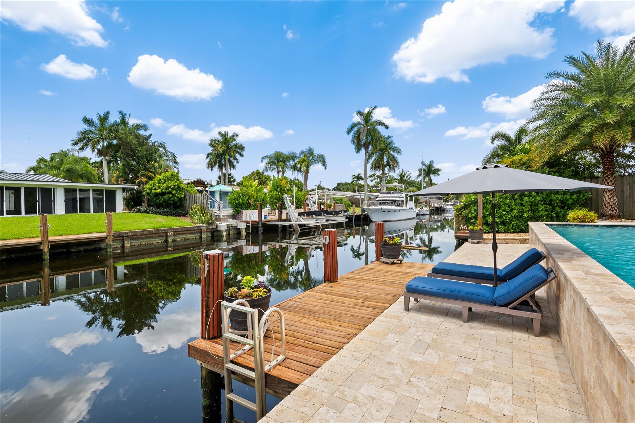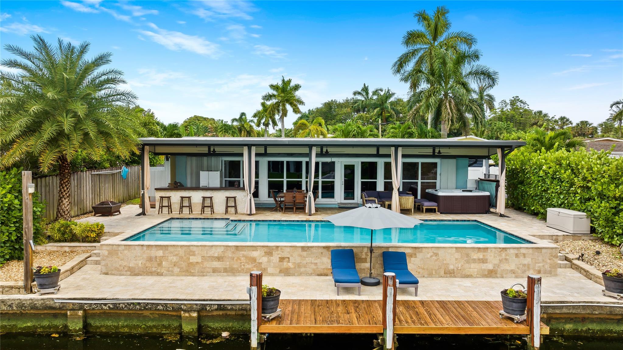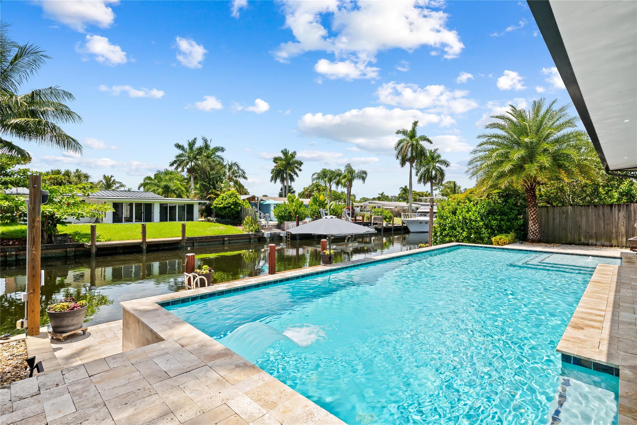 YOUR 65FT WATERFRONT 3BR | 2BA POOL HOME awaits for you! Your home features an extended driveway great for Boats, and RV'S. As you walk inside the grand foyer entry, you will be greeted with an Open Floor Plan great for entertaining. Updated Kitchen features Quartz Countertops and stainless steel appliances. Vaulted Ceilings and terrazzo floors throughout your home! Spacious Master Bedroom bath with Tub and Shower. The private backyard is a retreat with modern travertine, beautiful 20,000 Gallon Salt Water Pool, Separate Hot Tub, outdoor shower and a kitchen. A 65ft-Sea Wall accompanied by a 20ft-dock and option to extend the dock. Added water and 30 amp shore power for a boat completes this waterfront paradise!