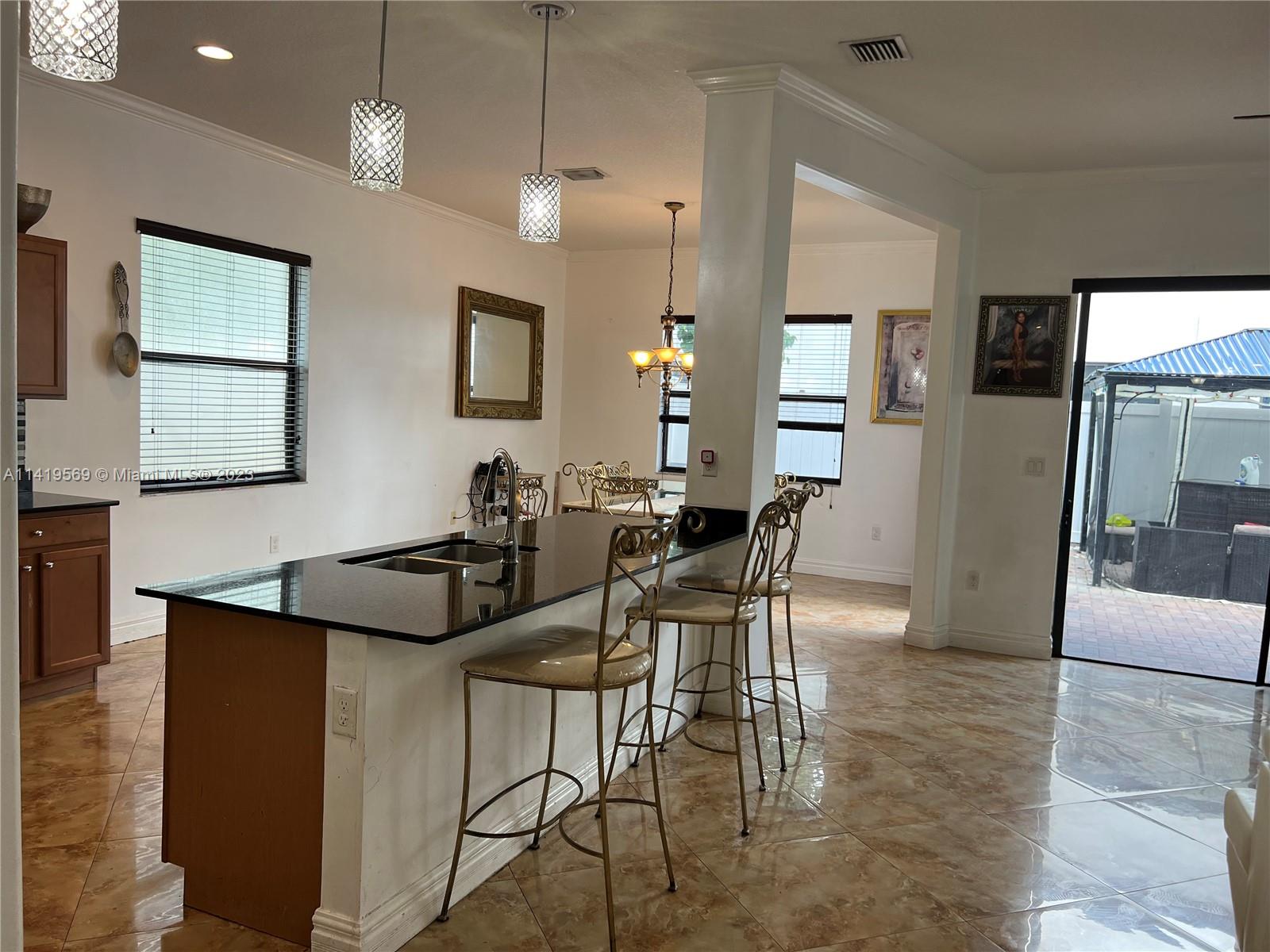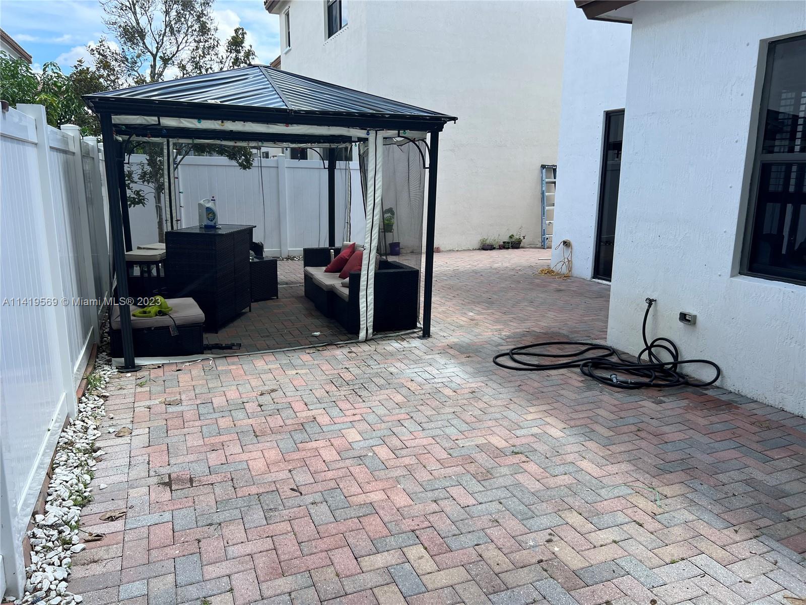 Corner home, 2 story open concept with a 1 car garage. This property features 3 bedrooms, 2 bathrooms, laminate wood flooring on the 2nd floor and 1/2 bathroom on the 1st floor. The first floor is totally open so you can entertain, gather with your family and enjoy there company. It has stainless steel appliances, tile throughout plus 5" crown moldings. The backyard is fenced and paved throughout so you can enjoy your BBQ's. Community features pool, cabana house, children play area, gated community, 24 hr. security patrol... EXTRA room (Garage converted to a bedroom) Come and call this your home!