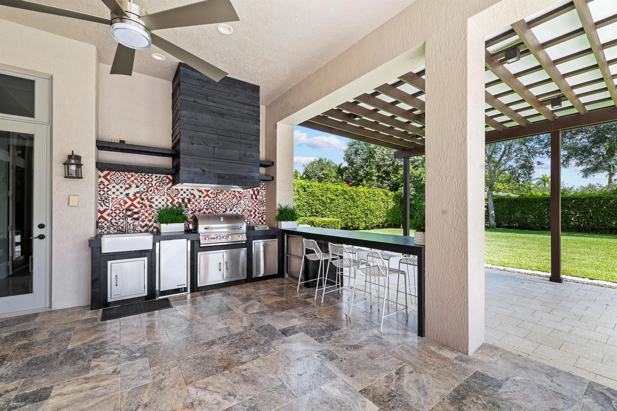 Welcome to Saddle Club Estates, a prestigious community located in the heart of Weston, Florida. Nestled on a 0.69-acre lot, this luxury estate offers an elegant living experience. As you step inside this magnificent home, you'll be greeted by 16 foot coffered ceilings. The spacious & inviting foyer, with exquisite marble floors that exude sophistication & opulence. The open floor plan flows into the main living areas, providing an ideal space for entertaining. The estate boasts five generously sized bedrooms, featuring its own en suite bathrooms, ensuring privacy & comfort. The primary bedroom is a sanctuary, with Hickory Pecan wood floors that add warmth & richness to the space. The chef's kitchen is a dream come true, equipped with Miele appliances, custom cabinetry & oversized island.