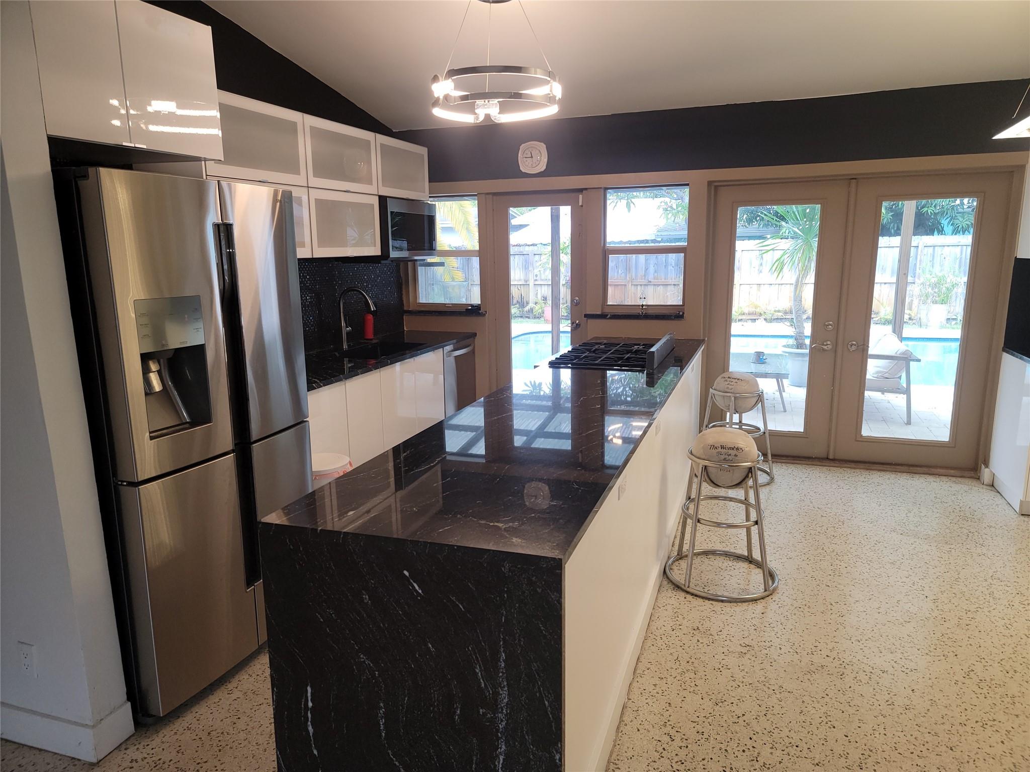 Just a few blocks from Wilton Drive and its world renown entertainment district. Minutes to Beach, FLL, I-95, Downtown FtL,... Walk inside this Mid-Century Modern to airy, open living space with exposed beam vaulted ceiling and view straight through French doors to pool. Substantially renovated in 2018 to include Kitchen w/ 6 burner gas range, new Roof, Travertine pool deck, restored Terrazzo floors, Black-out shades, Wine cooler, Instant Hot Water Heater,... Designed with outdoor / pool entertaining in mind with 2 kitchen pass through windows, dinning room, kitchen and bedroom doorways to covered porch and pool. Large storage/laundry room accessible from carport and dinning room. Gas and charcoal grills, portable generator, shed items, furnishings can convey.