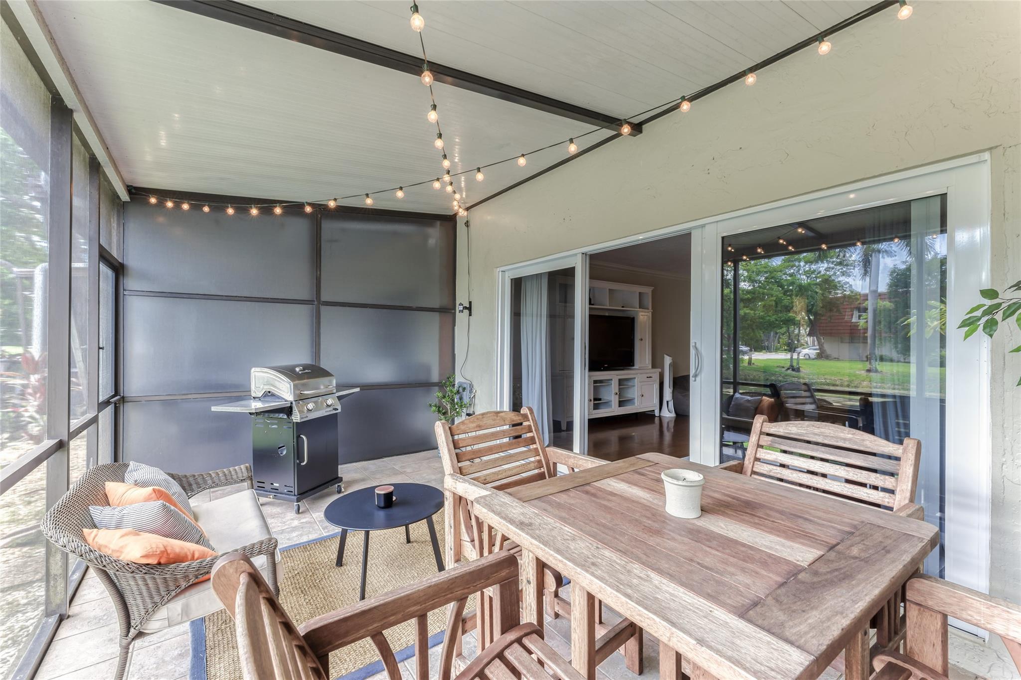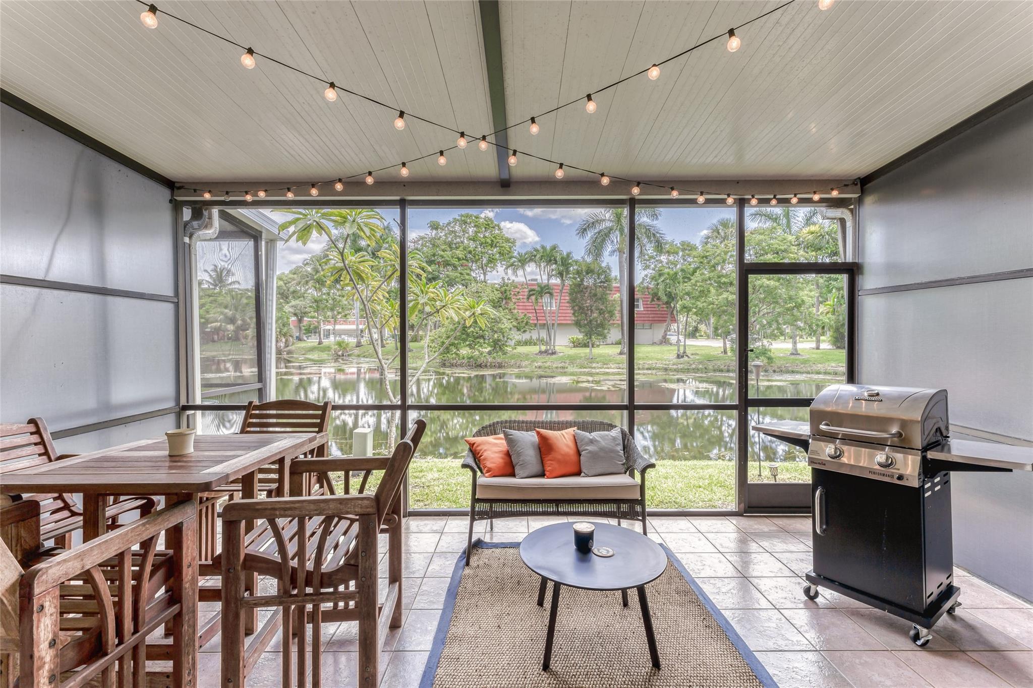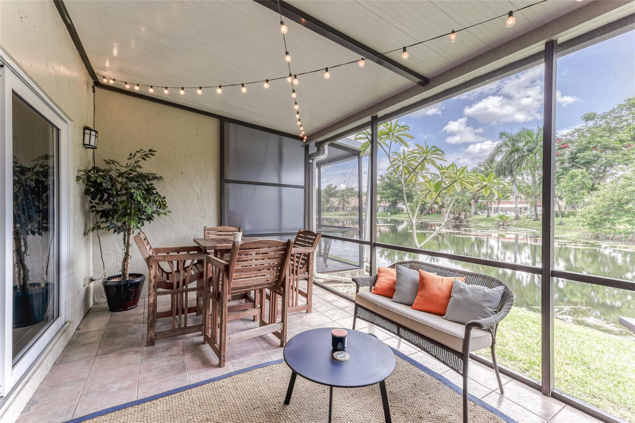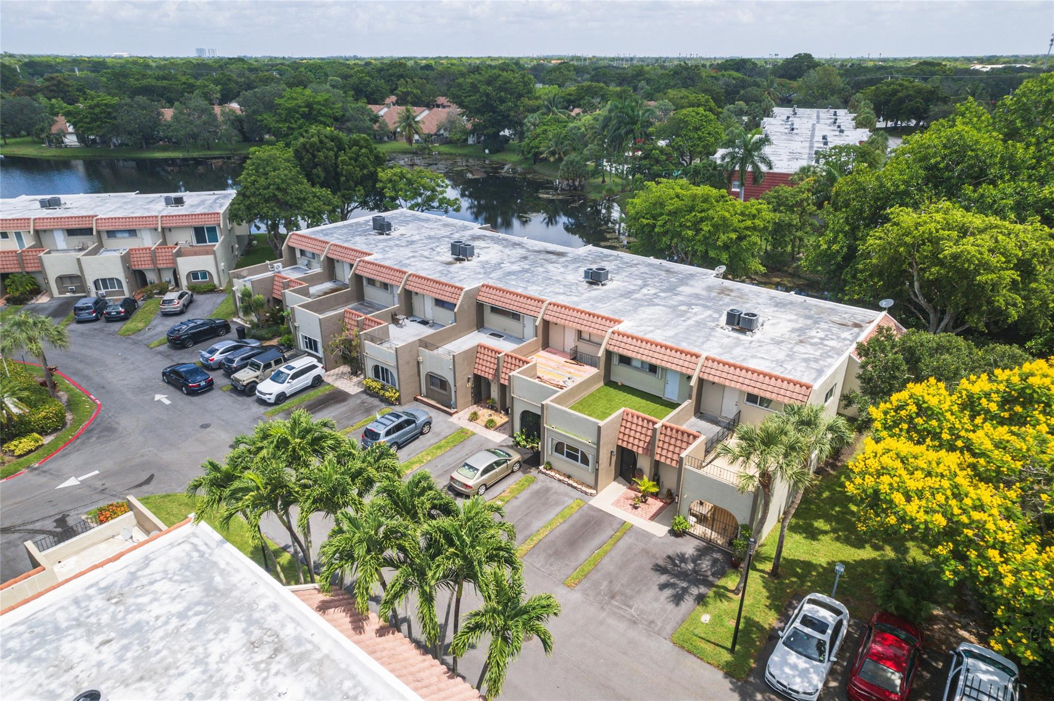 Welcome Home: Introducing a stunning townhouse that offers an idyllic combination of comfort, style, and a picturesque lake view. This spacious townhouse boasts open, updated kitchen/living room concept, beautiful wood floors on the 1st floor and a separate room that can be a dining room, office or converted to a 3rd bedroom. Upstairs has 2 Master Suites with updated bathrooms and a roof top deck off the 2nd bedroom. Sit back and relax in your screened in patio .Great for entertaining. Impact sliding glass door as well as accordion shutters on all windows. New roof installed 2021, AC 2019, exterior paint 2019 and new pavement 2023. Townhouse to be sold partially furnished. Walking distance to Central Park and Jacaranda Country Club. Information believed to be accurate but not warranted.