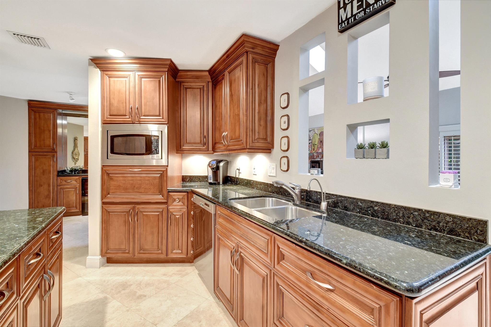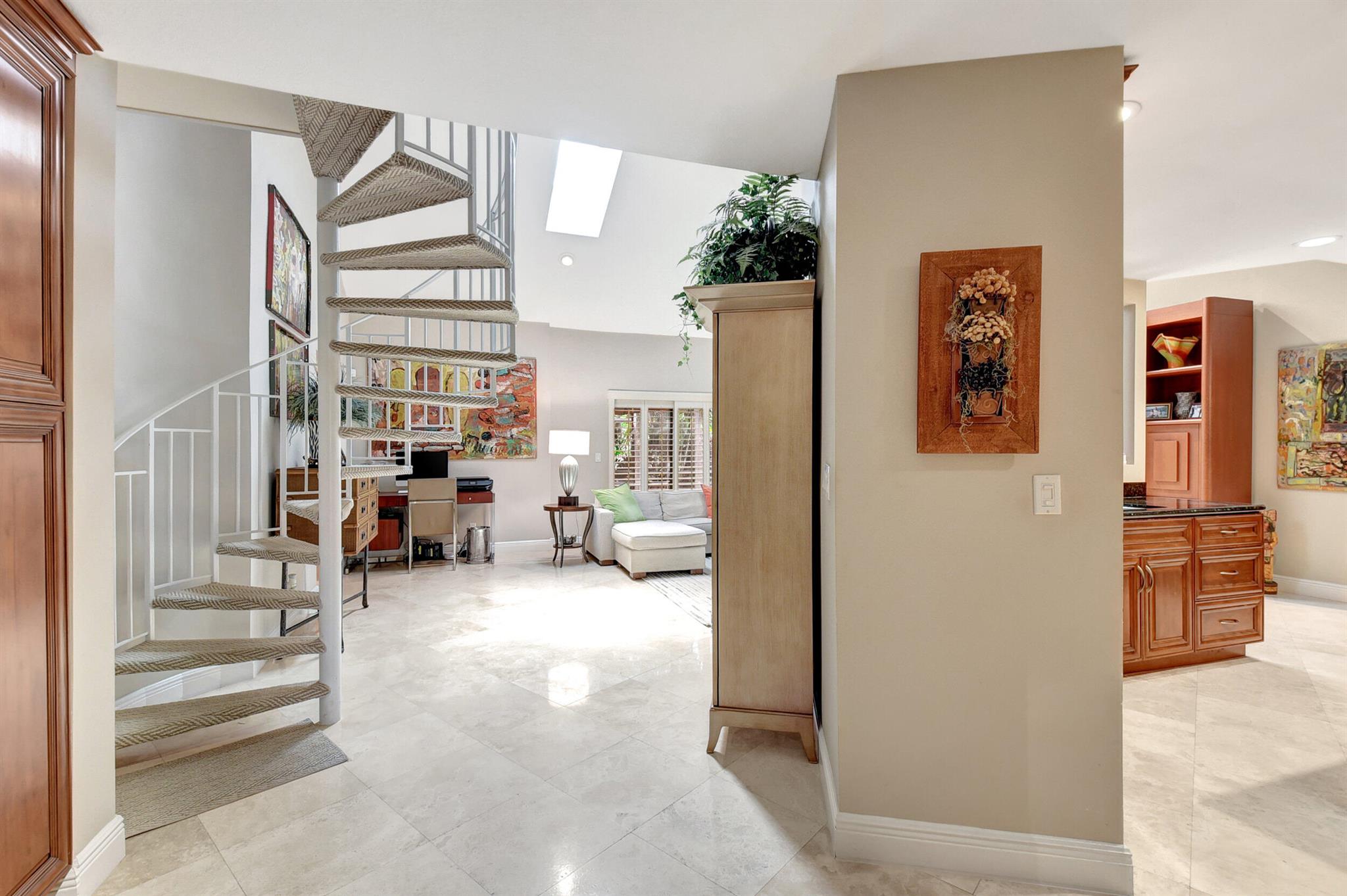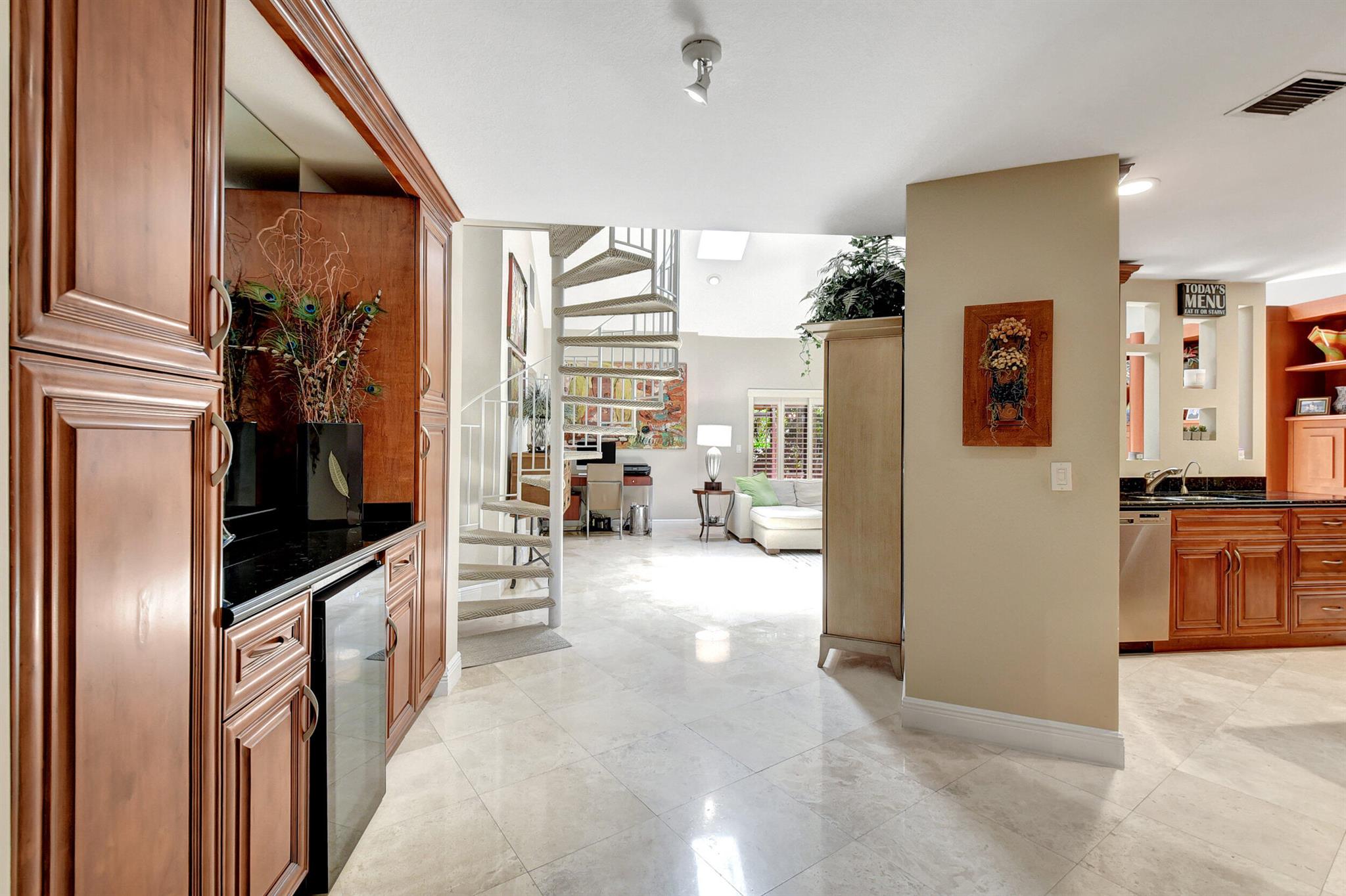 BEAUTIFUL WATERFRONT COMMUNITY IN EAST BOCA RATON WITH DOCKAGE AVAILABLE. DIAGONAL SATURNIA FLOORS THROUGHOUT. CUSTOM GORGEOUS WOOD KITCHEN WITH GRANITE. STAINLESS STEEL APPLIANCES WITH LG FRENCH DOOR REFRIGERATOR LG DISHWASHER. CUSTOM WOOD BUILT IN UNIT LIVINGROOM. ALL BATHROOMS UPDATED. CATHEDRAL CEILING WITH SKY LIGHTS. CUSTOM OUTFITTED CLOSETS. EXTRA LARGE LOFT UPSTAIRS WITH 3RD BEDROOM AND BATHROOM. USEABLE STORAGE ATTIC WITH FULL FLOOR. ALL WINDOWS AND SLIDERS DOWNSTAIRS HURRICANE SHUTTERS.. SCREENED IN BACK PATIO WITH EAST EXPOSURE. DINING ROOM FIXTURE EXCLUDED.