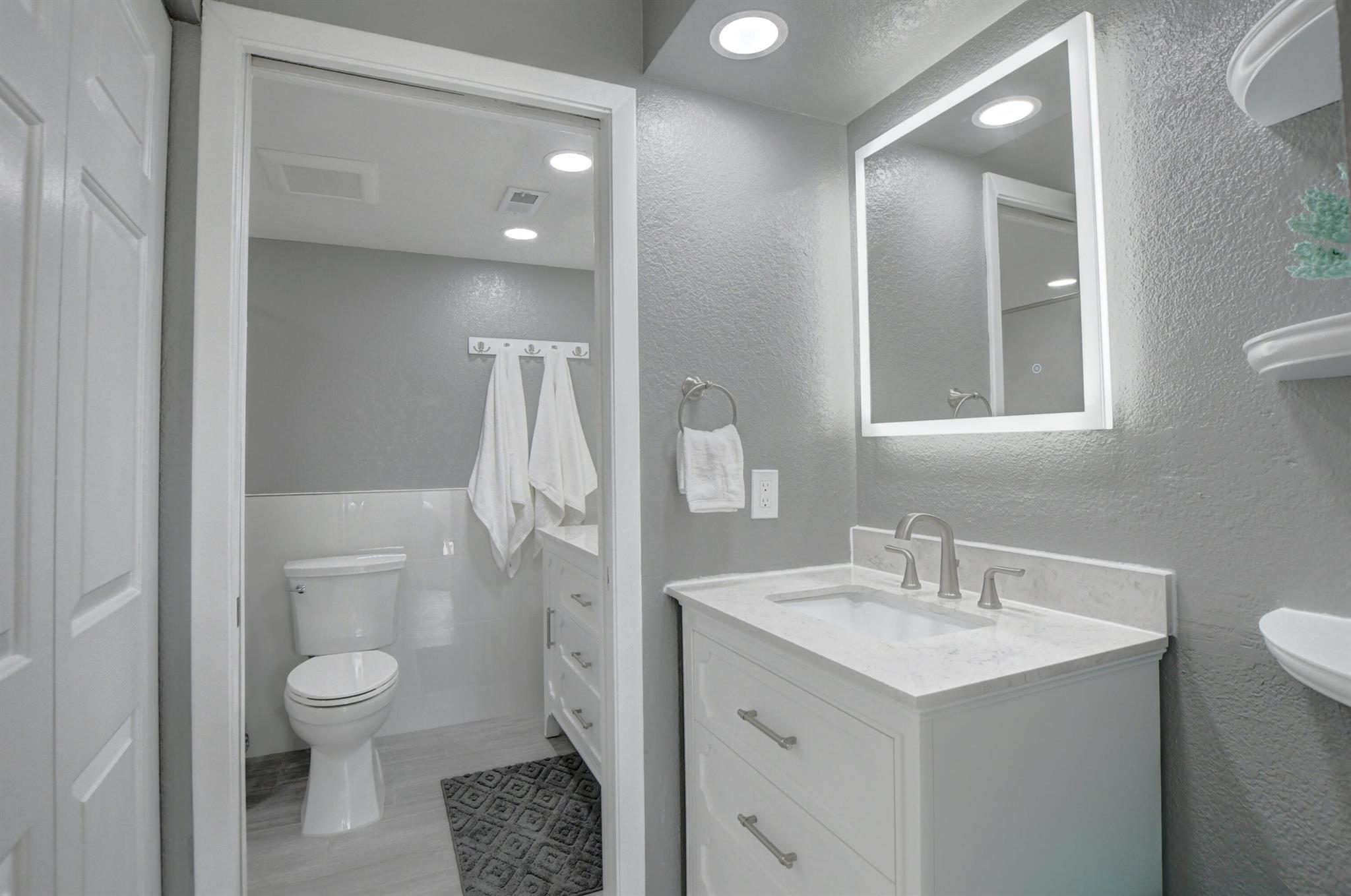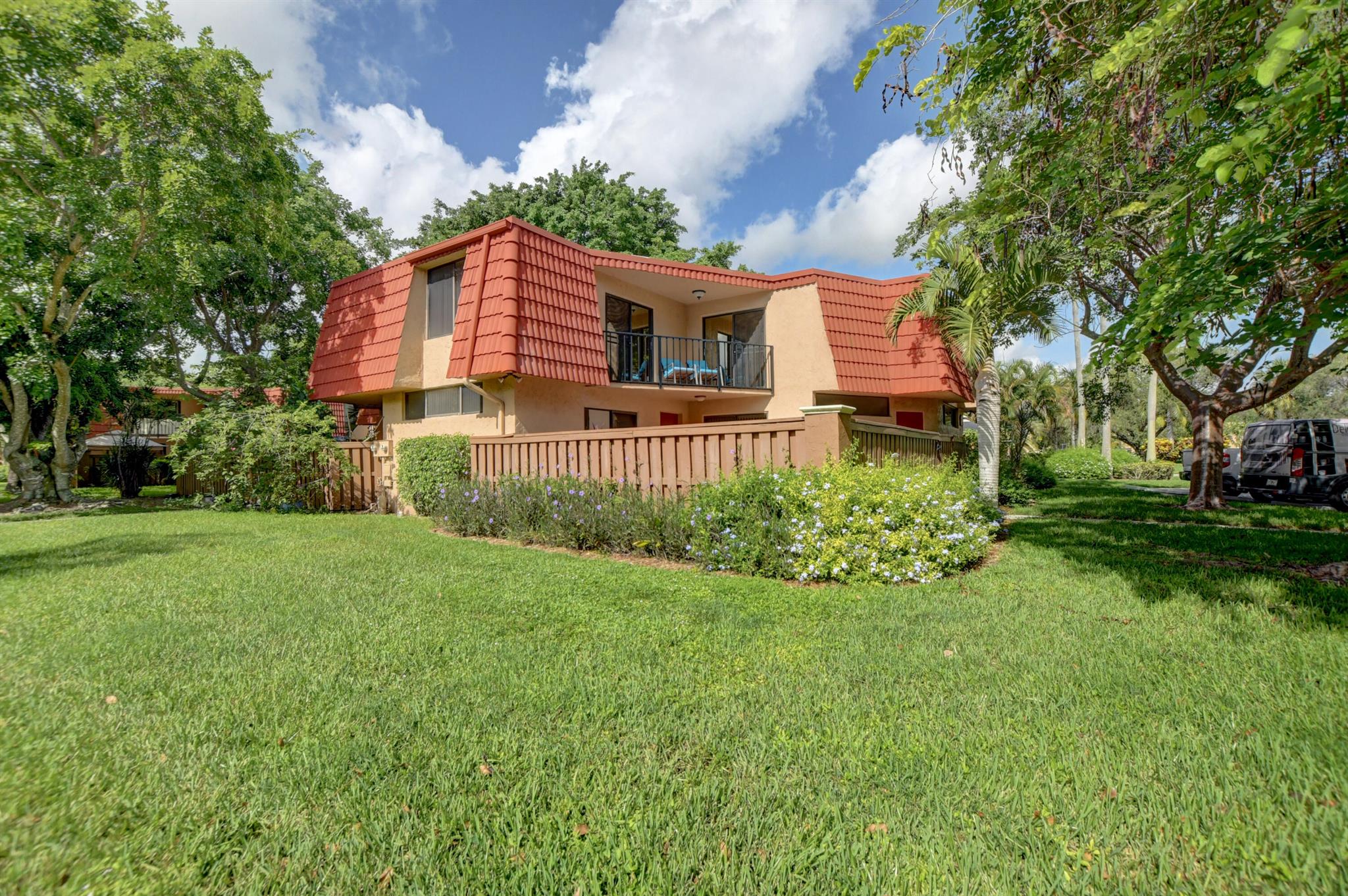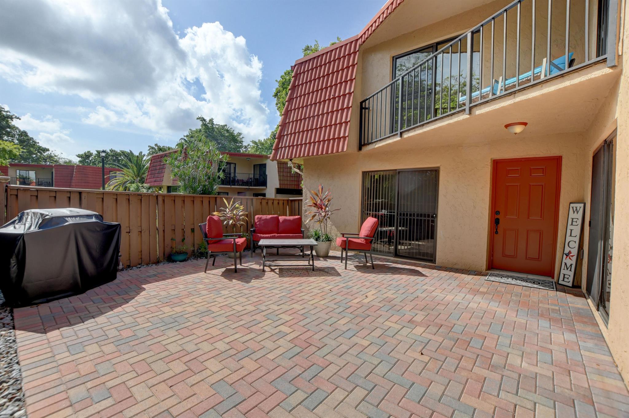 Beautifully Updated 2 bed/ 2.1 bath townhouse in Boca. Great neighborhood with top rated schools. New AC. Master bath remodeled with new pebble-tile, wall tile, floor tile, shower seat, new vanities with quartz counters and anti-fog LED mirrors. Kitchen with granite & newer SS appliances. Light & bright home with multiple picture windows. Sliding glass doors open up to the massive fenced-in patio. Patio has new pavers and is perfect for entertaining. Indoor updated laundry room/ half bath on 1st floor. Bedrooms on 2nd floor, each with own updated bathrooms & walk-in closets. Bedrooms share good-sized balcony overlooking patio. HOA maintains roof, common areas, clubhouse, pool etc.