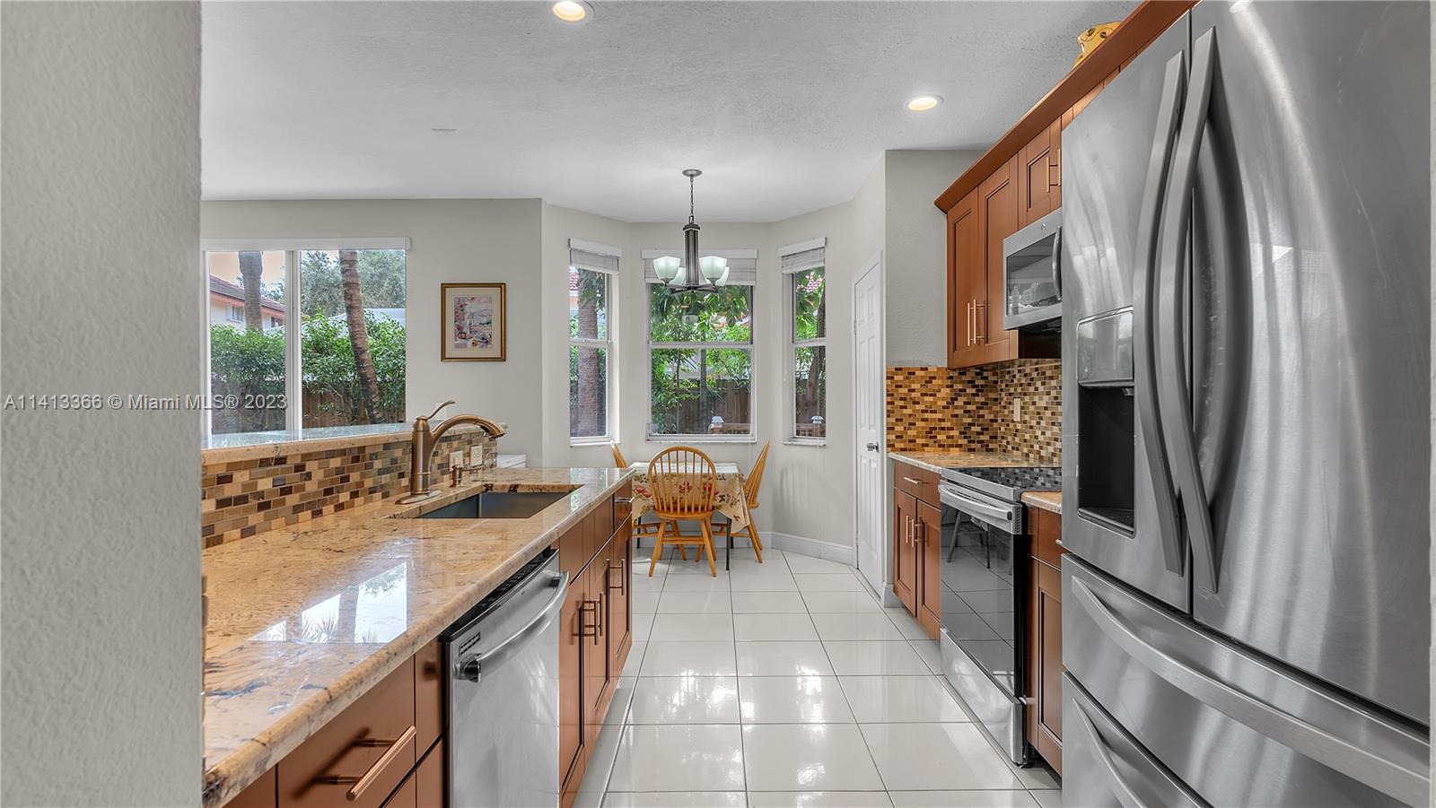 Beautiful 5BD/3BTH home located in Genesis at The Landings in Pembroke Pines. This hidden gem boasts of soaring high ceilings, tile and wood flooring, open kitchen and stainless steal appliances. Four bedrooms and 2 bathrooms are located on the second floor with a guest suite and full bathroom located on the primary level. The owner's suite is fully renovated with a large walk-in closet. Backyard with wooden deck for hosting gatherings. Full size washer and dryer located in the single-car garage. Conveniently located minutes away from I-75, Turnpike, CB Smith Park, and local shopping plazas. This is a perfect starter home for a growing family. A/C 2013/ Water Heater 2021 OWNER REQUIRES 1 HR NOTICE FOR SHOWINGS.