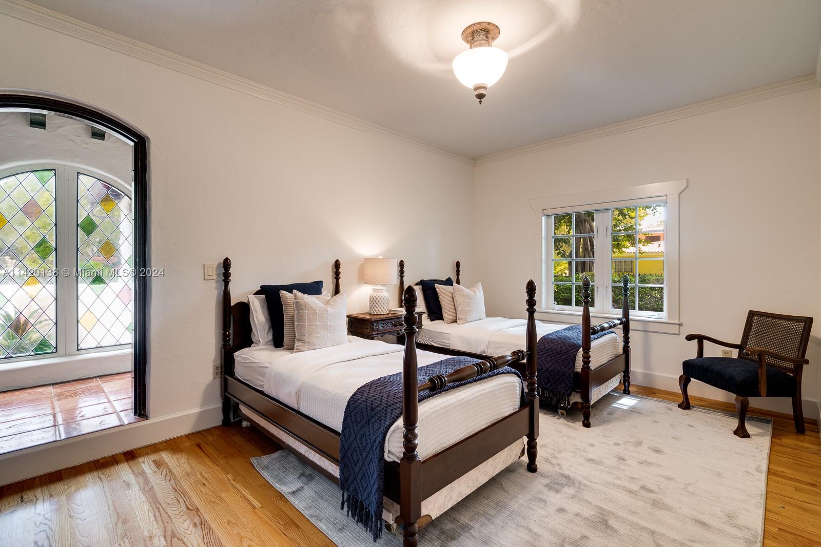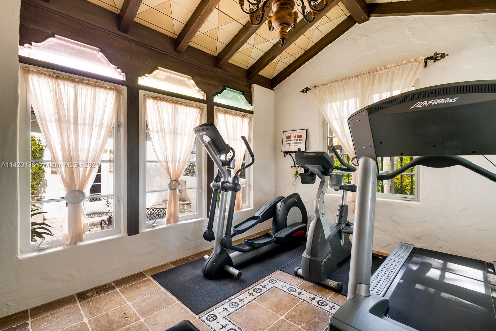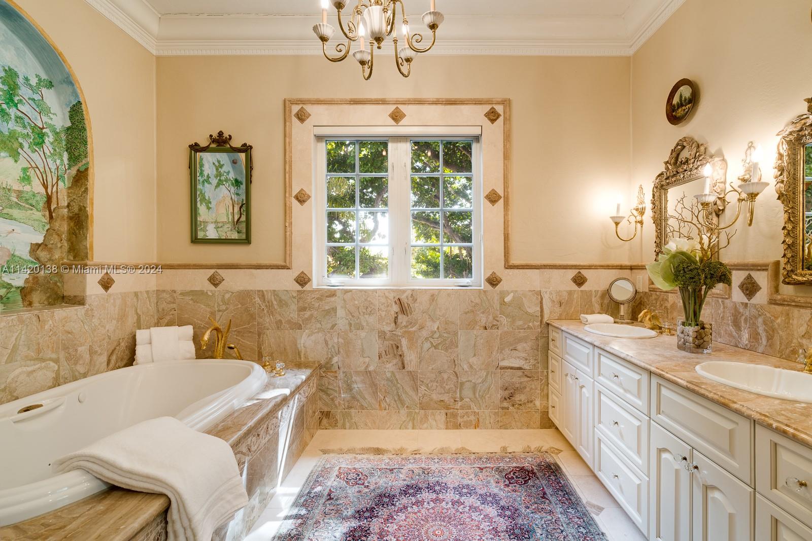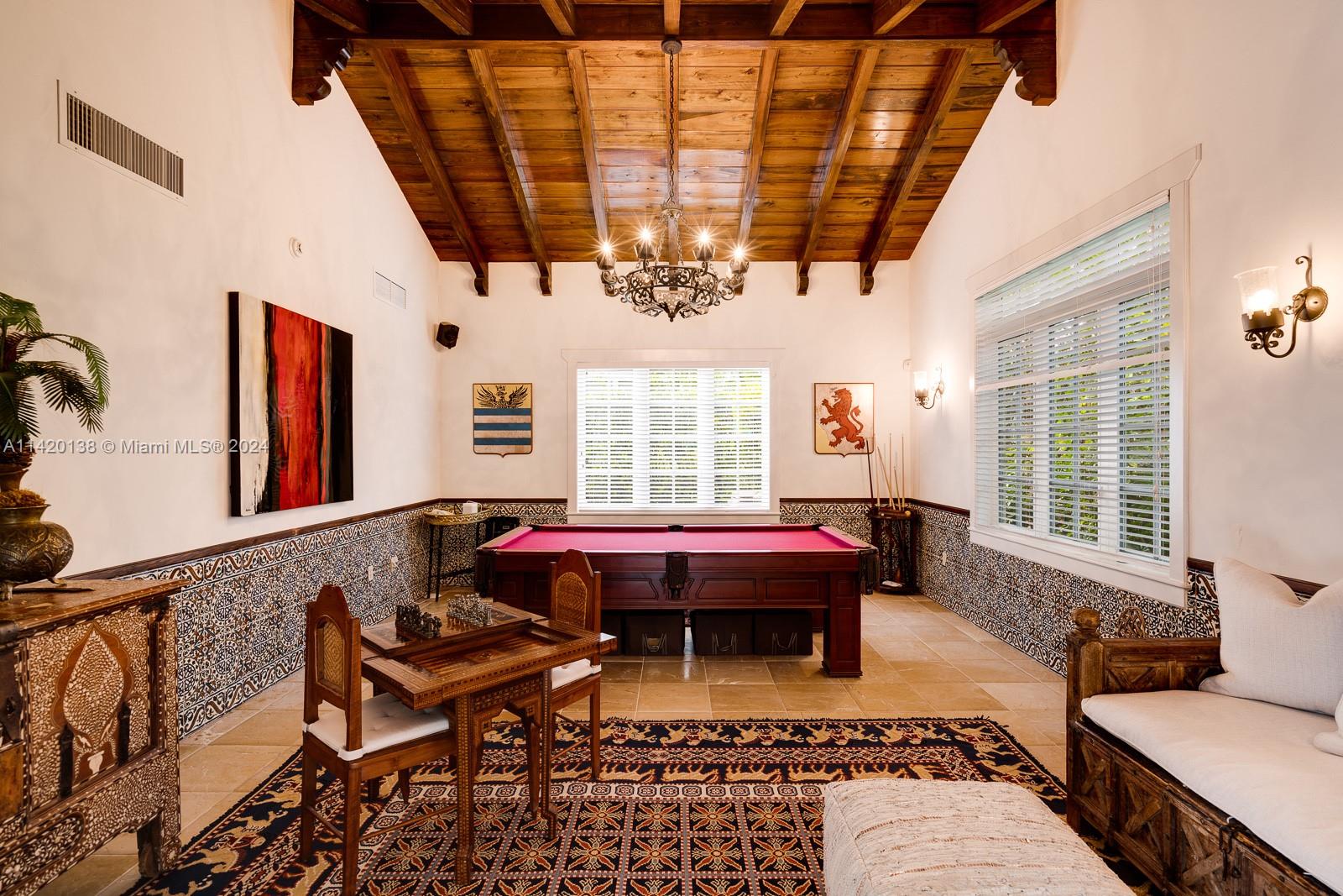 1920's Old Spanish style villa with 6397 actual square feet (5044 living area) on a 15,750 sq ft lot steps from the Biltmore Hotel & Golf Course, Salvadore Park and the Venetian Pool. Classical architecture with loggia, Palladian window frames, high timber-beamed ceiling in the main living room & sun-dappled courtyards with flowing fountains. There are 6 bedrooms and 6.5 bathrooms. The primary bedroom suite & 3 other bedrooms are upstairs. Guest bedroom and a maid's bedroom on the 1st floor. Summer kitchen, large library & office by the heated pool. The home is walled and gated and within walking distance to many Coral Gables landmark destinations and to Downtown Coral Gables. 2-car garage, impact doors & windows. Also available for annual lease at $29,000 a month or $39,000 furnished
